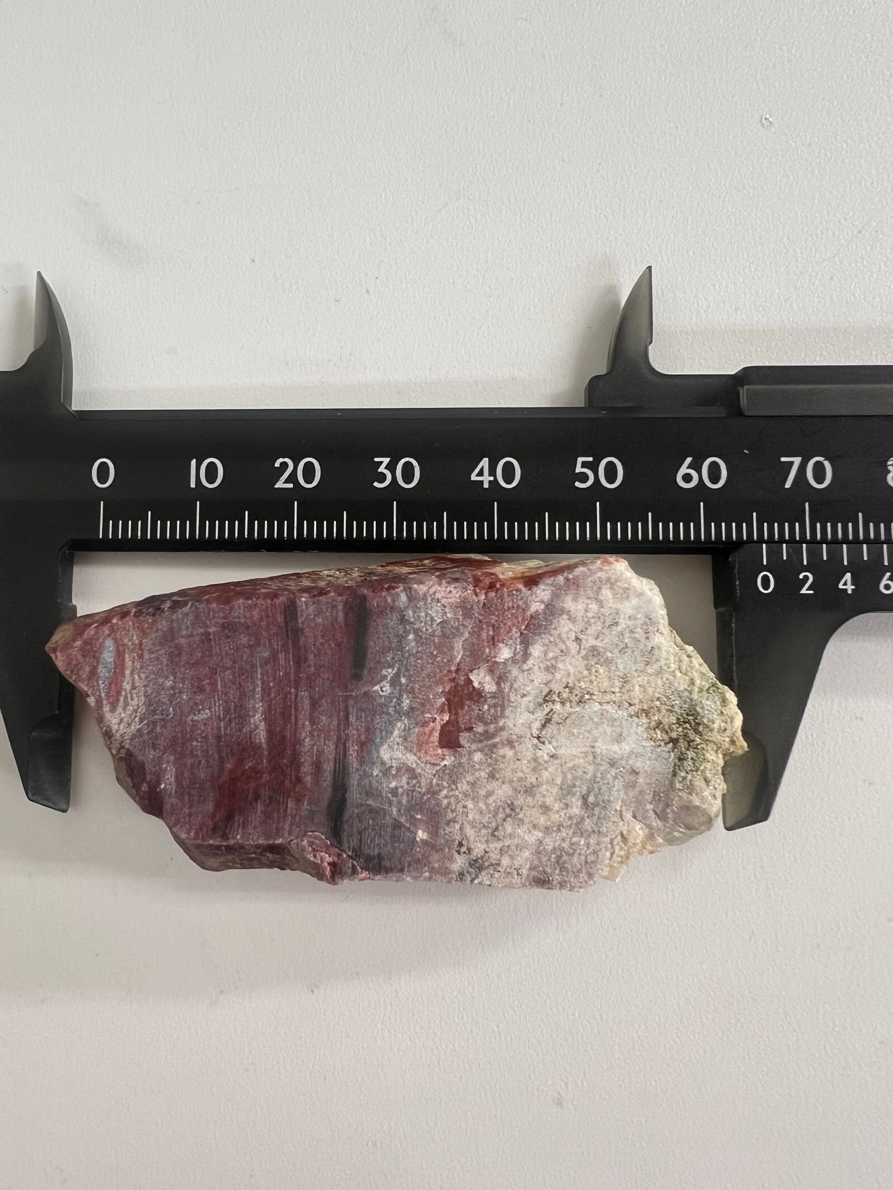 レッドジャスパー、カルセドニー、方解石などからなる岩石。