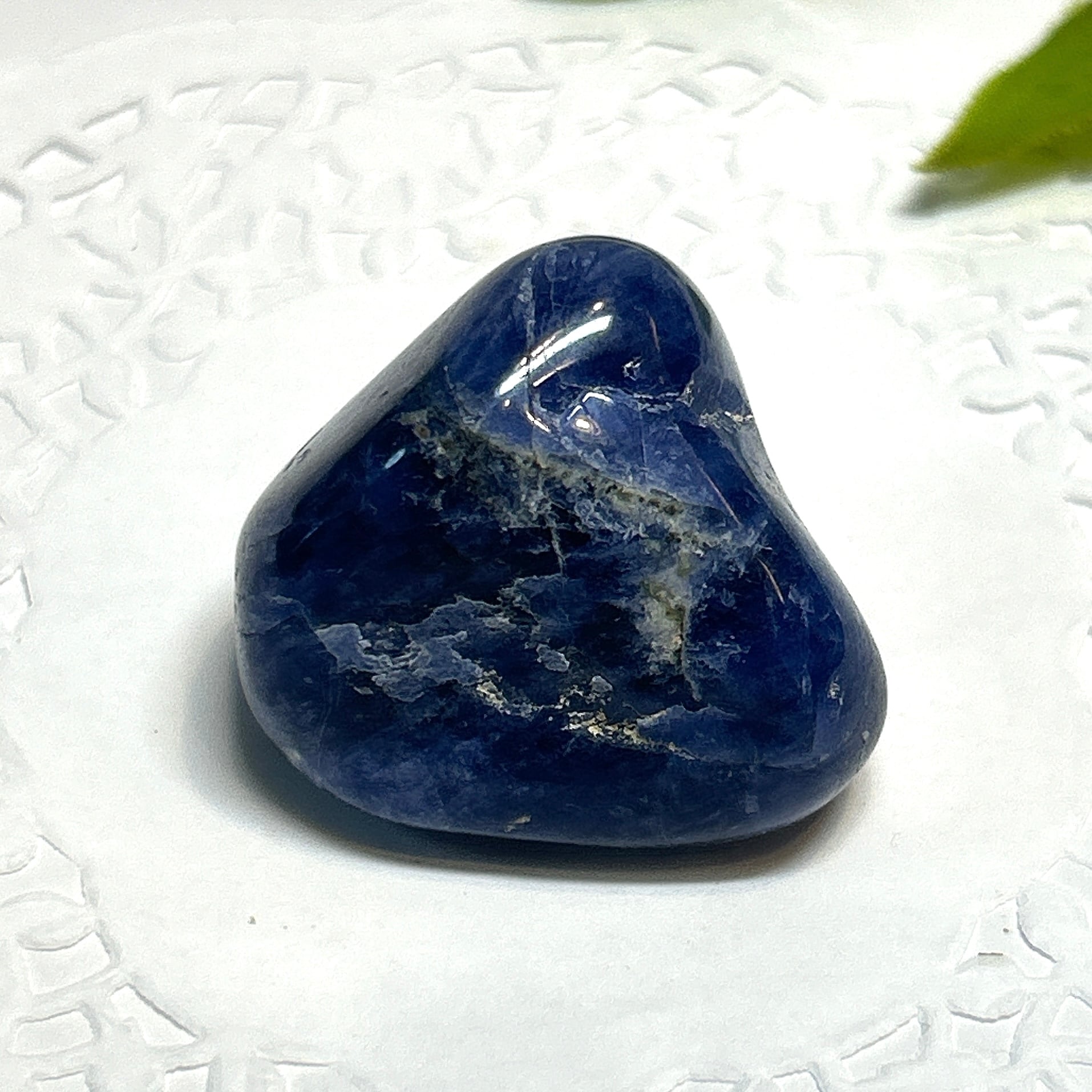 青地に白い条痕の爽やかな石、ソーダライト。
