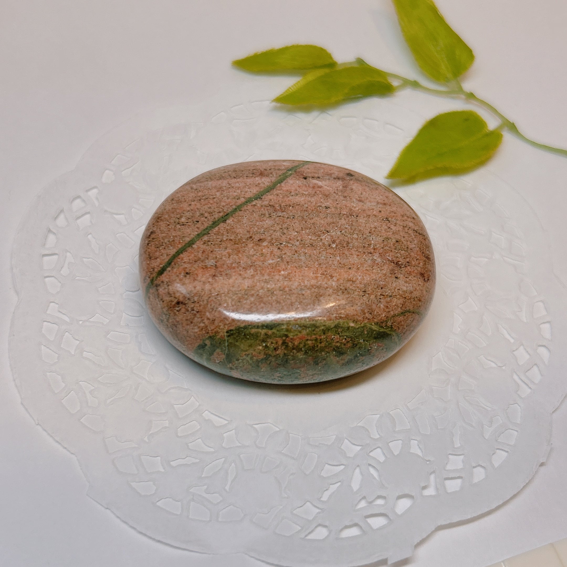 その色彩は非常に個性豊かで、モスグリーンを基調とした落ち着いた印象のものから、ピンクが際立つ華やかなものまで、石ごとに異なる表情を見せてくれます。ひとつとして同じ模様はなく、それぞれが唯一無二の魅力を持っています。