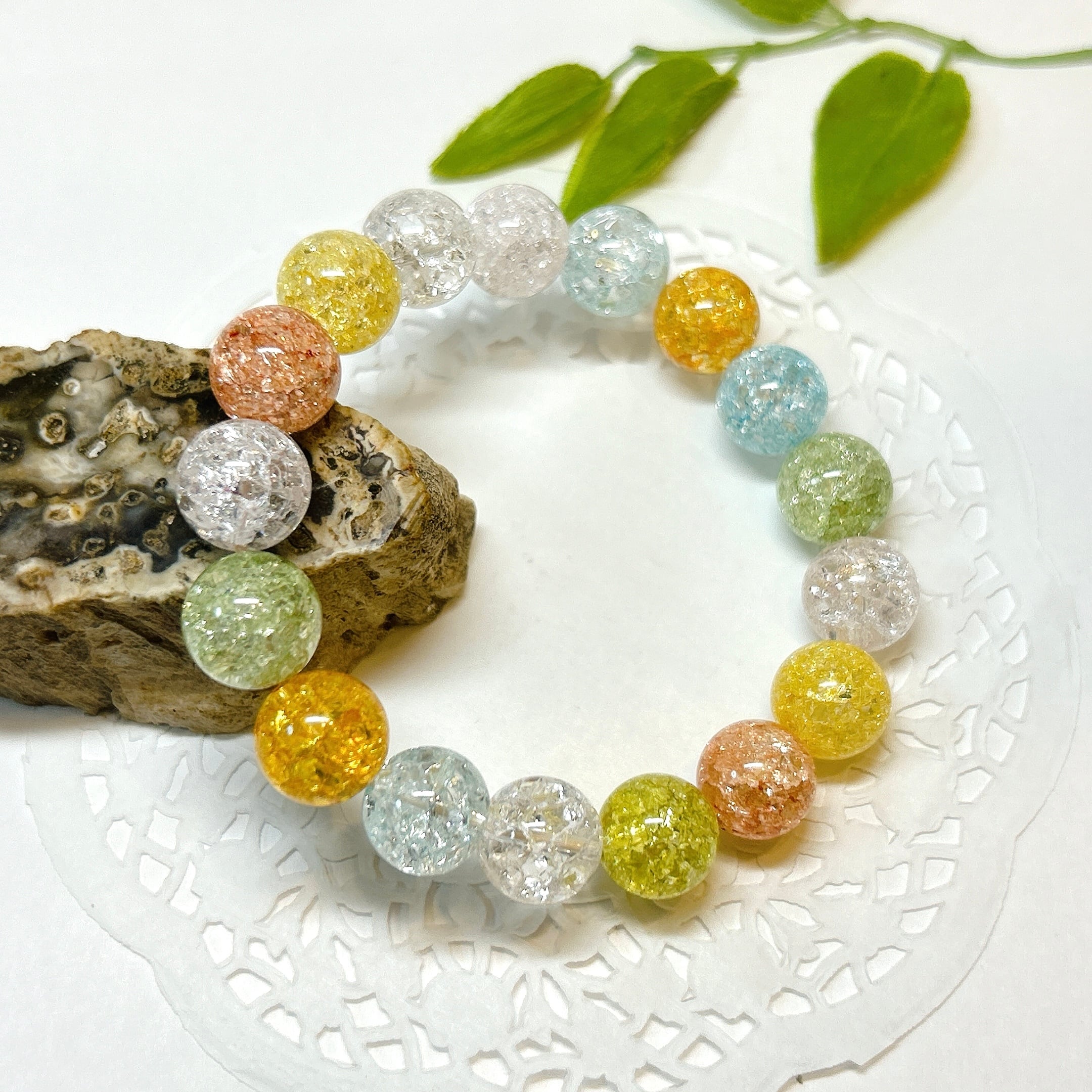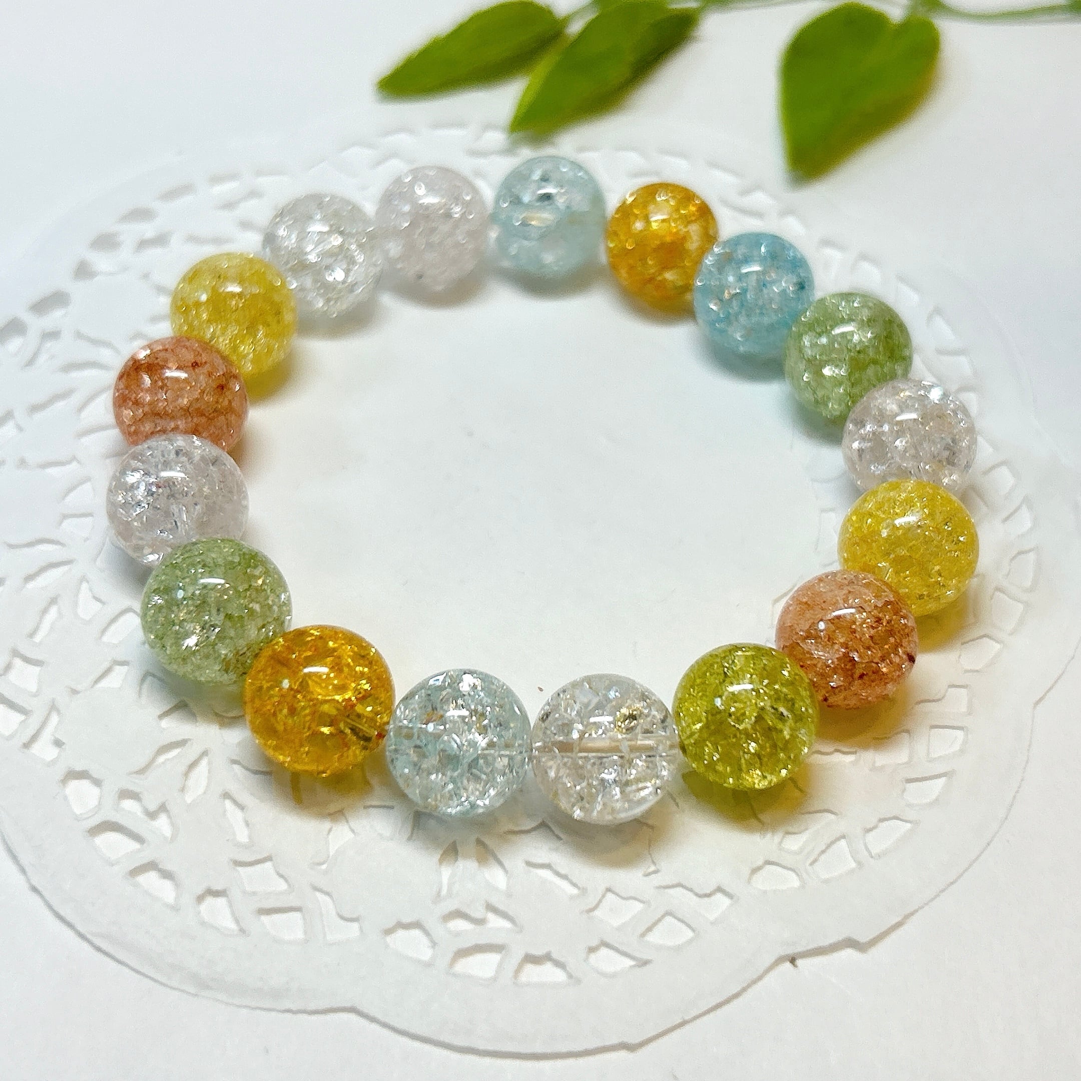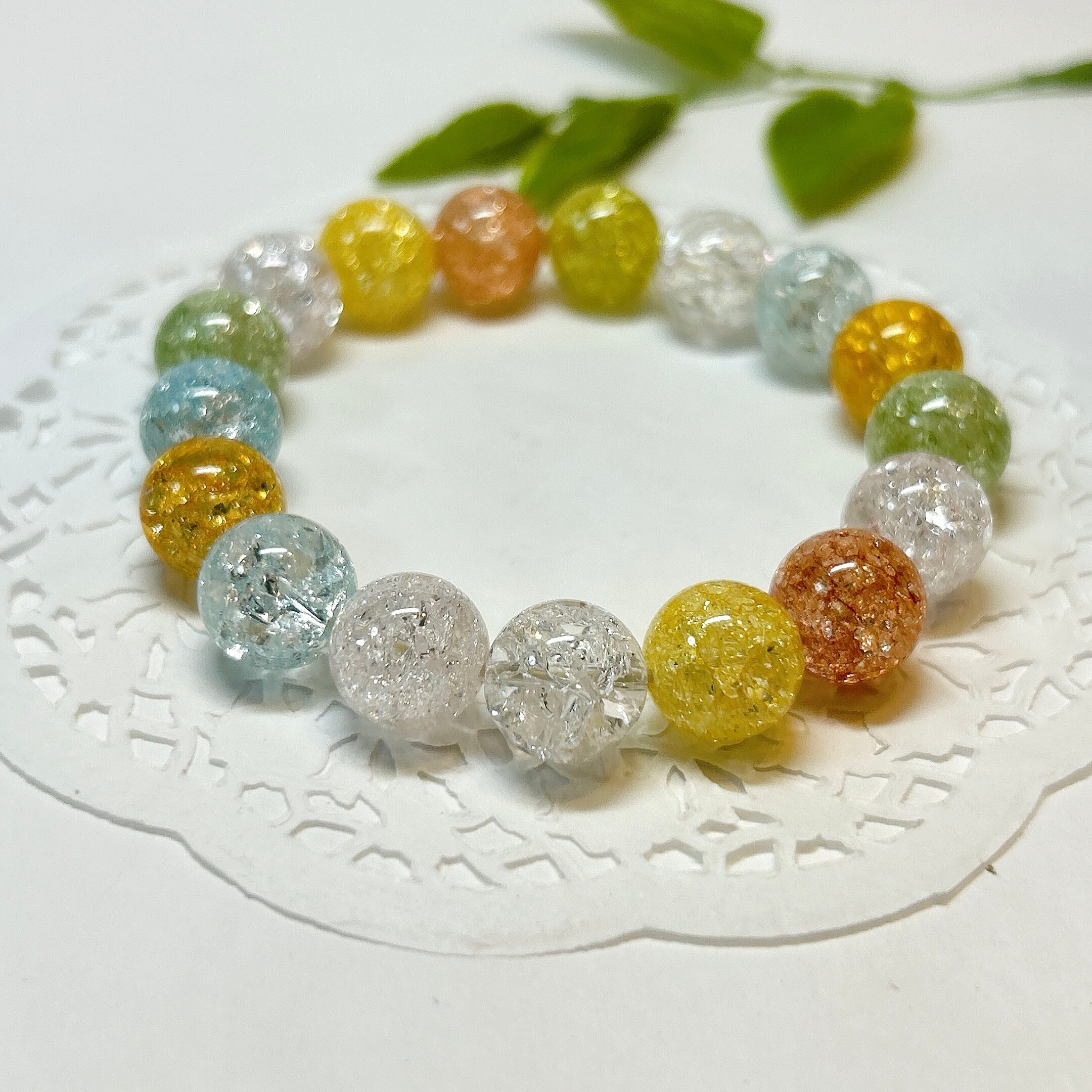 【E18746】12㎜ クラッククォーツ ミックスカラー ブレスレット キャンディーブレスレット クラッシュ 着色