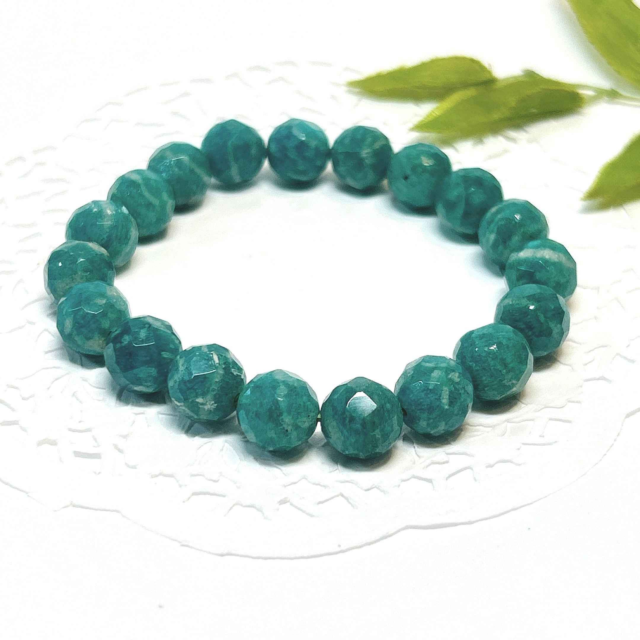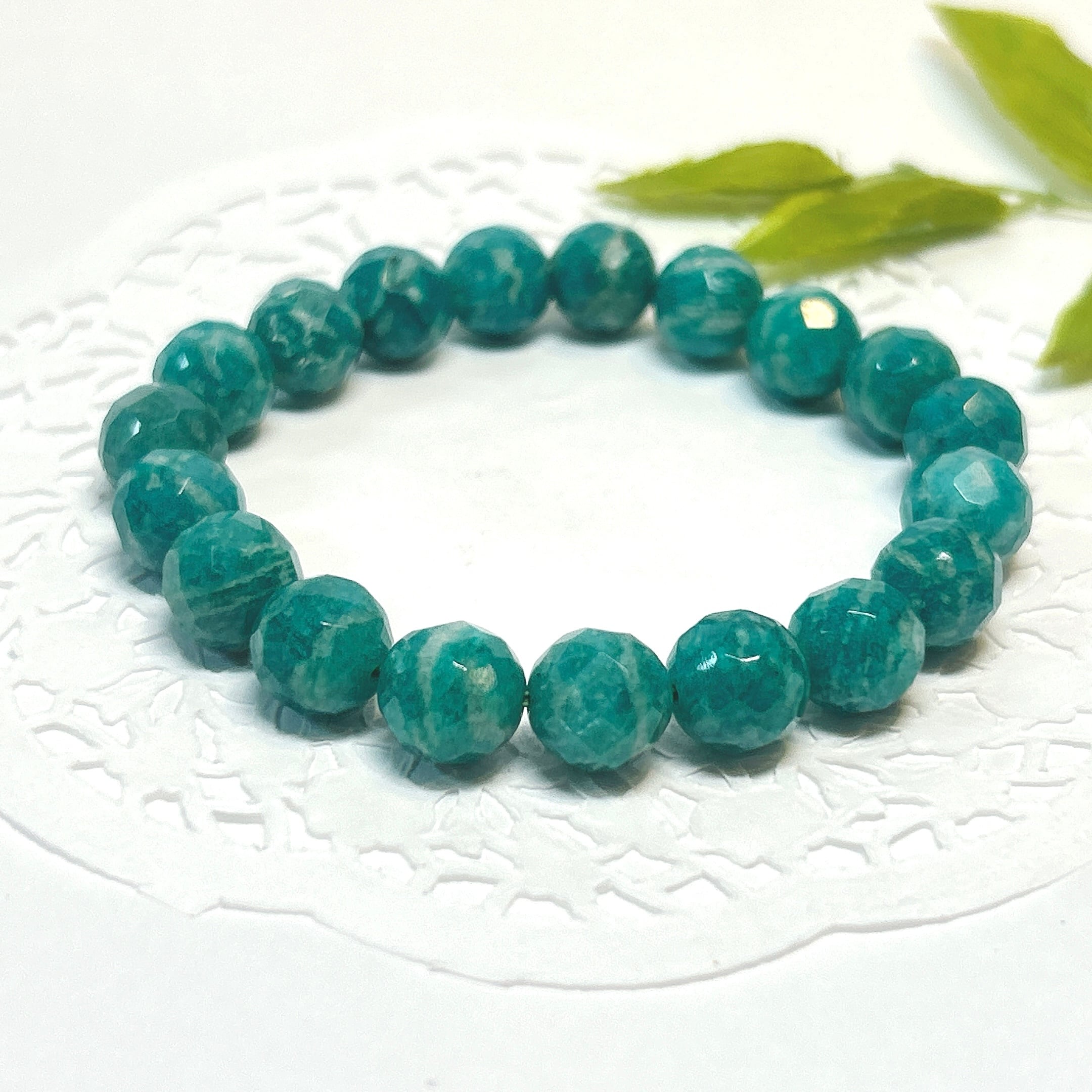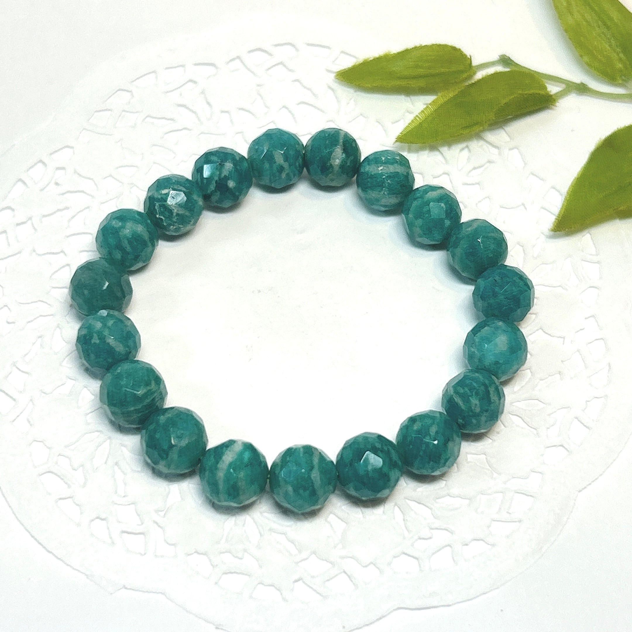 【18764】ロシアアマゾナイト カット10㎜ ブレスレット パワーストーン*クリスタルワールド 天然石 天然石アクセサリー*Amazonite