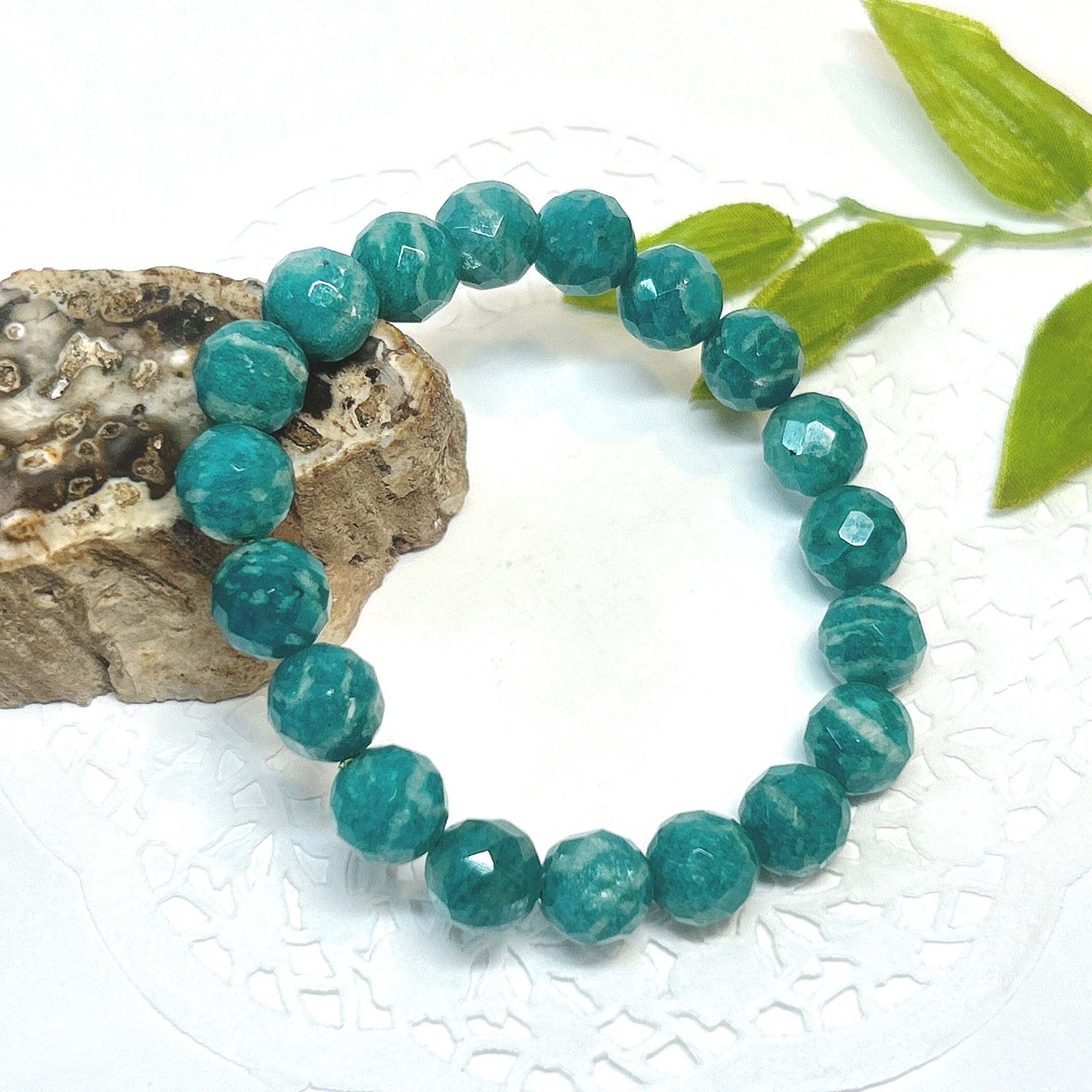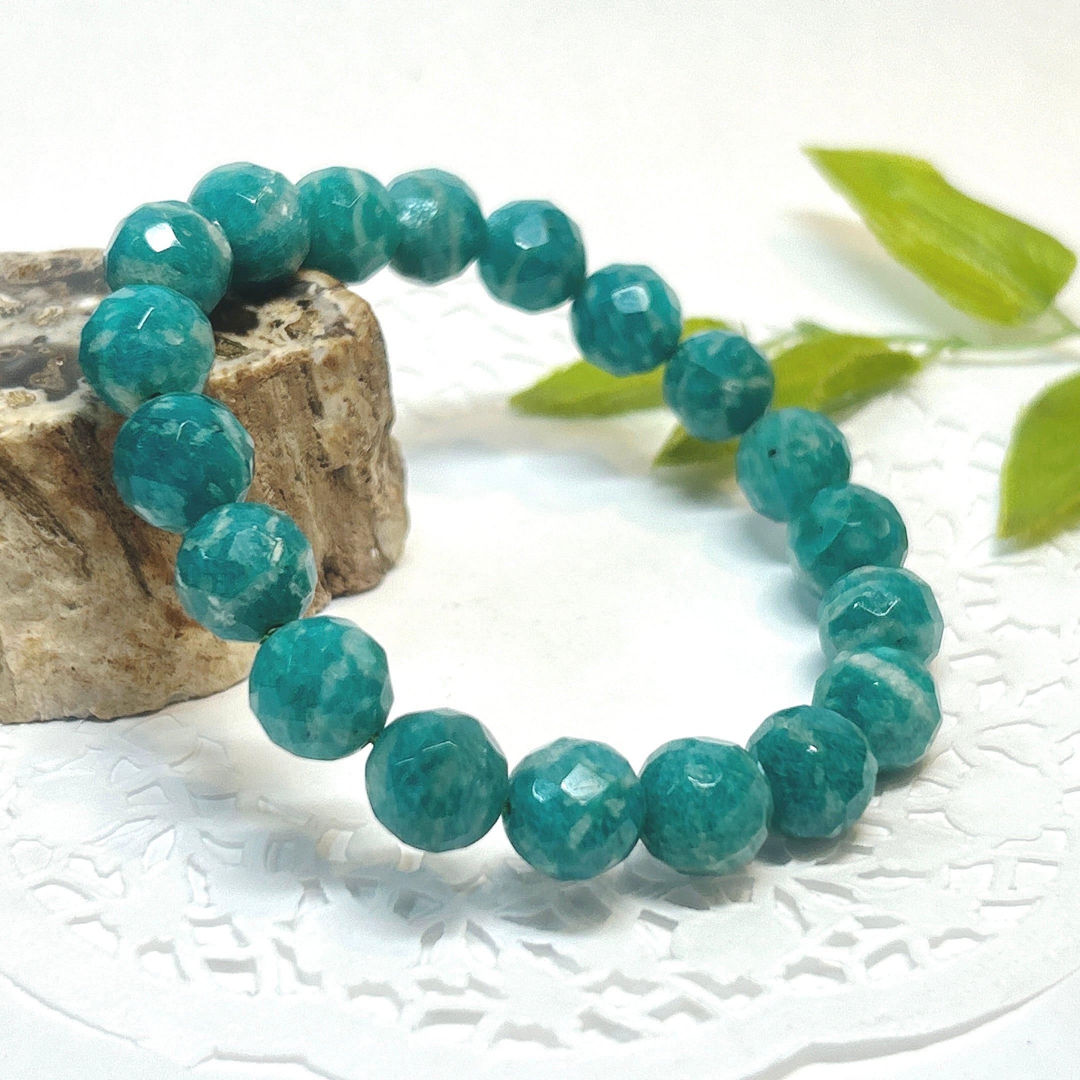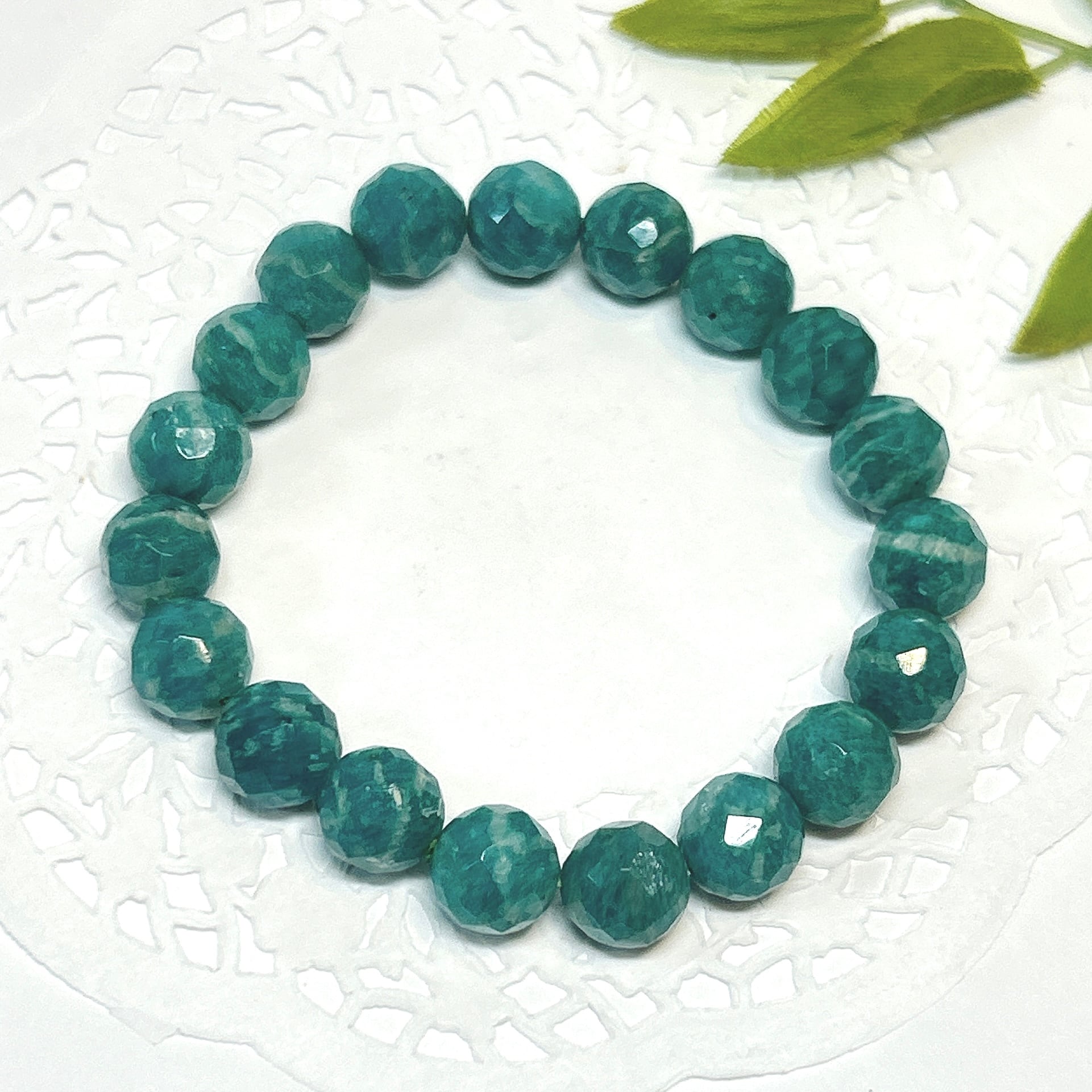 【18764】ロシアアマゾナイト カット10㎜ ブレスレット パワーストーン*クリスタルワールド 天然石 天然石アクセサリー*Amazonite