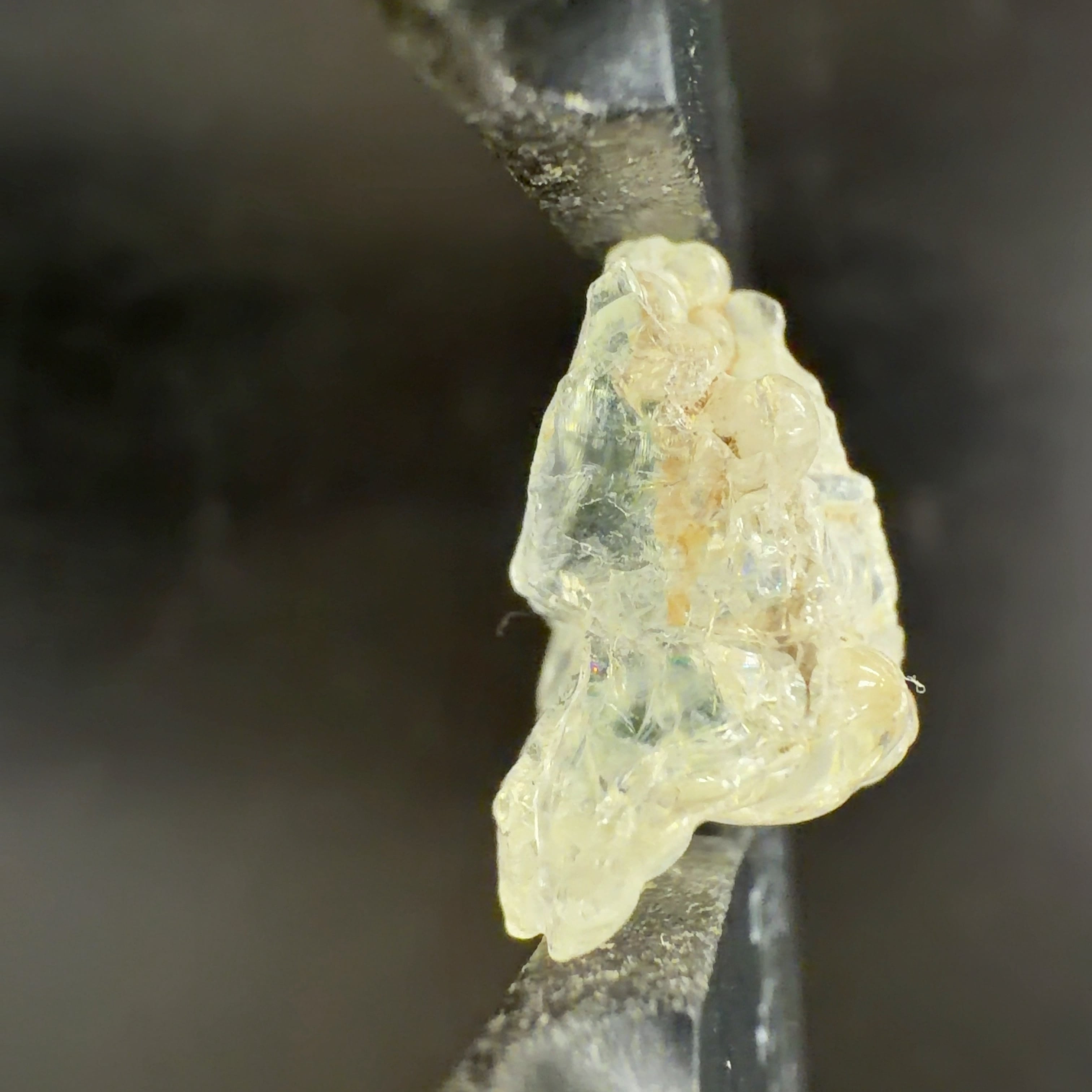 正式にはオパール(蛋白石たんぱくせき)の変種。地下水に溶けている二酸化珪素が常温で水滴の様に