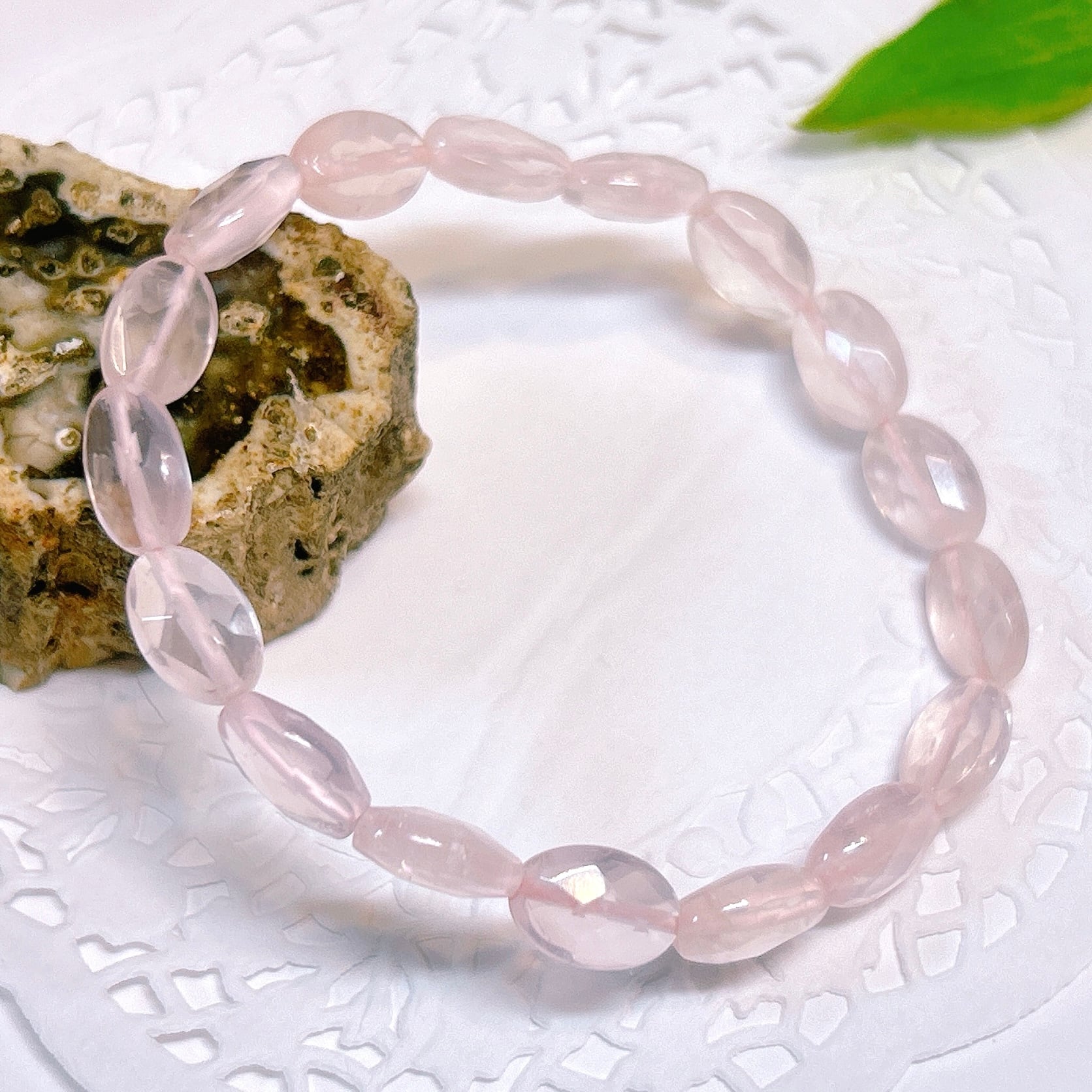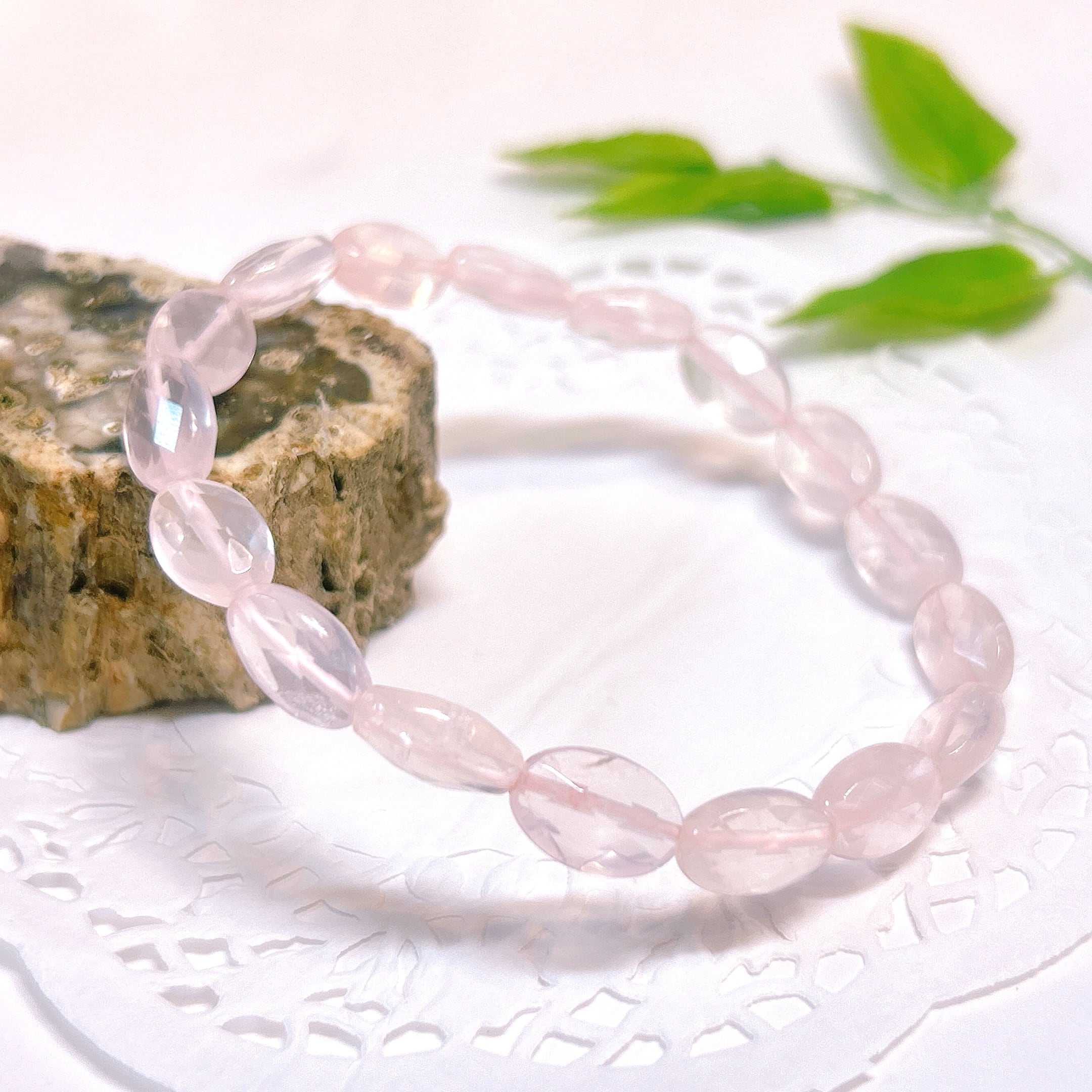 【18812】ローズクォーツ 平オーバル ブレスレット 紅水晶 アクセサリー