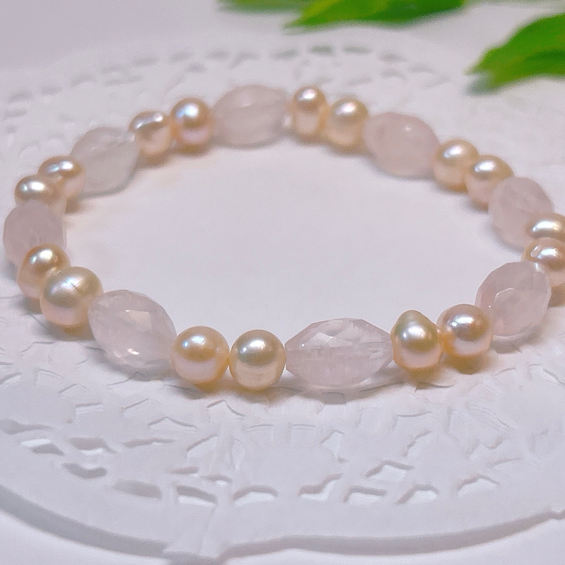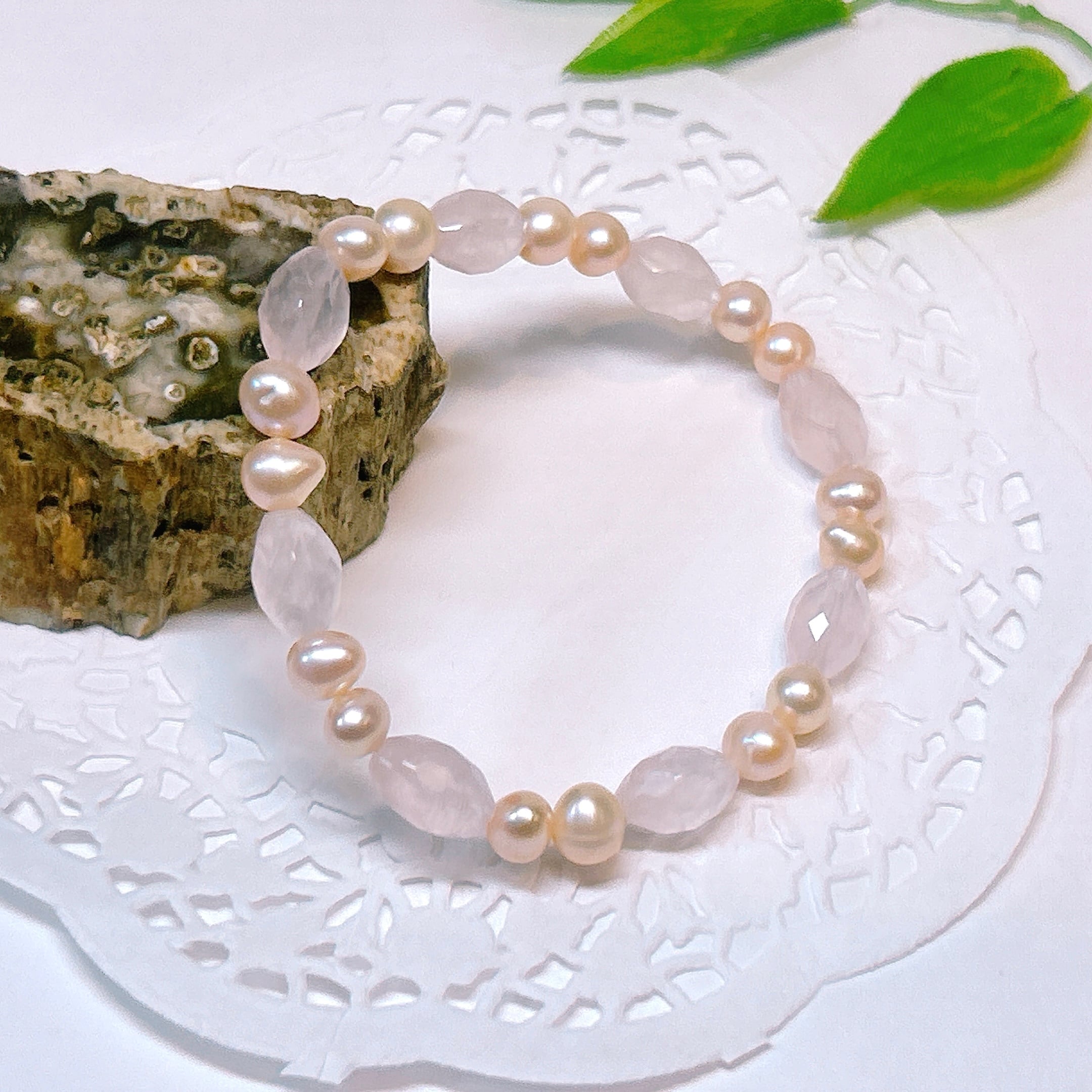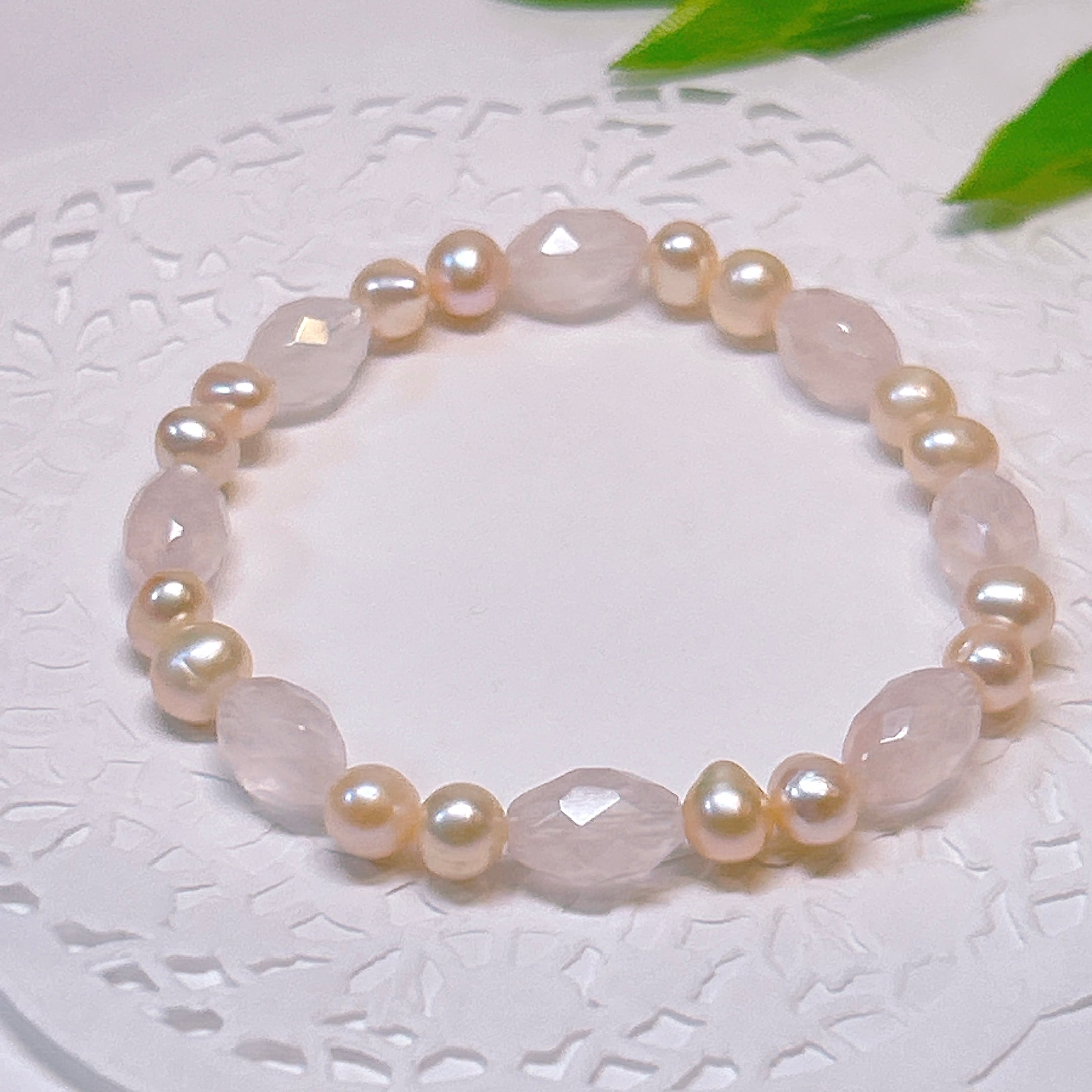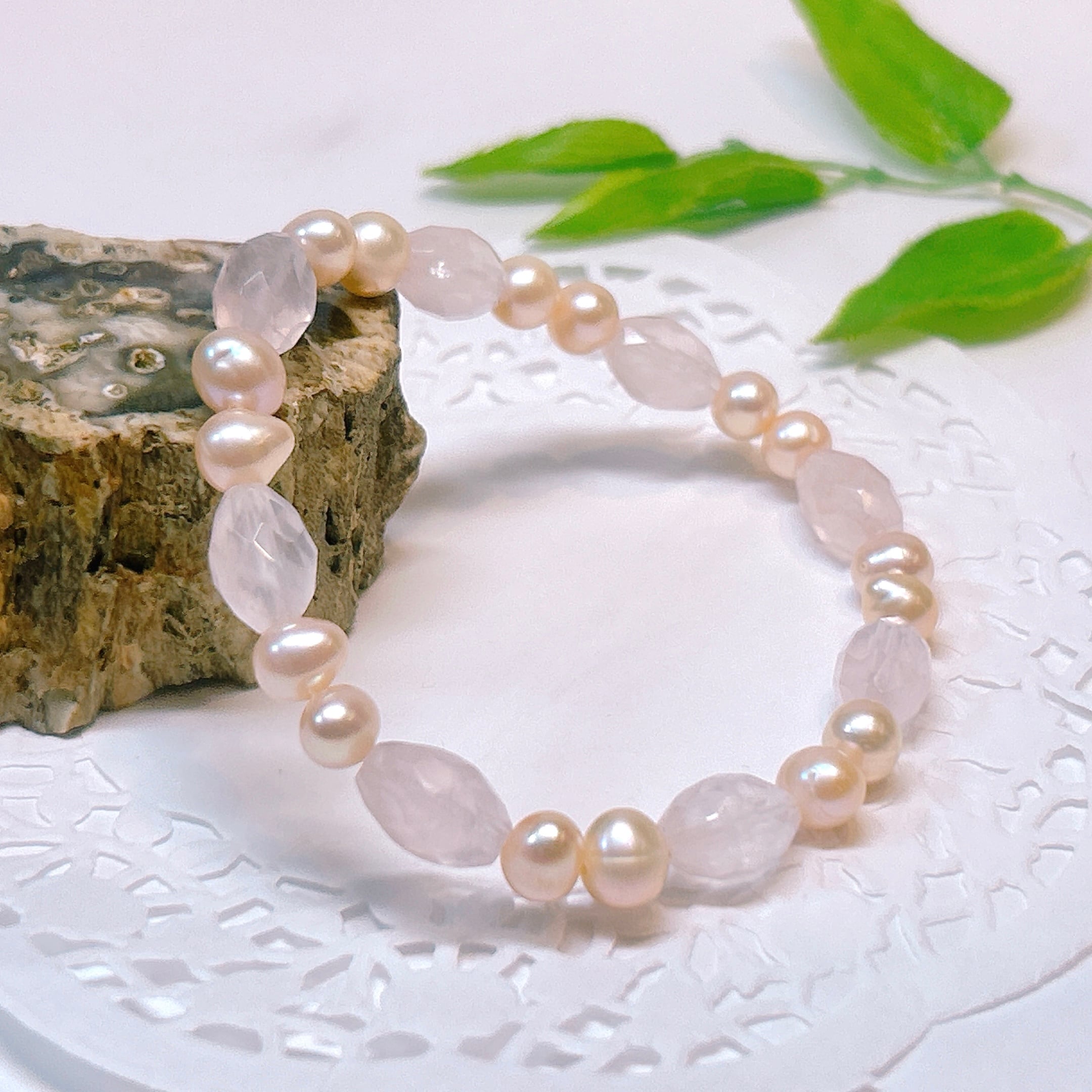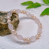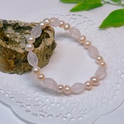 【18826】ローズクォーツ ライスカット 淡水パール ブレスレット 天然石 アクセサリー