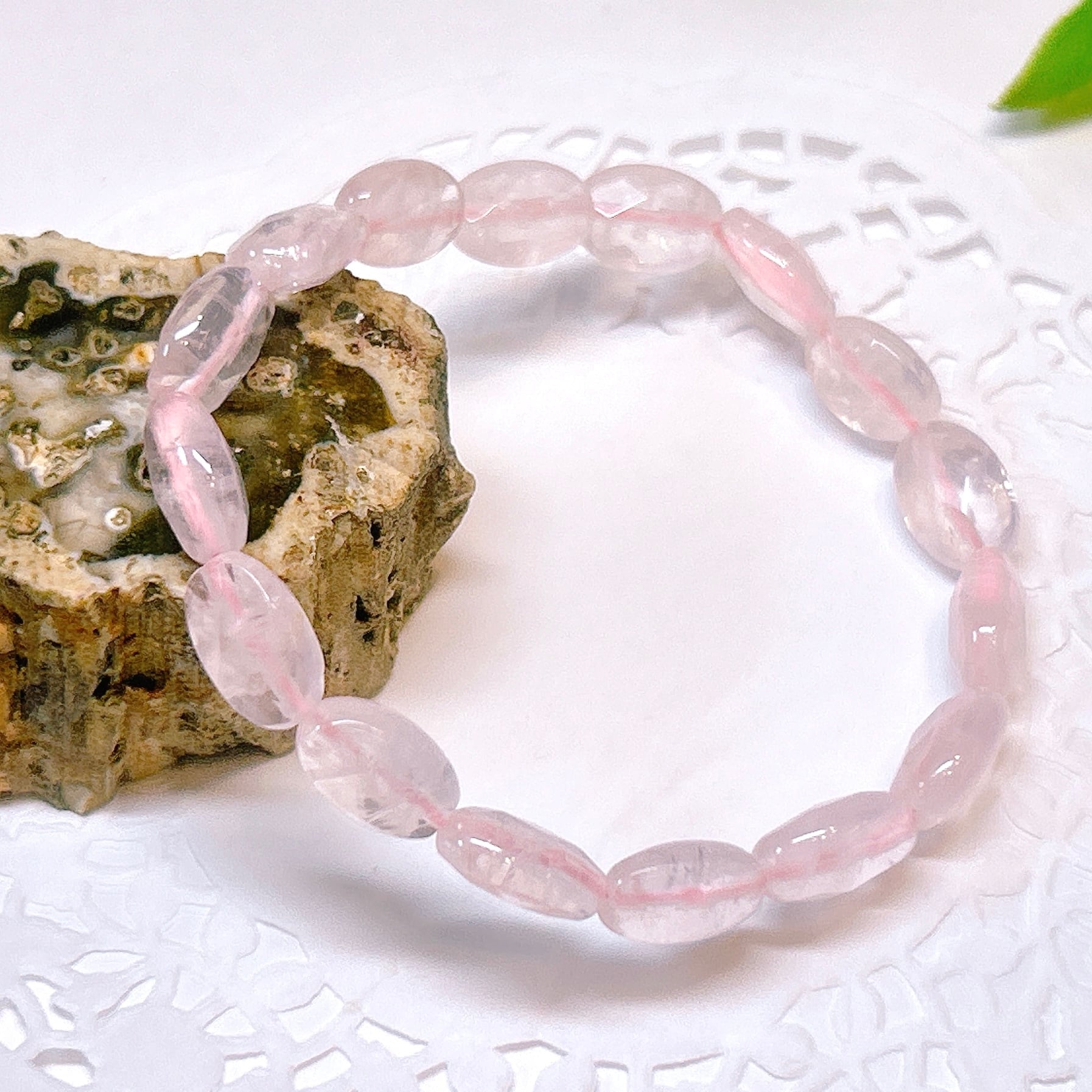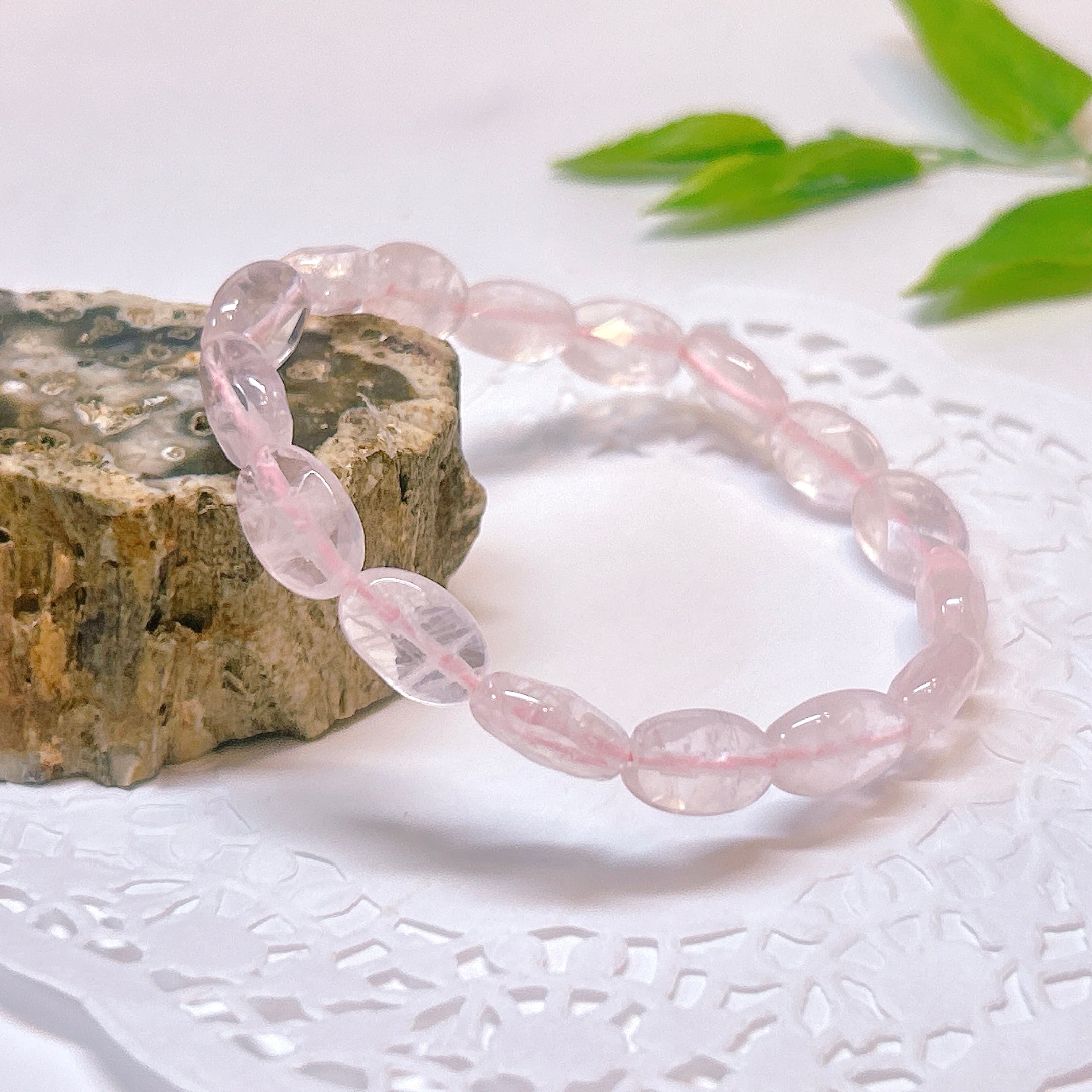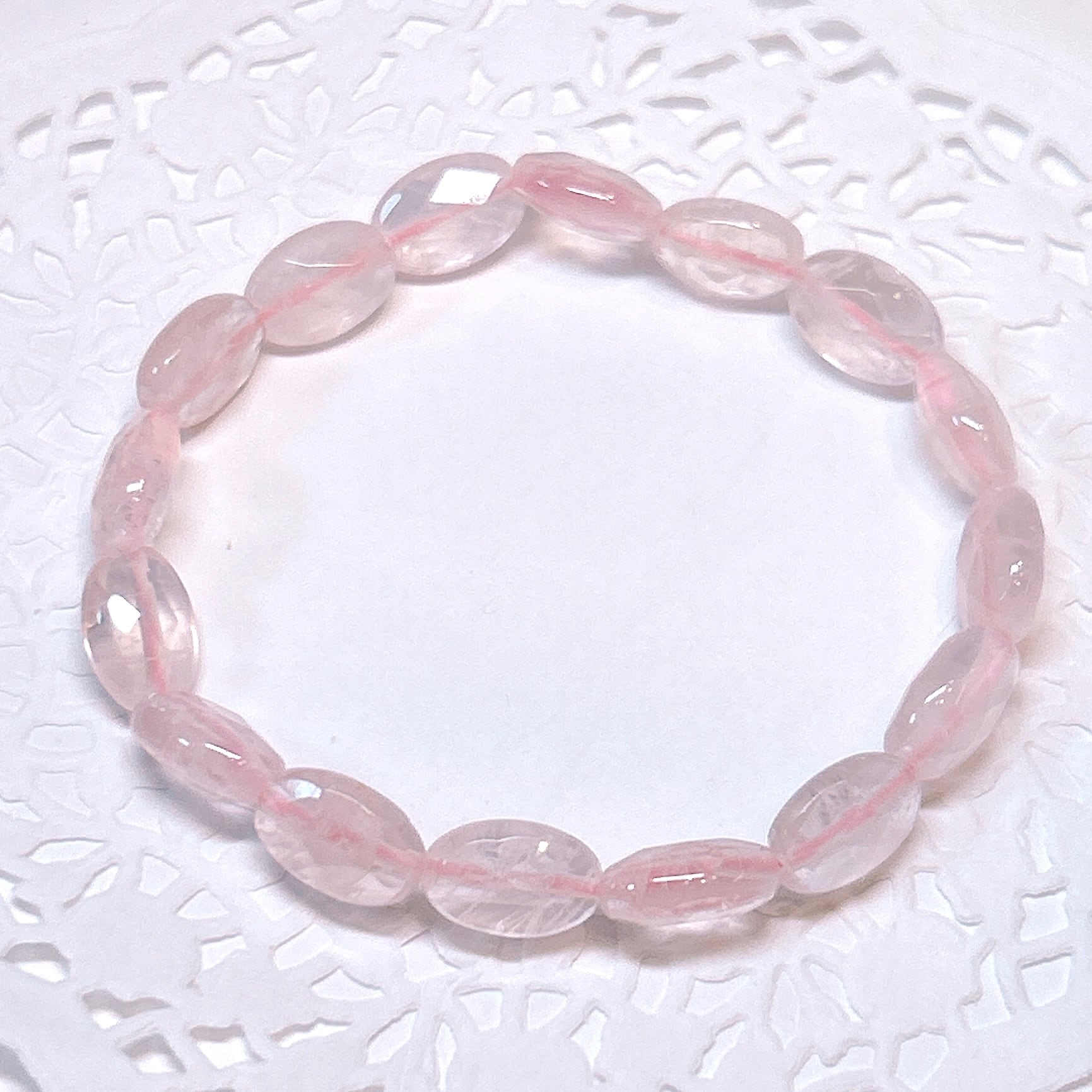 【18828】ローズクォーツ 平オーバル ブレスレット 紅水晶 アクセサリー