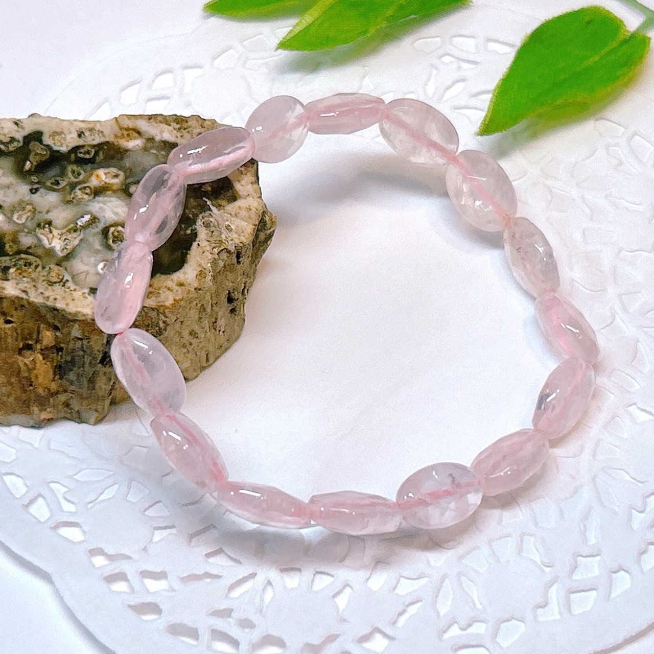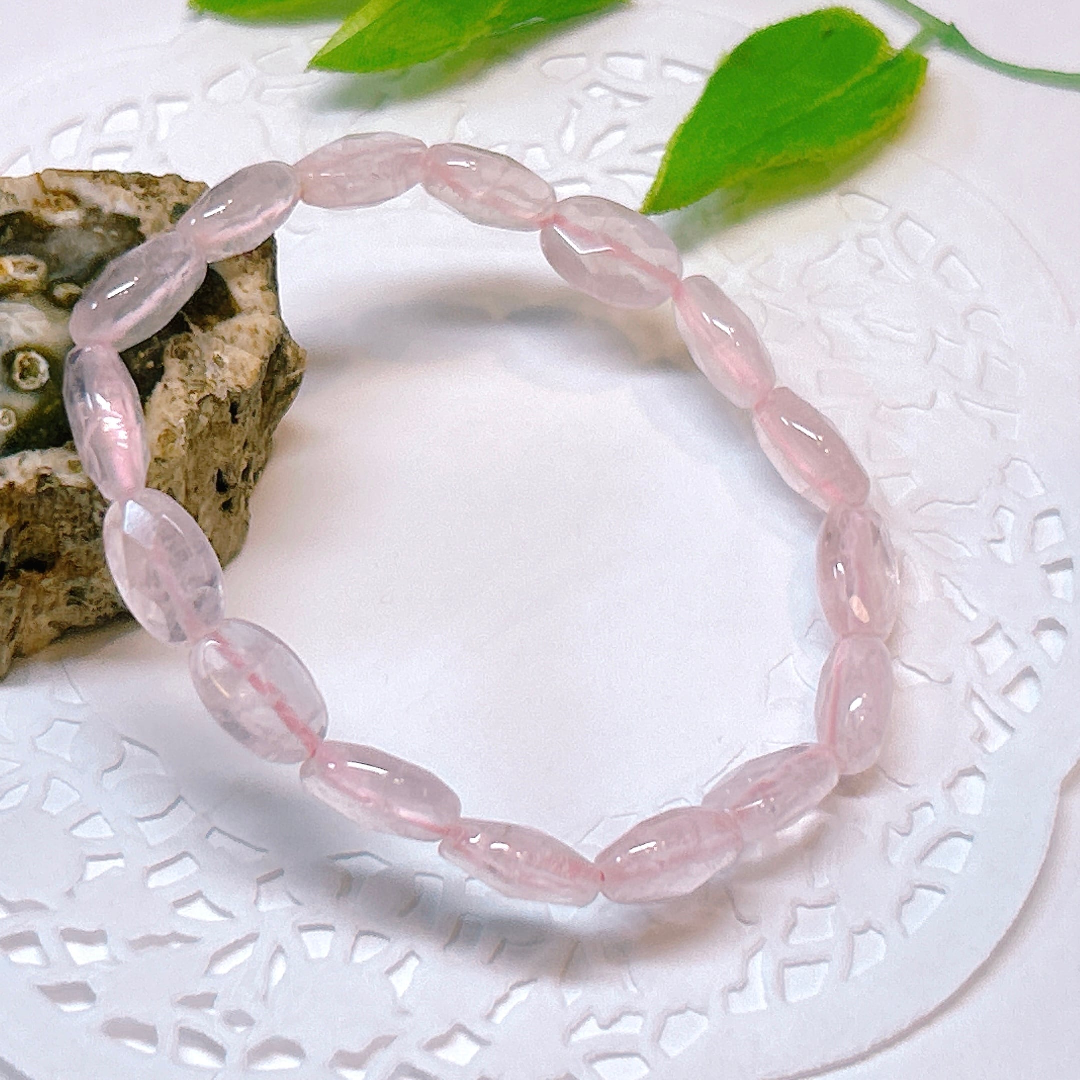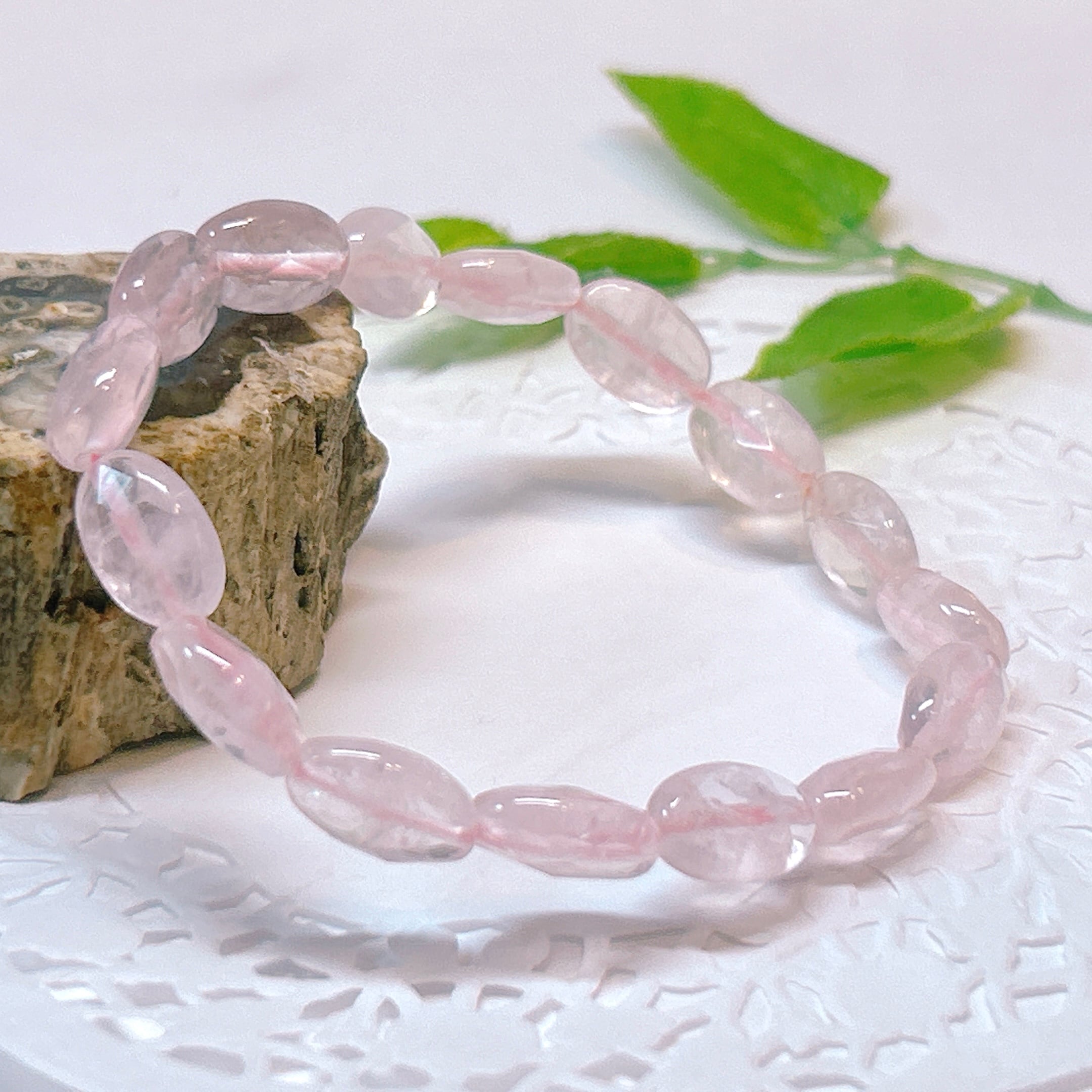 【18829】ローズクォーツ 平オーバル ブレスレット 紅水晶 アクセサリー