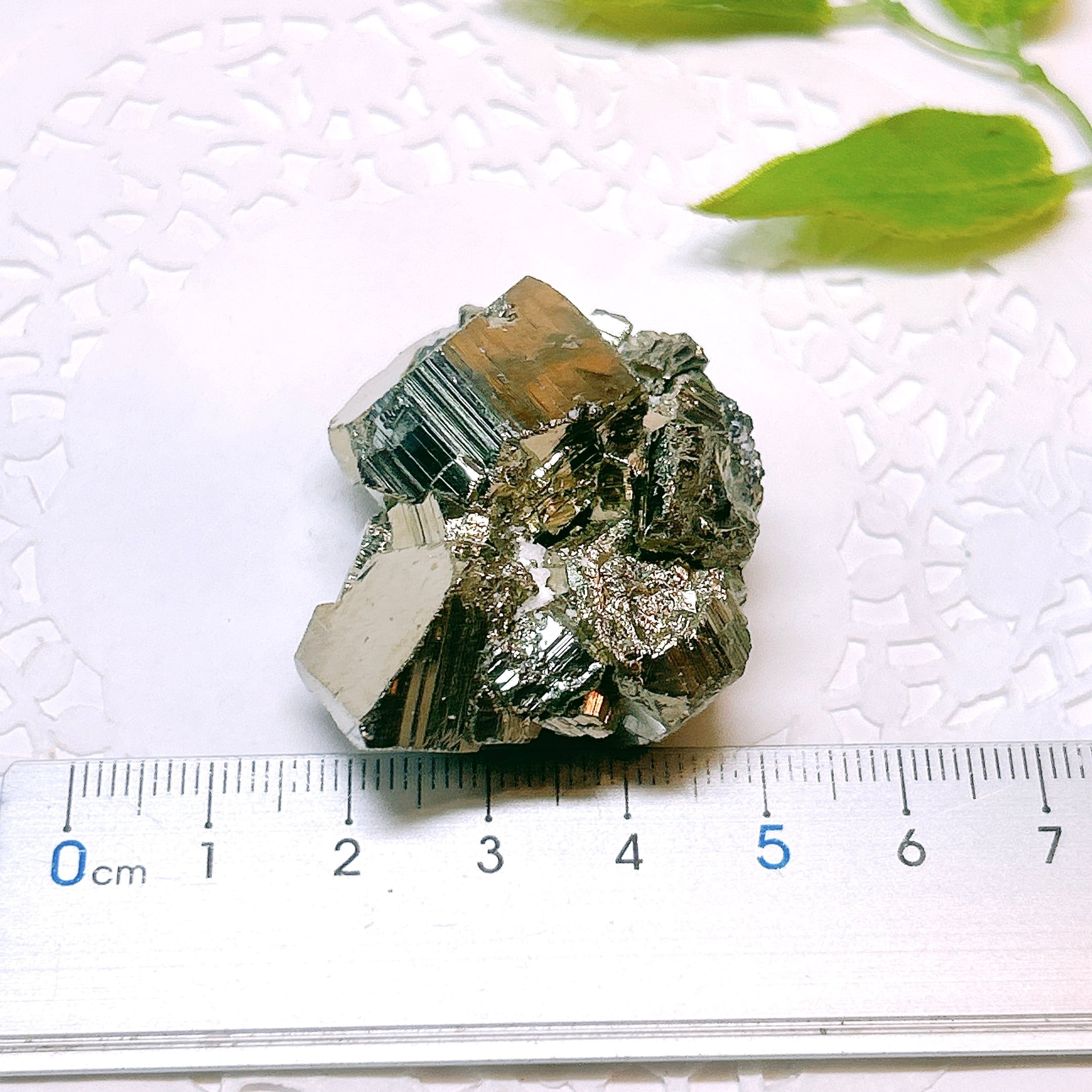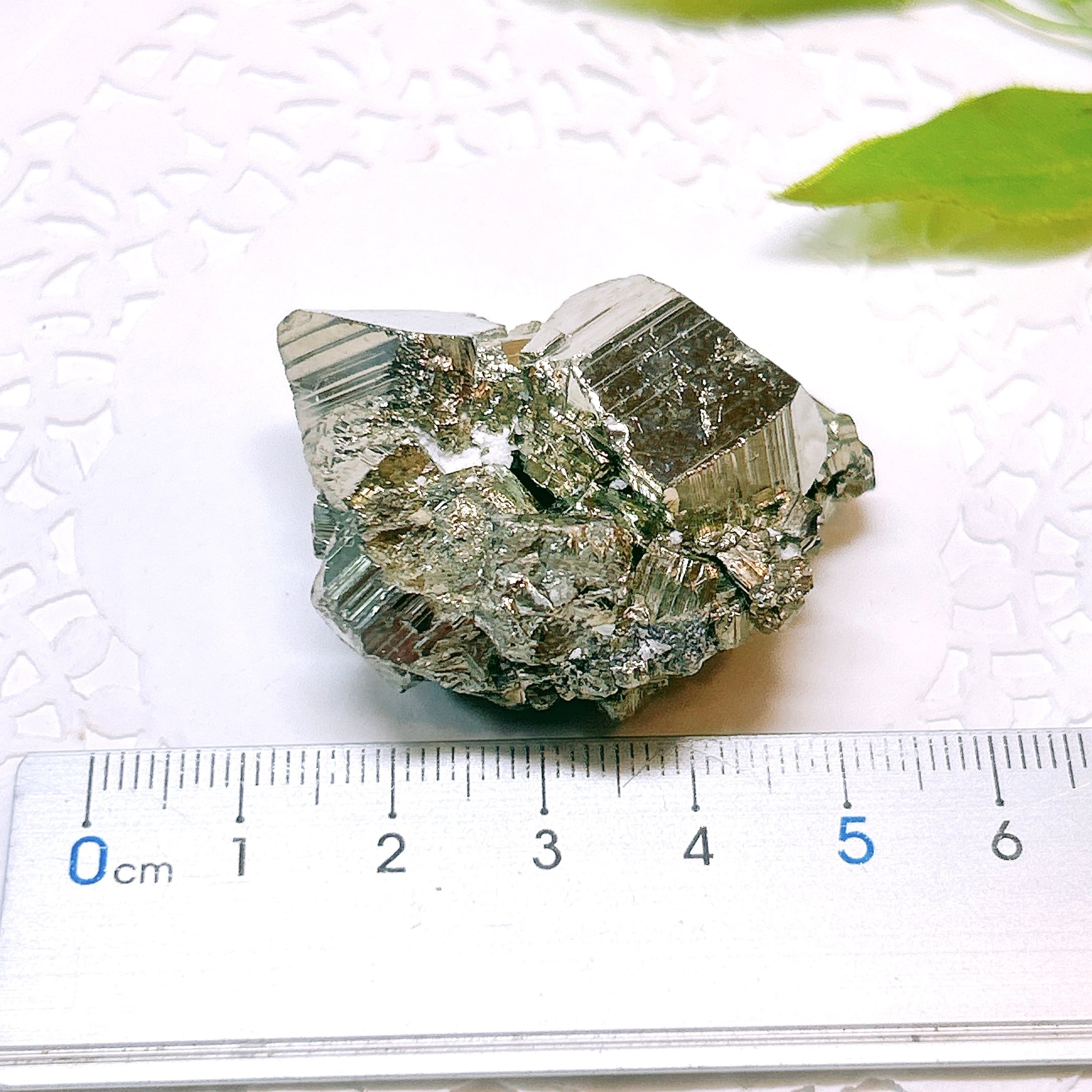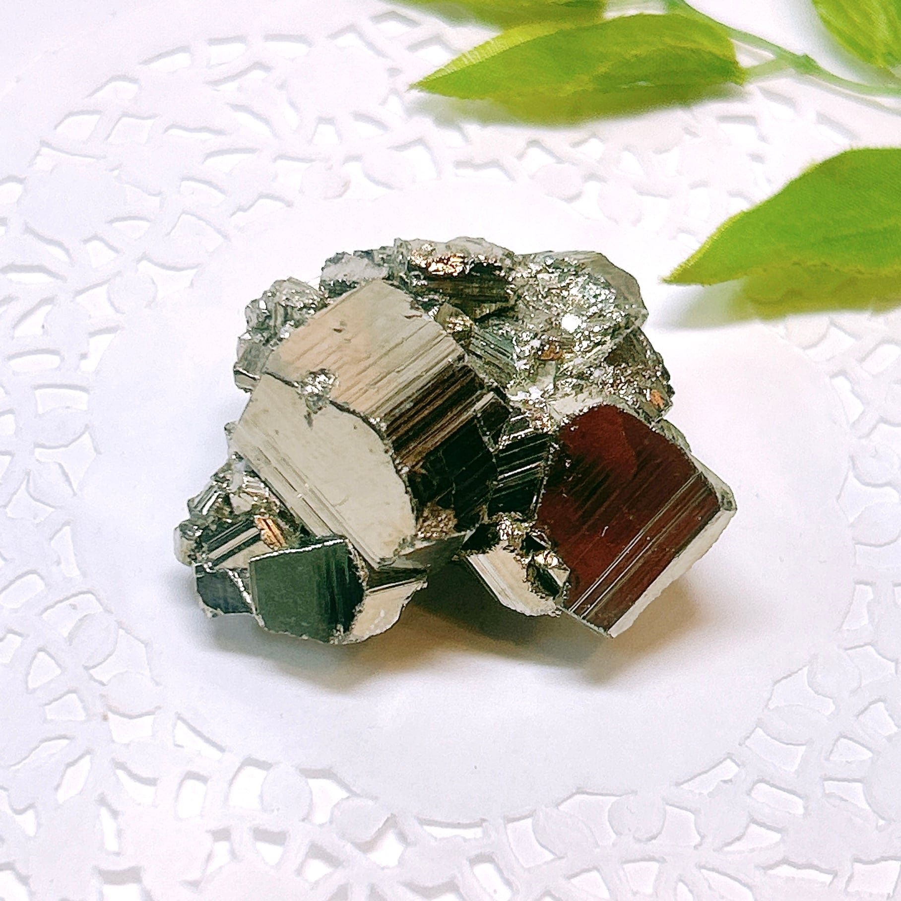 硫黄と鉄の化合物。黄金色の美しい光沢および、立方体、五画十二面体、八面体、二十四面体、又はそれらが合わさった形など様々な結晶をするので標本として人気があります。