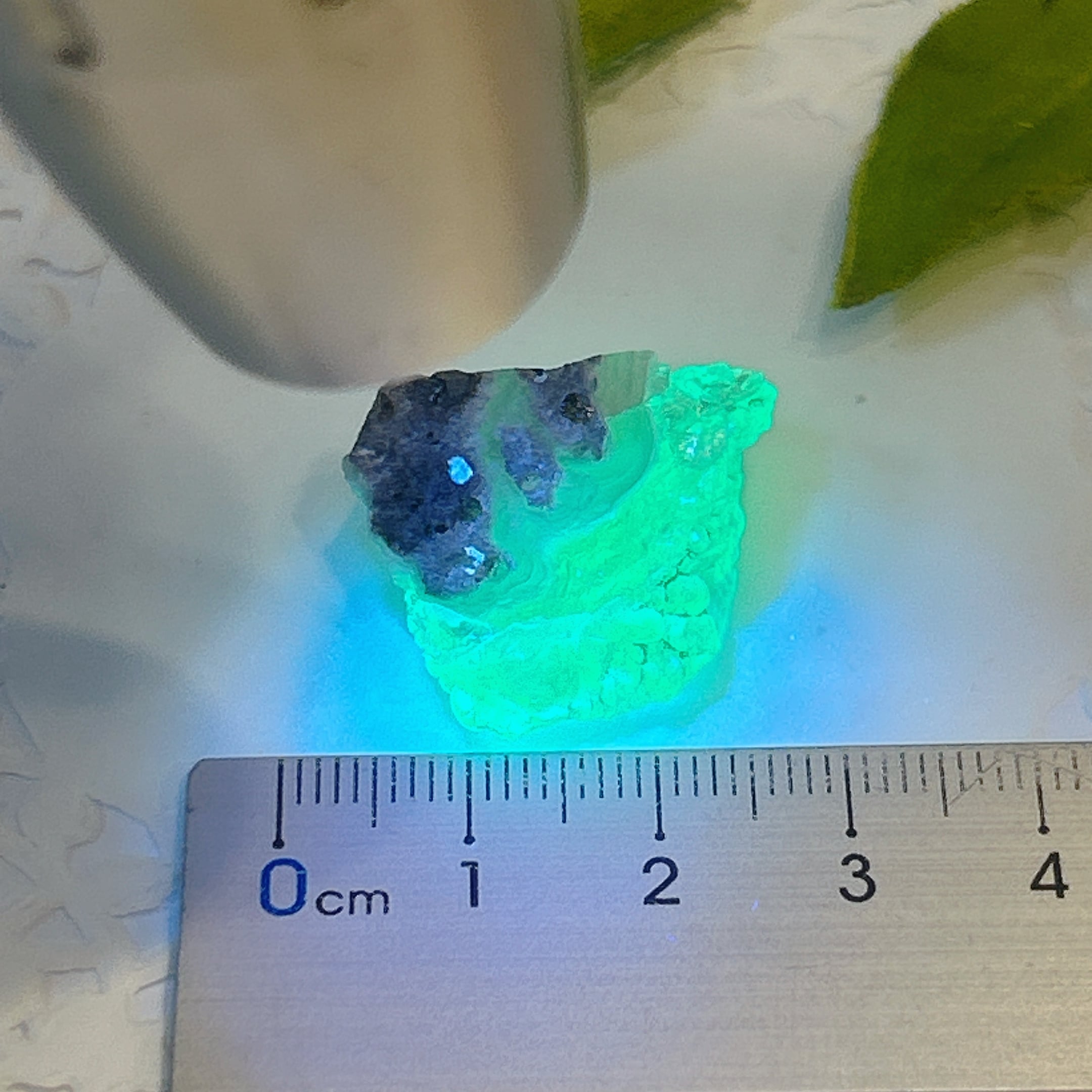かたまってできたもので、紫外線(ブラックライト)で黄緑色の蛍光を発する。