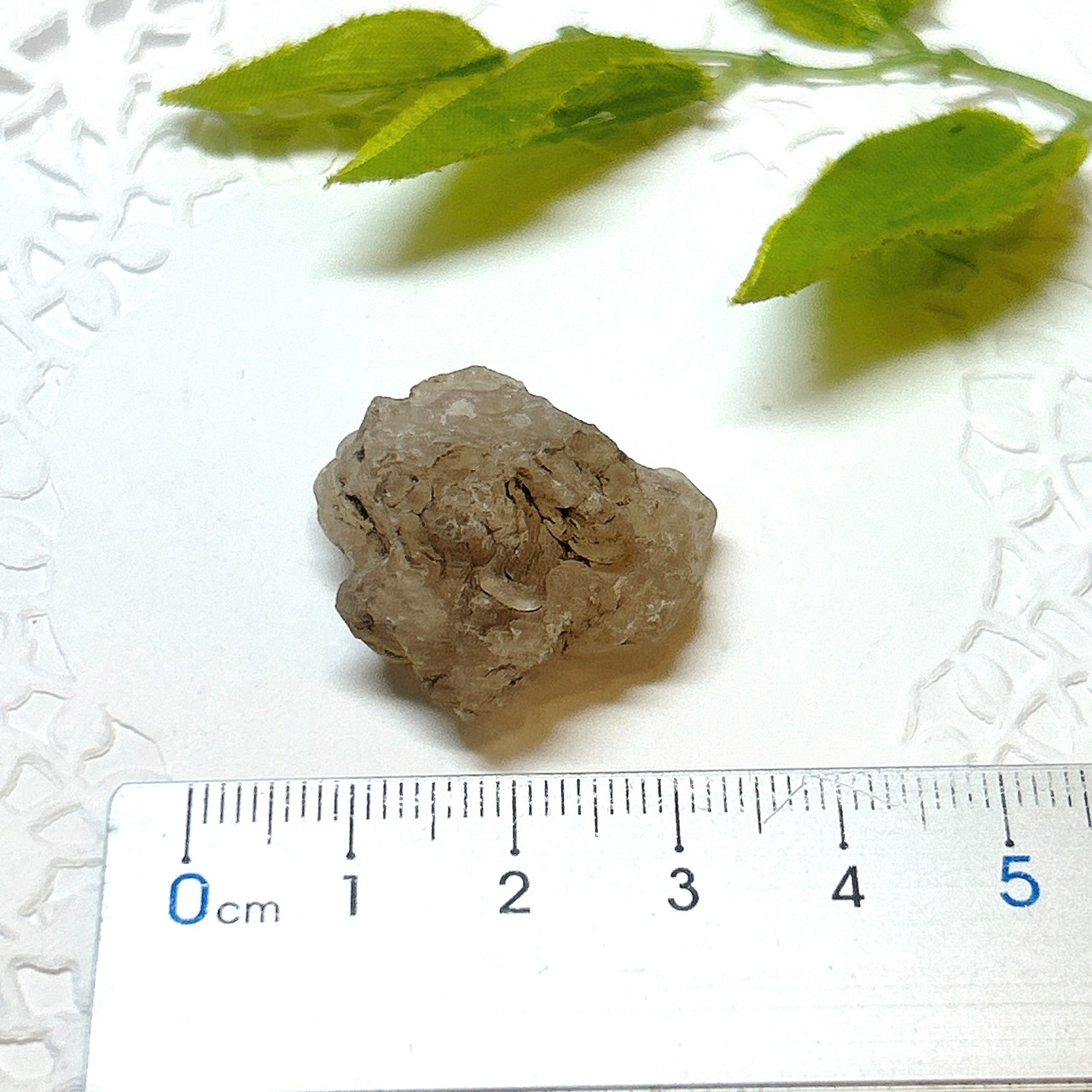 かたまってできたもので、紫外線(ブラックライト)で黄緑色の蛍光を発する。