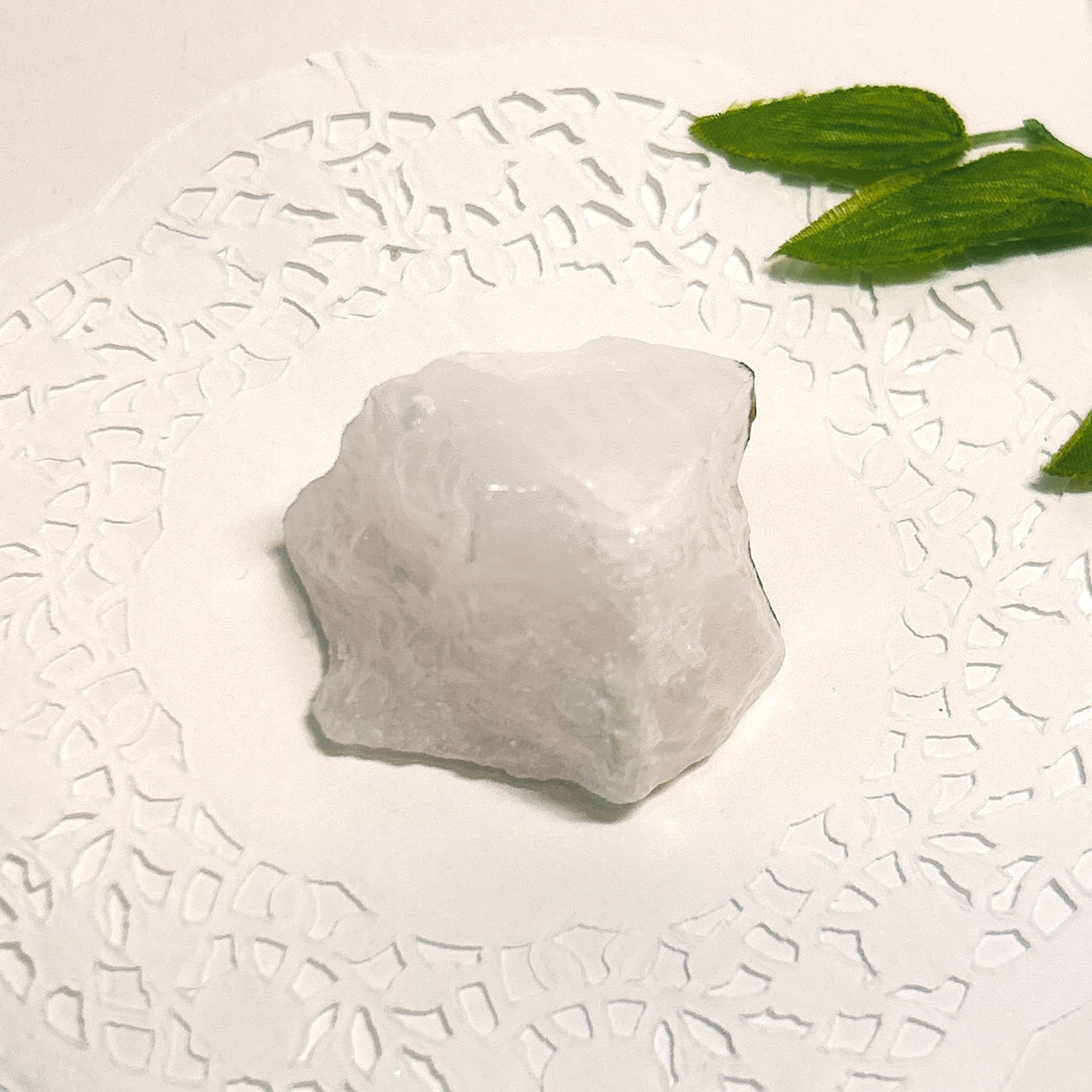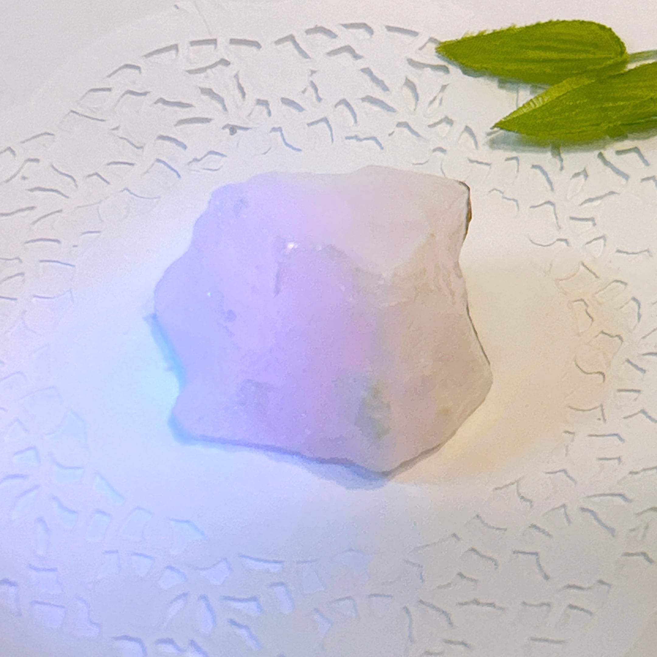 原石はほのかなピンク色ですが、