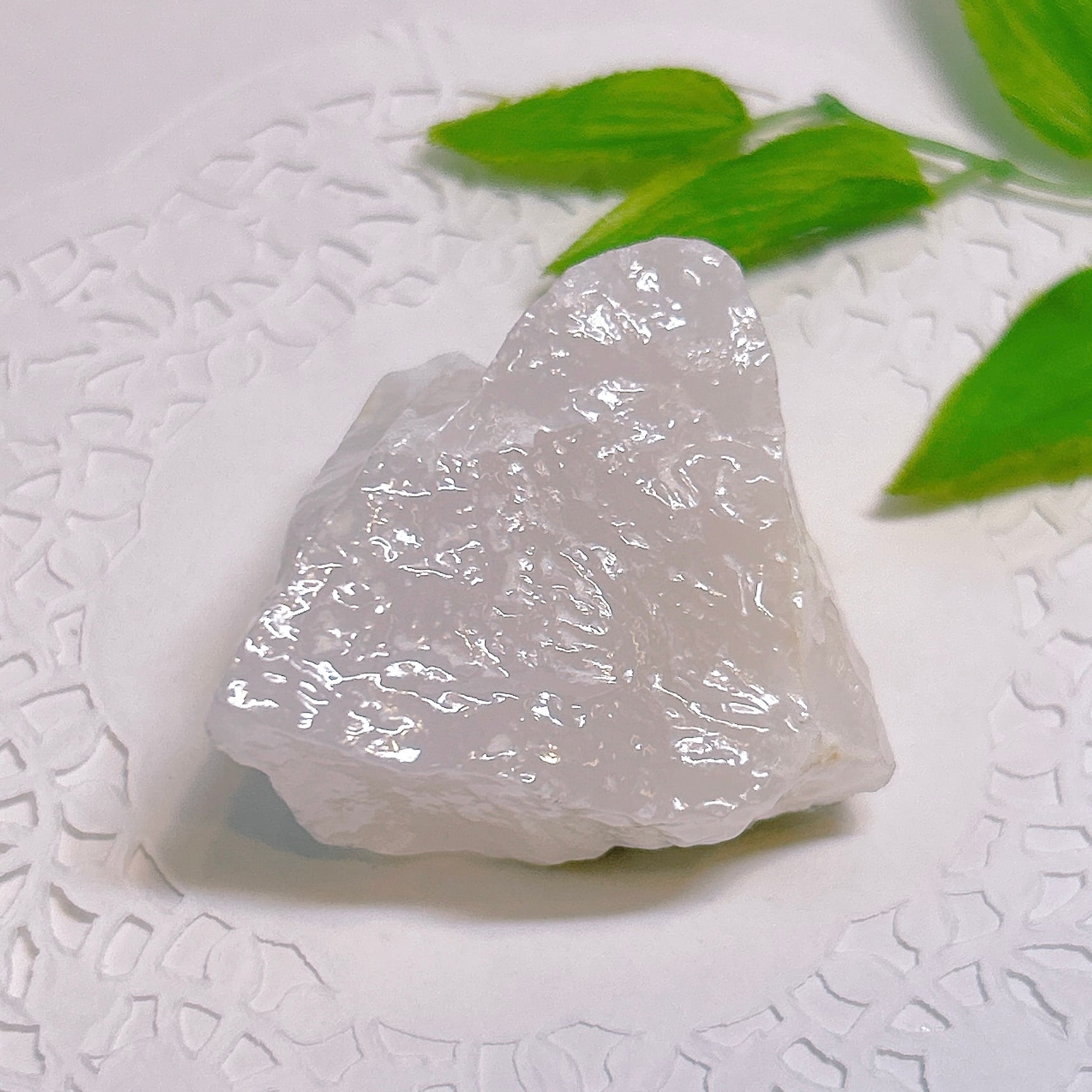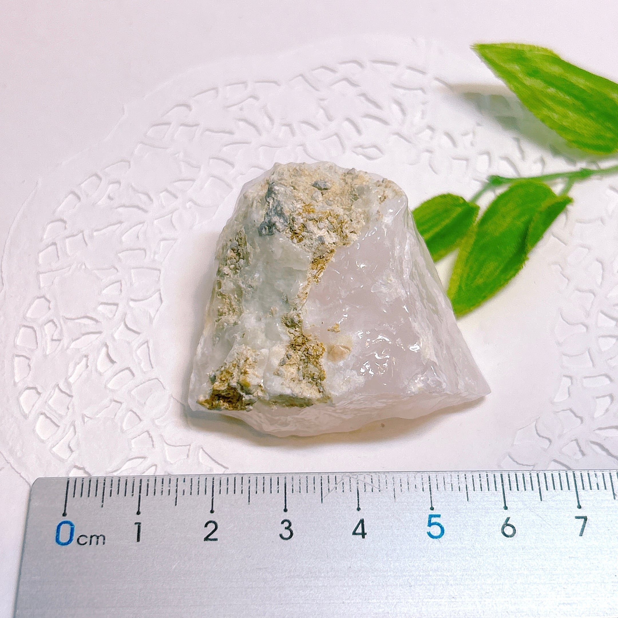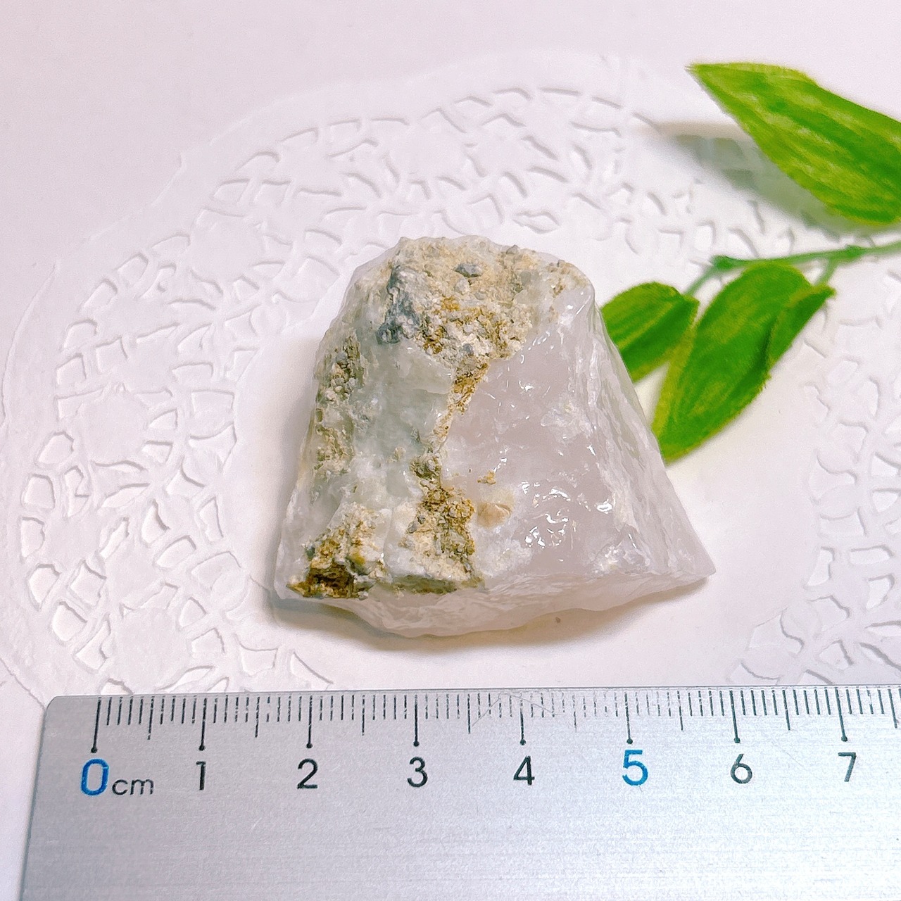 原石はほのかなピンク色ですが、