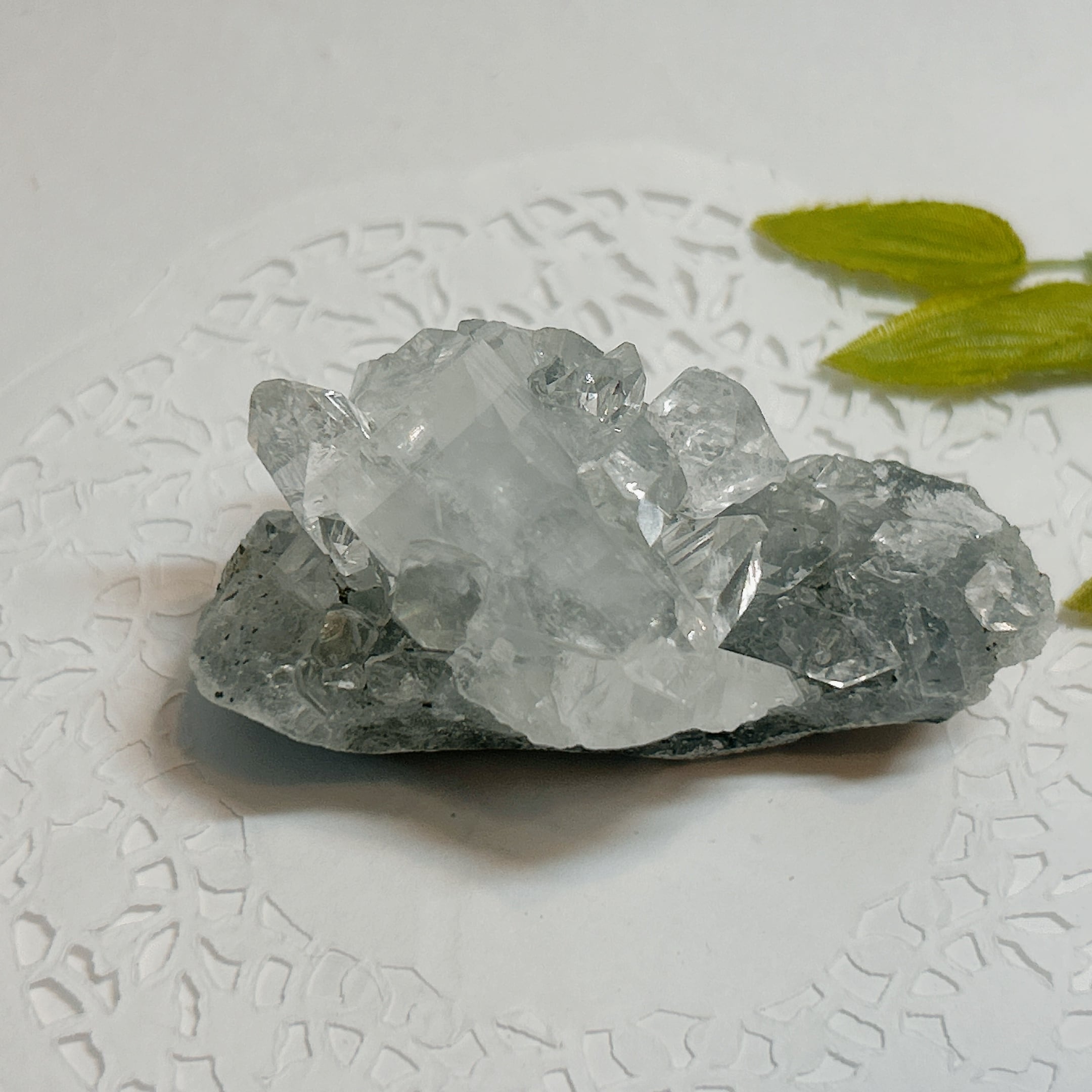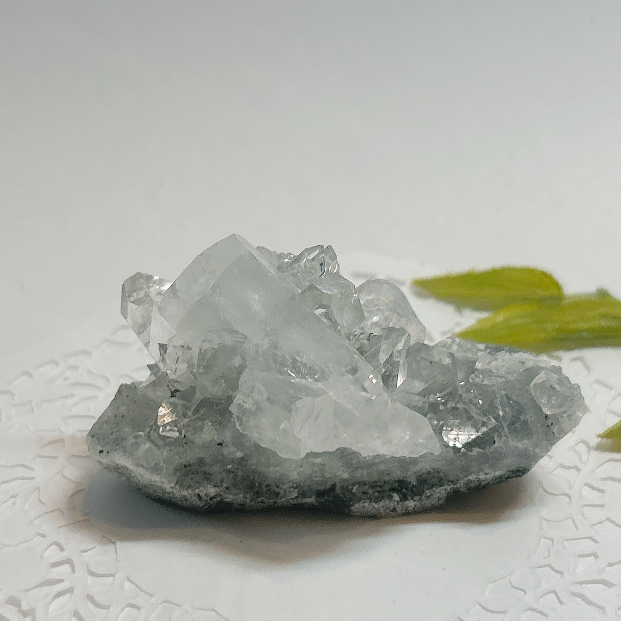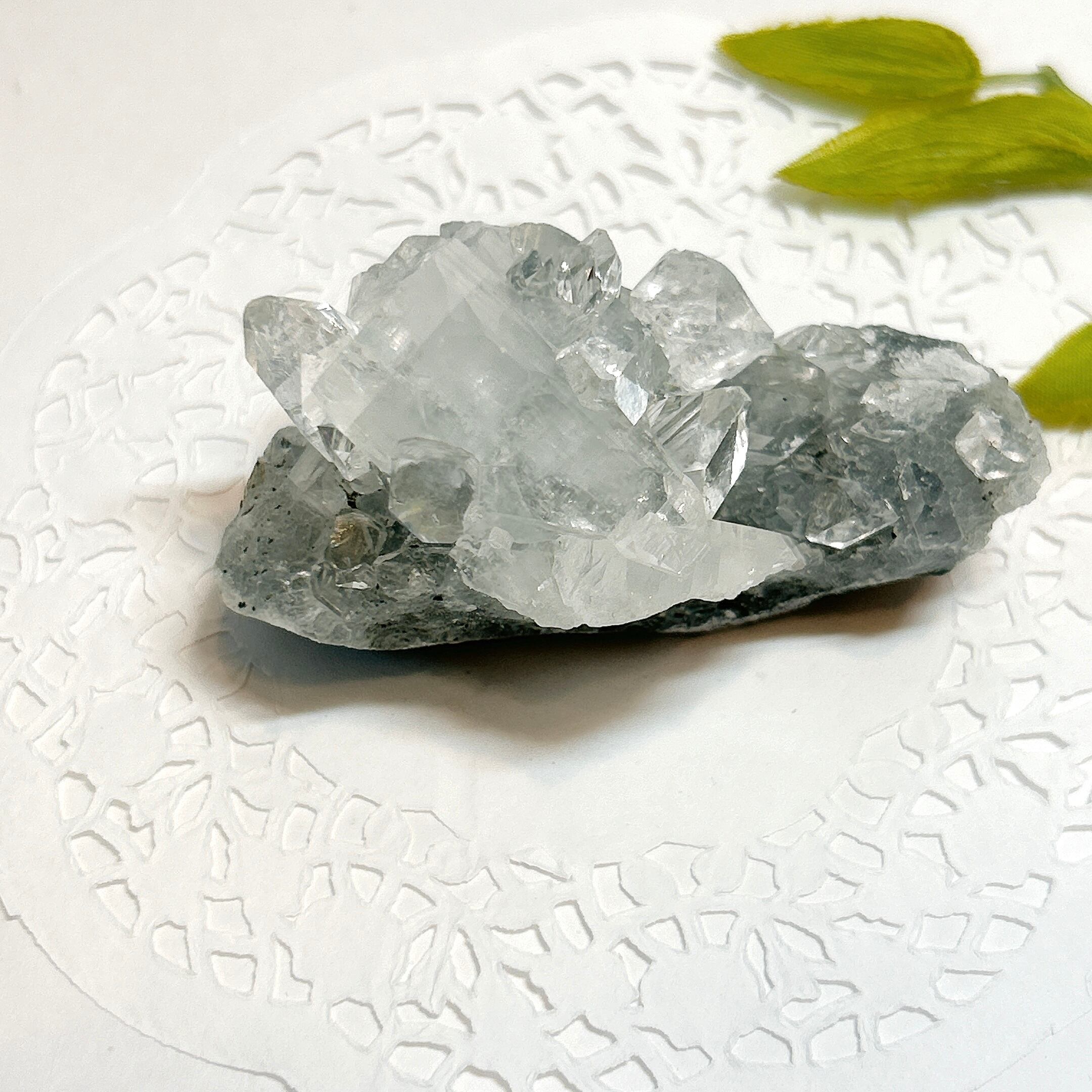 【19035】アポフィライト 水晶上の魚眼石 インド 沸石 ゼオライト 天然石 鉱物 原石 パワーストーン 沸石