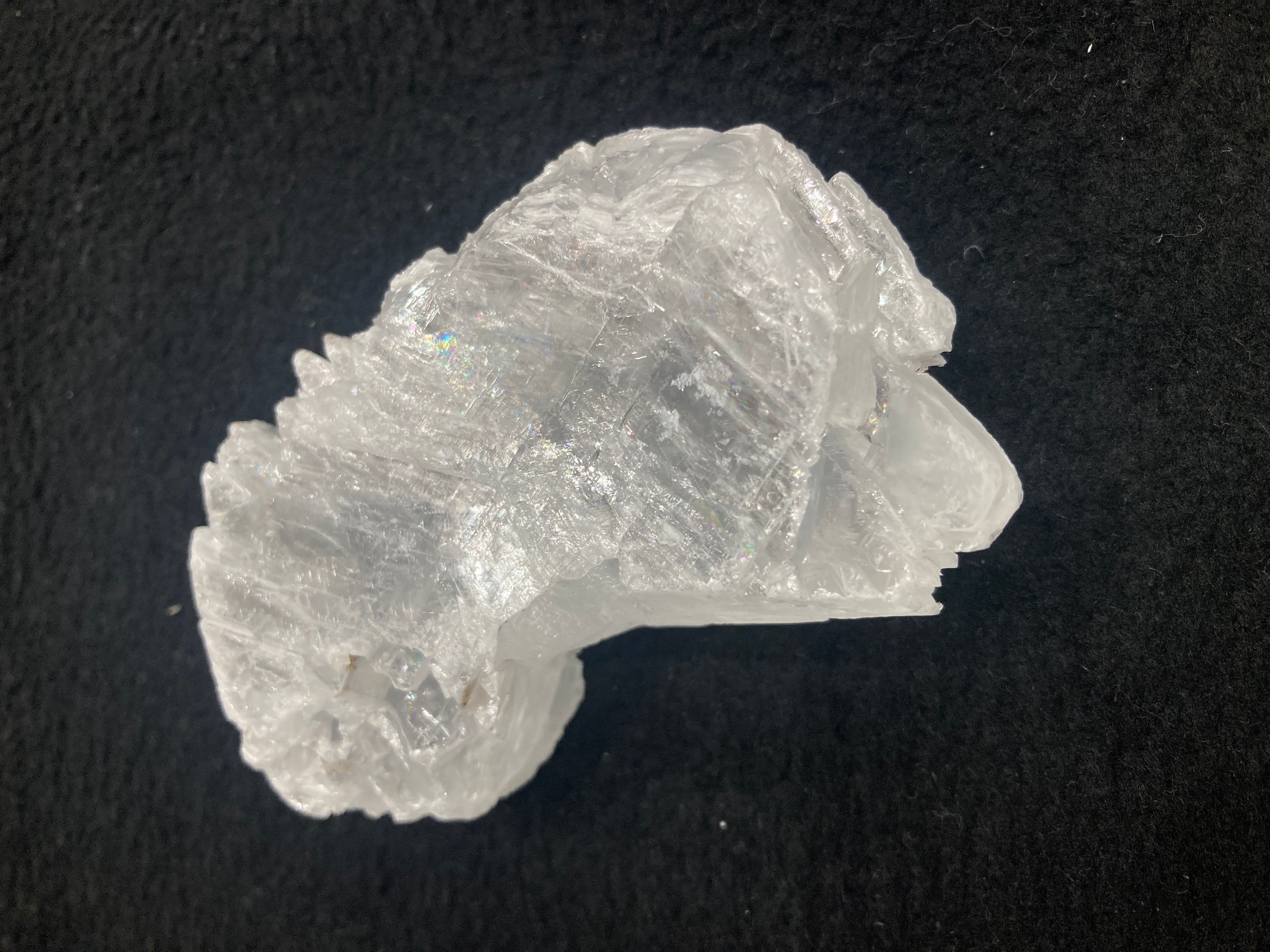 透明な石膏(gypsum)のことをセレナイトと呼びます。双晶になったものはフィッシュテールと呼ばれています。ナイカ鉱山は数メートル規模の非常に大きな結晶が産出する鉱山として有名。しかしながら洞窟内の温度が50℃を超え、湿度も90%以上なため採集するにはかなり過酷な環境です。硬度が低く傷つきやすいのでご注意下さい。
