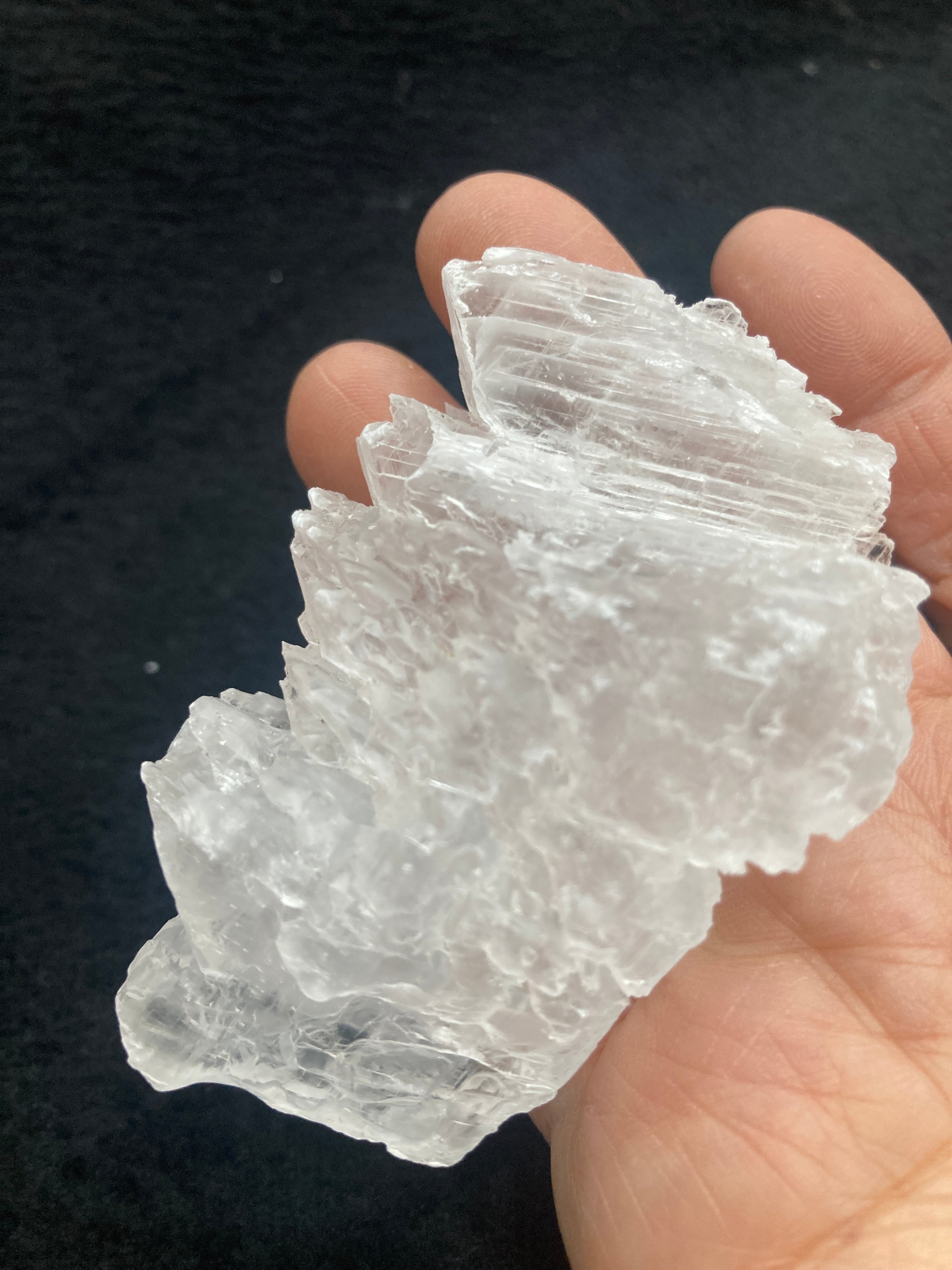 透明な石膏(gypsum)のことをセレナイトと呼びます。双晶になったものはフィッシュテールと呼ばれています。ナイカ鉱山は数メートル規模の非常に大きな結晶が産出する鉱山として有名。しかしながら洞窟内の温度が50℃を超え、湿度も90%以上なため採集するにはかなり過酷な環境です。硬度が低く傷つきやすいのでご注意下さい。