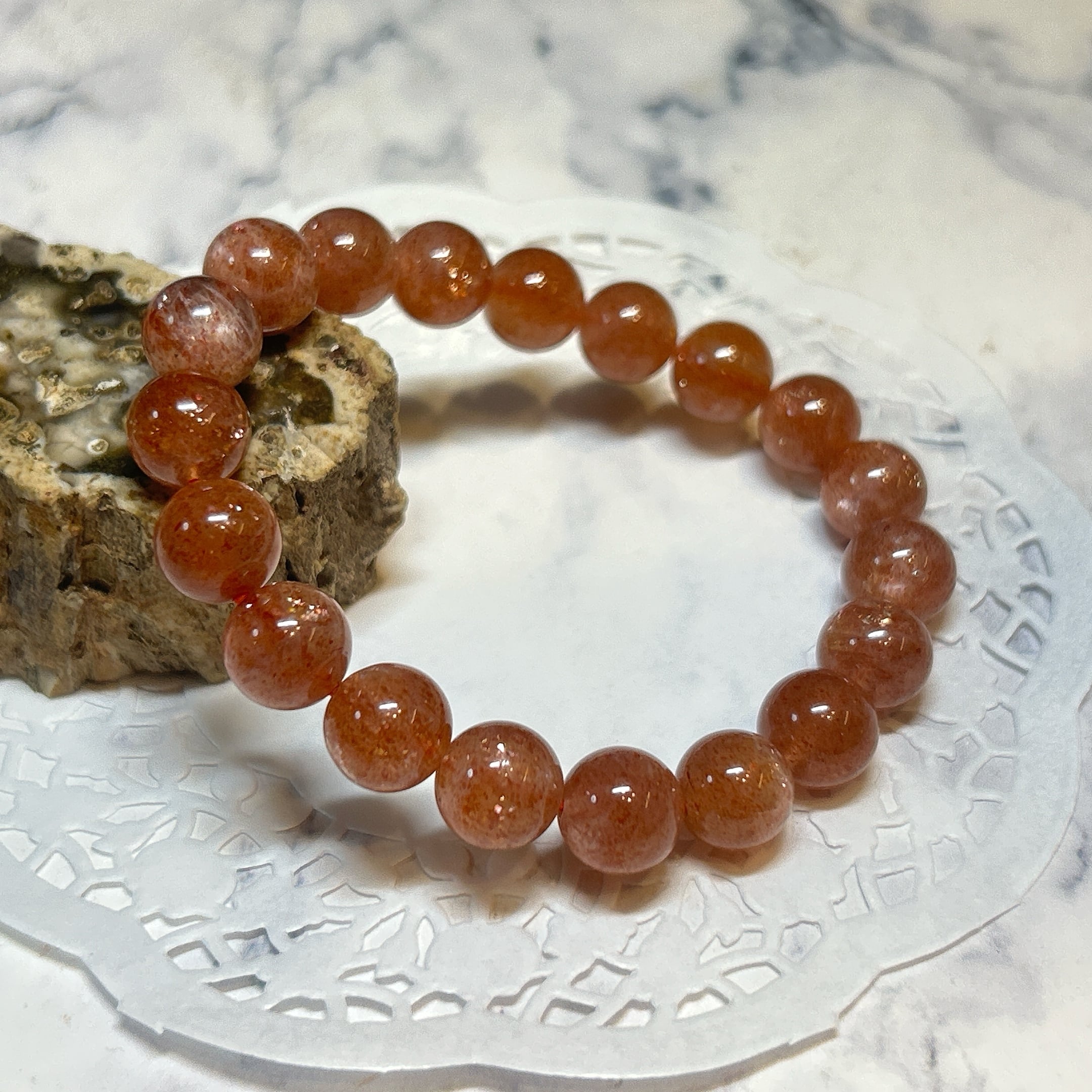 とてもエネルギッシュなラズベリーサンストーンのブレスレット