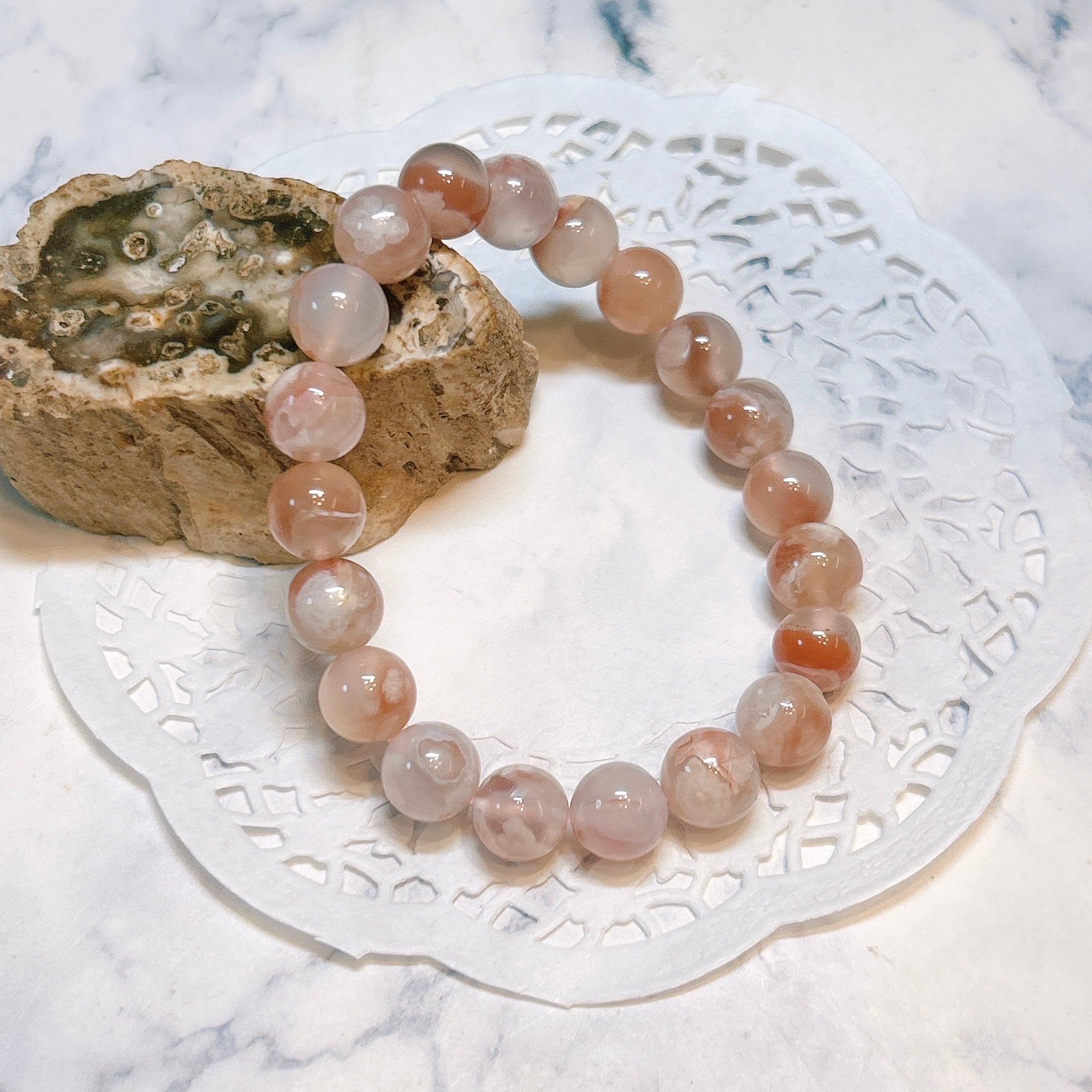【19084】桜アゲート 10㎜ ブレスレット