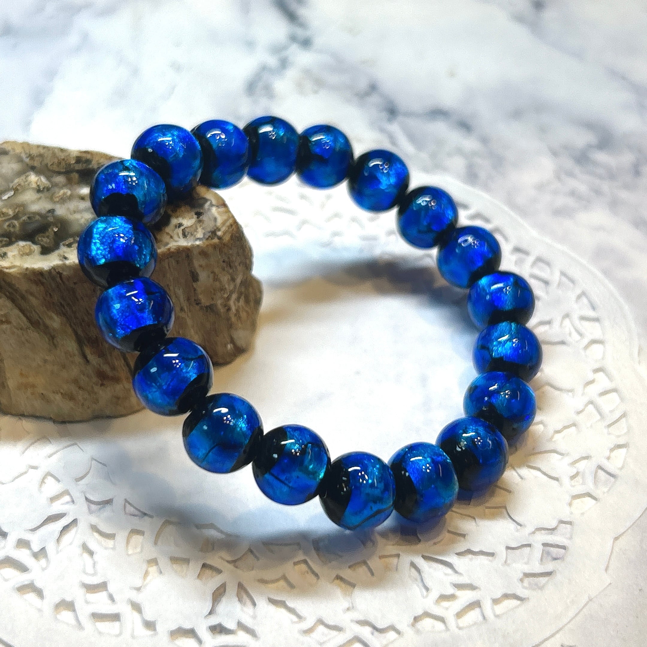 【19091】光る ホタルガラス 10㎜ ブルー bracelet