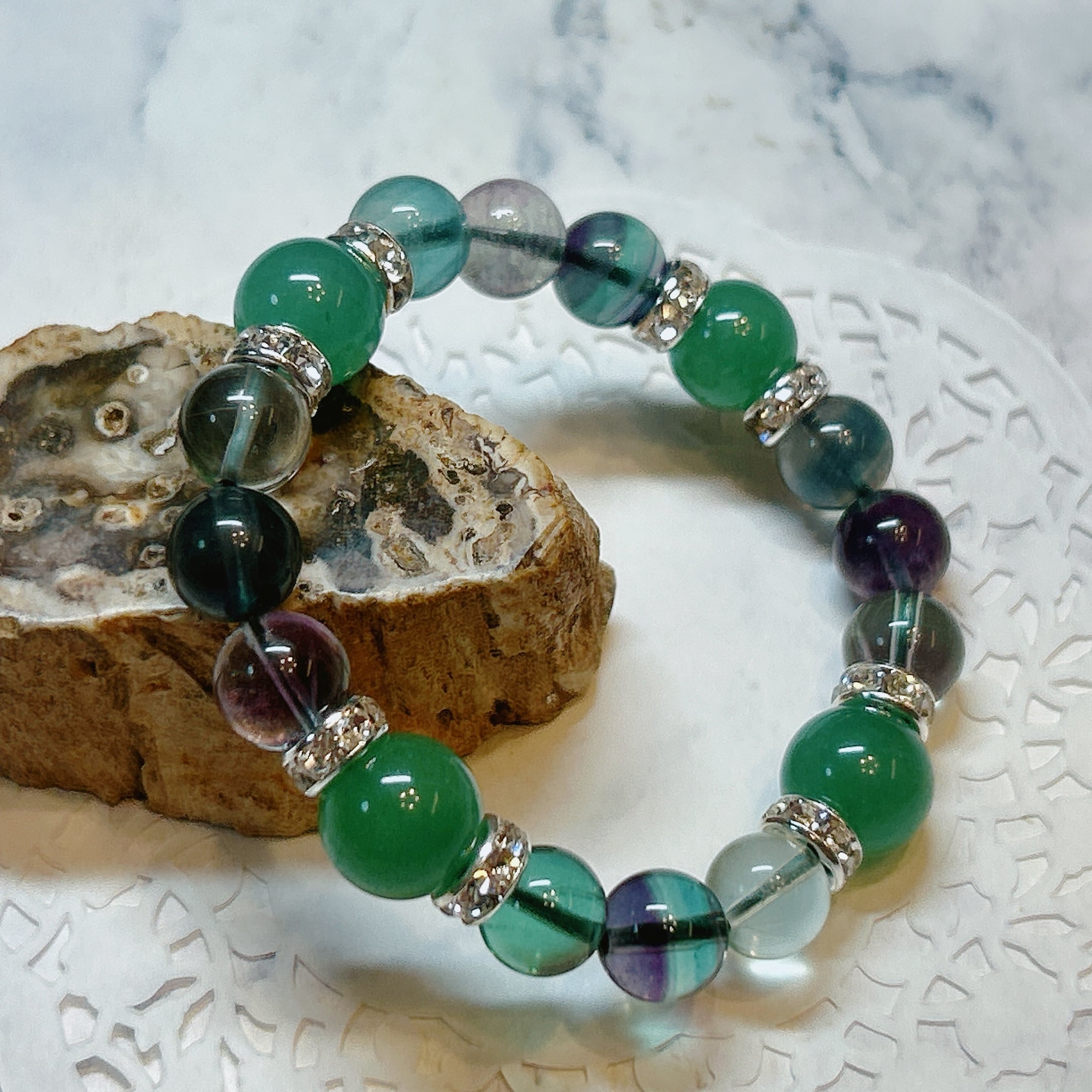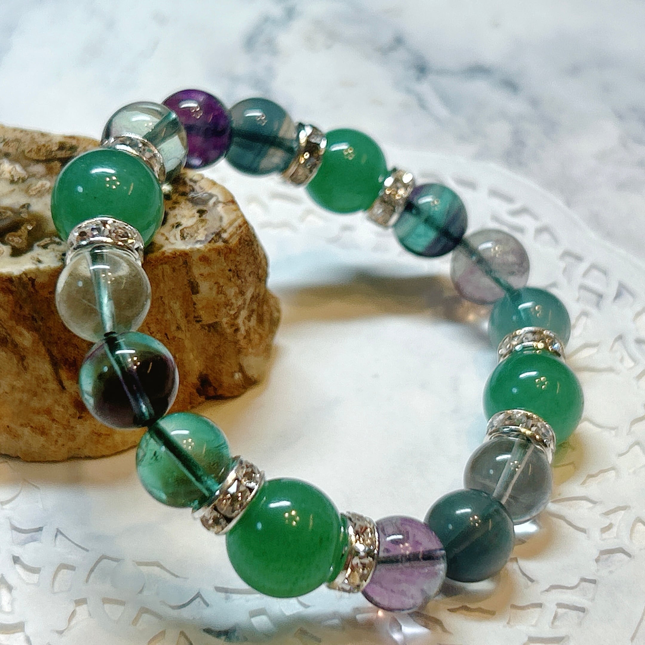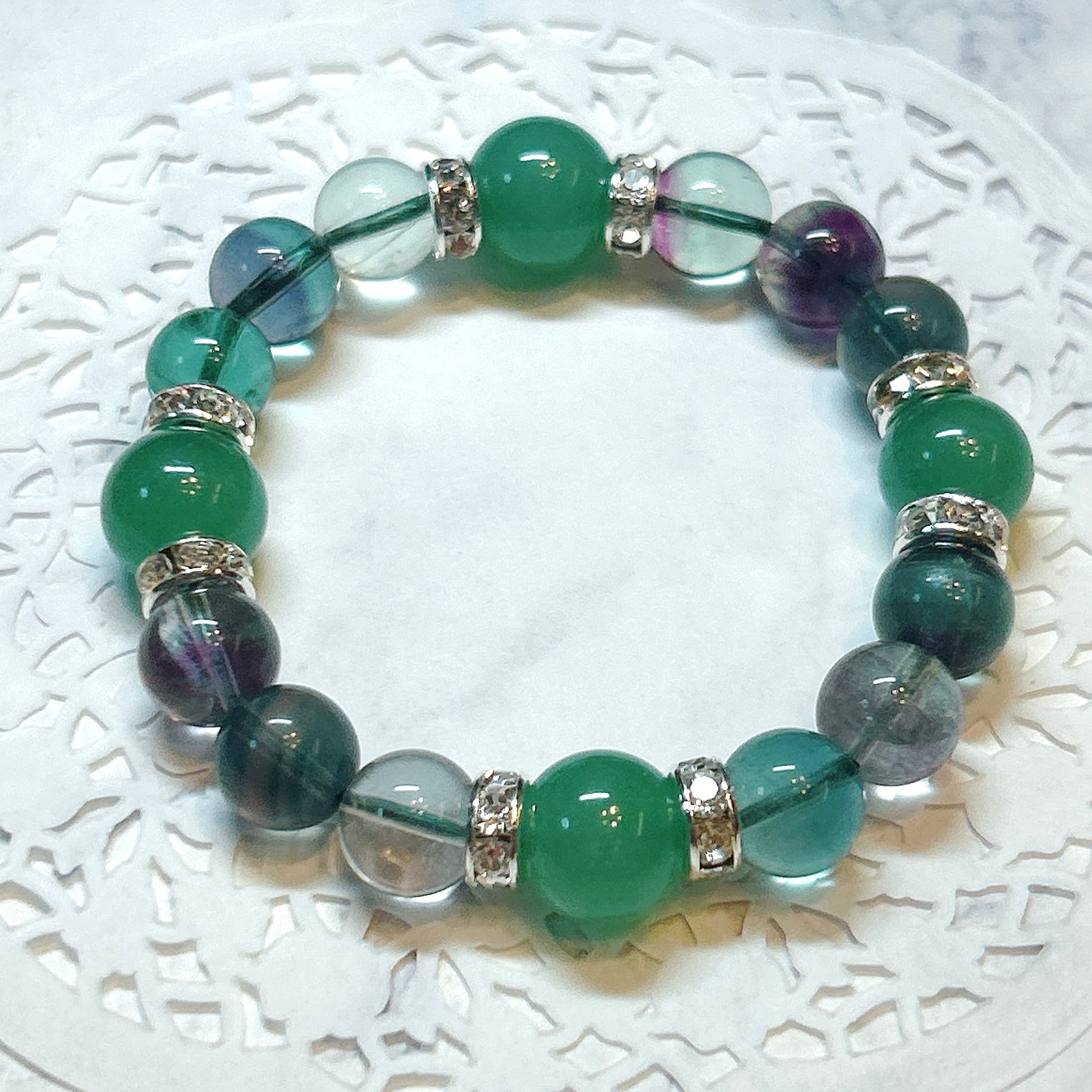 透明感のあるみずみずしいフローライトとアベンチュリンのブレスレット