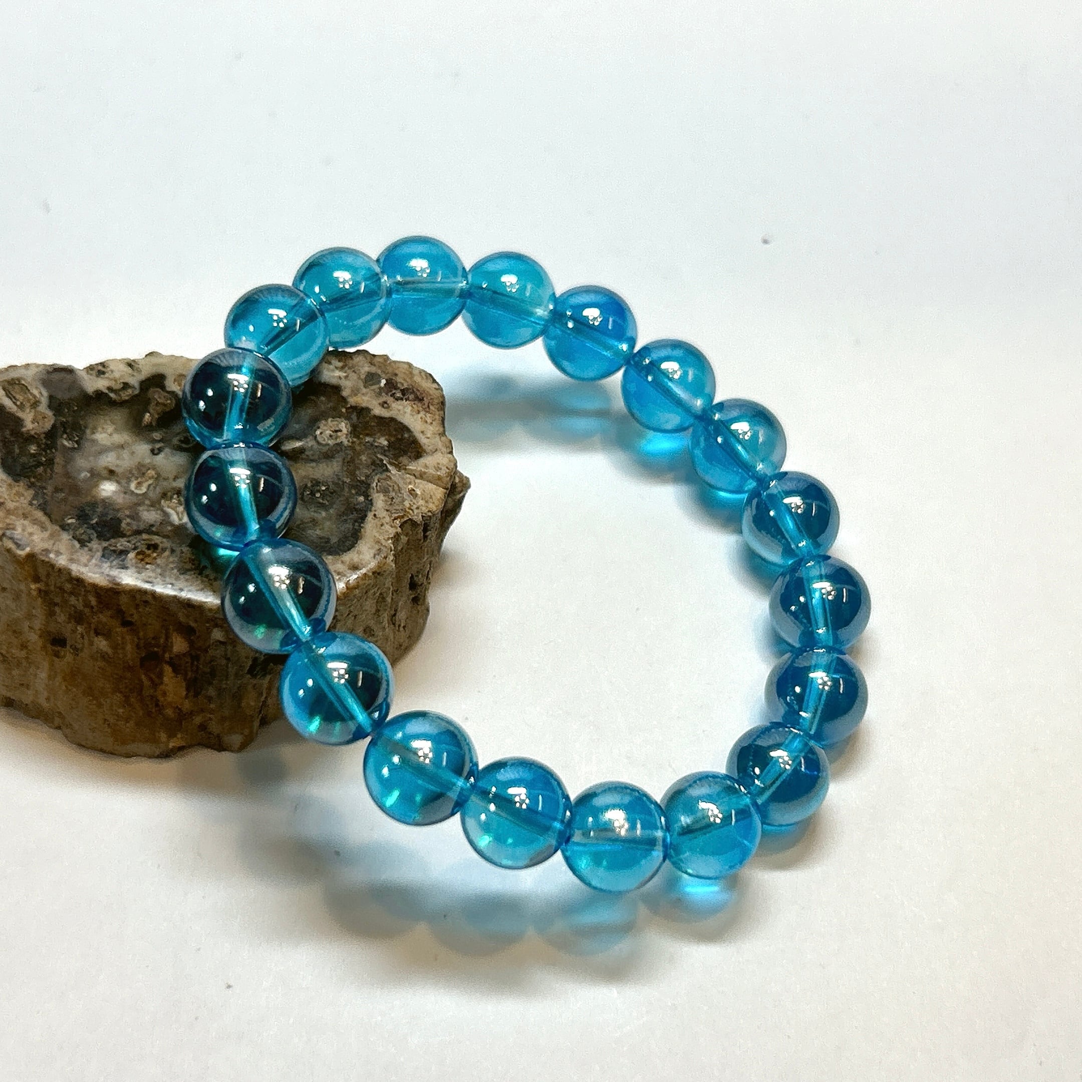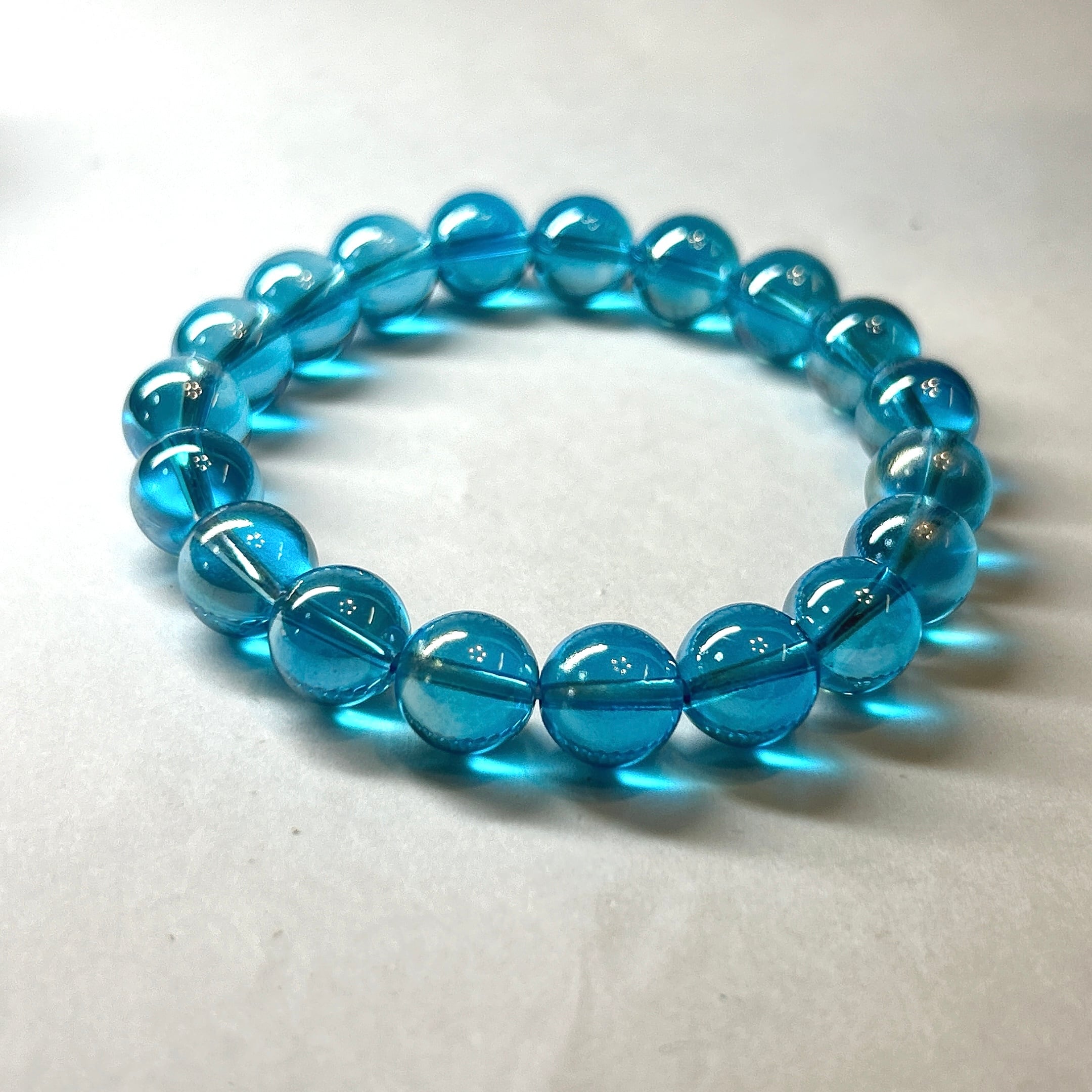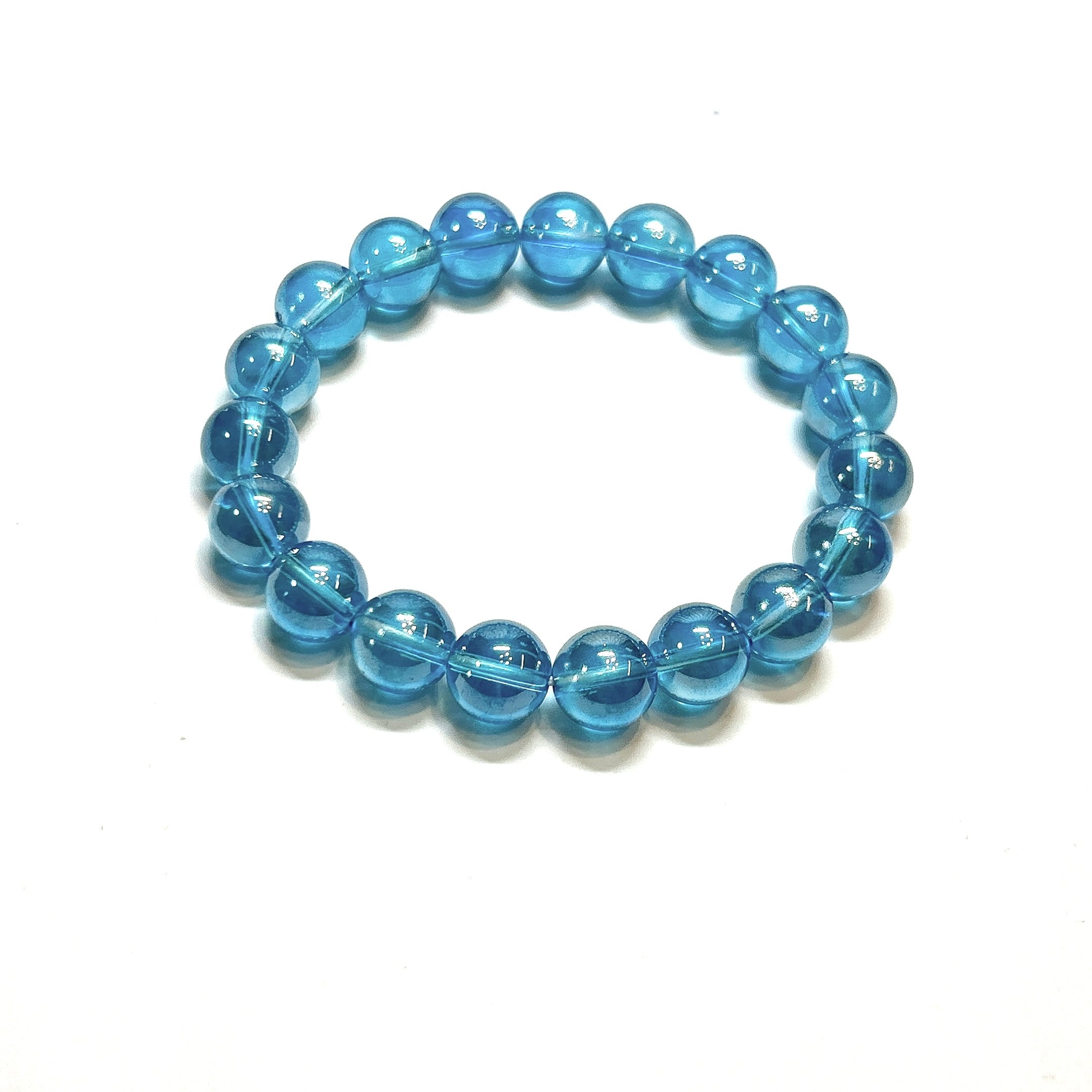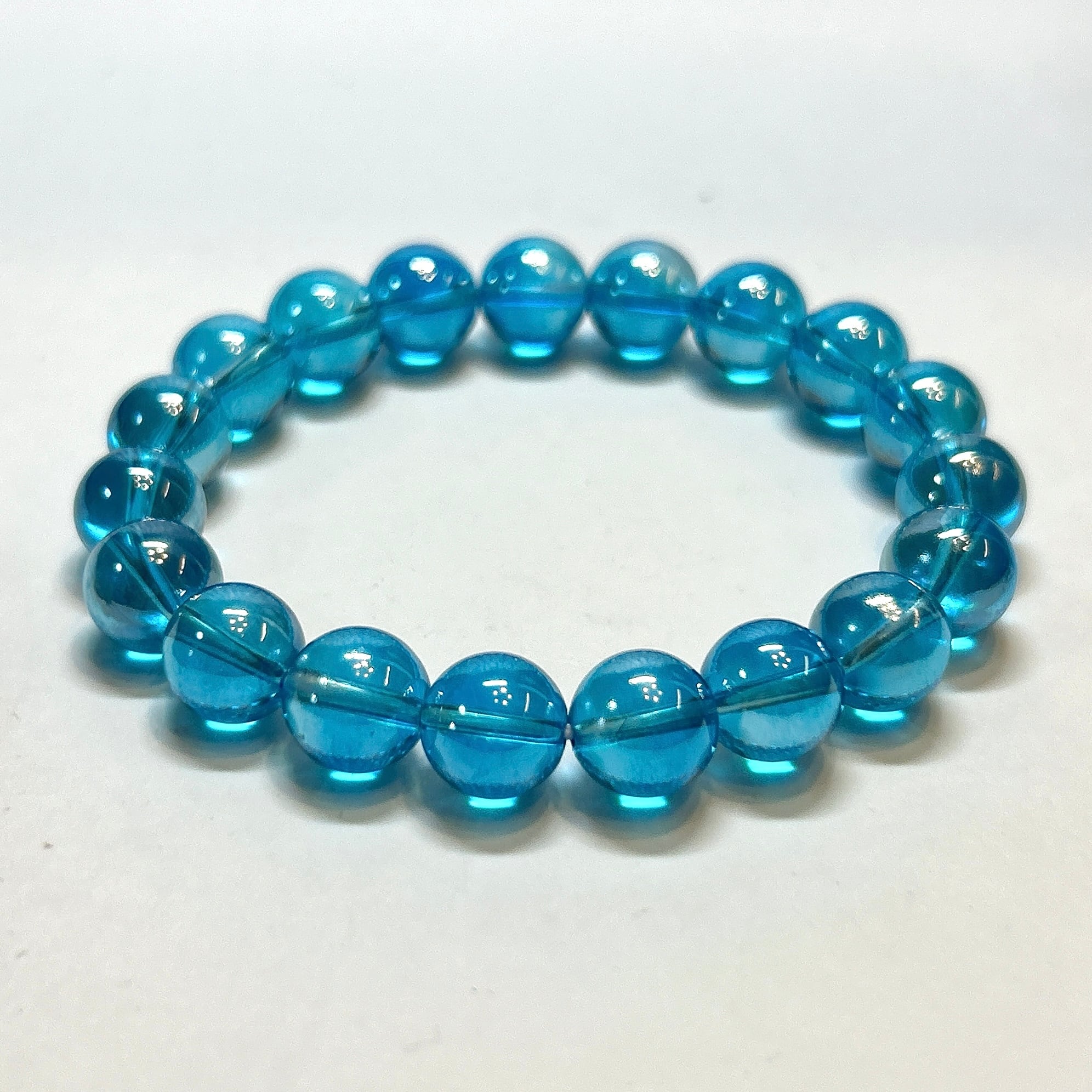 【19109】アクアオーラ水晶 10㎜ オーラ水晶 ブレスレット 金属