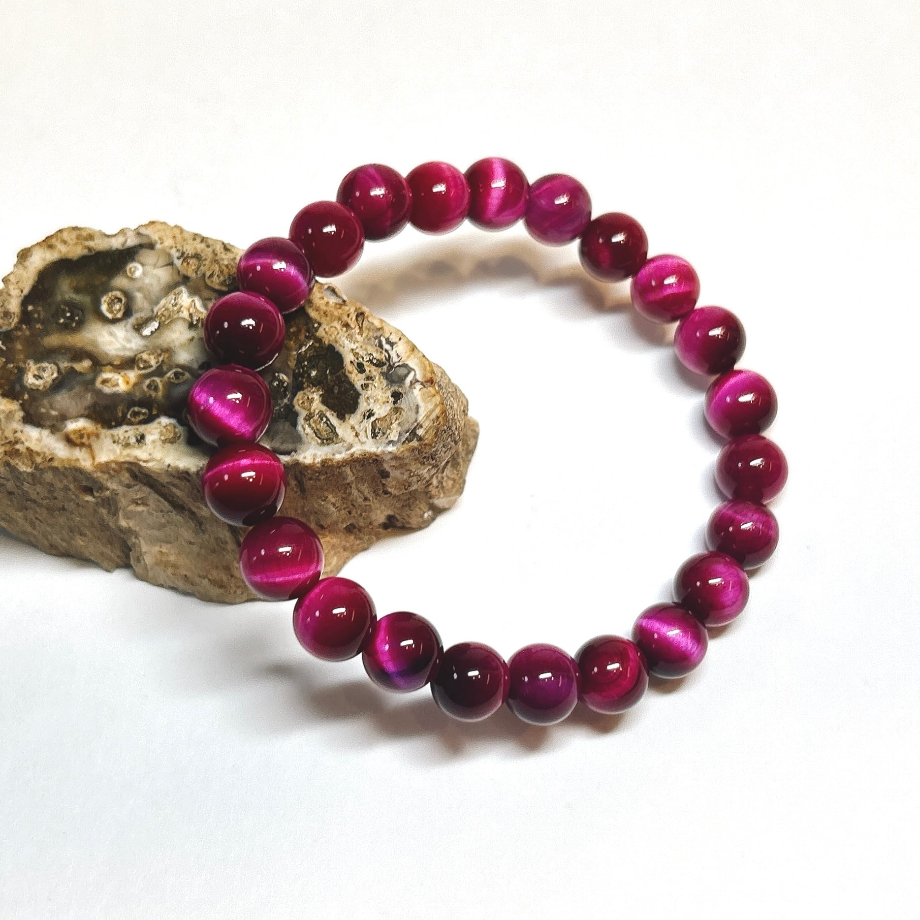 鮮やかなピンクが華やかなピンクタイガーアイブレスレット(着色)