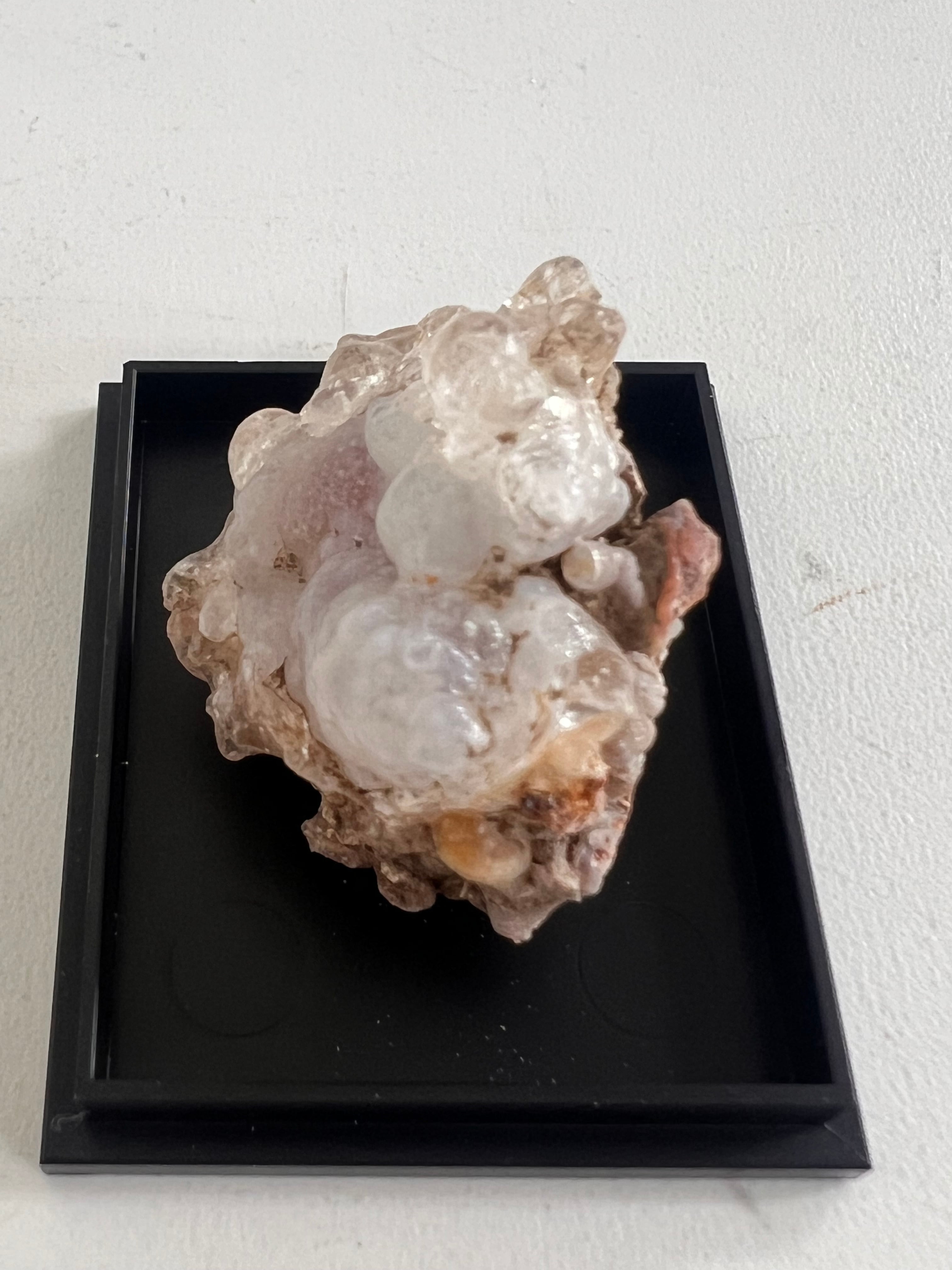 正式にはオパール(蛋白石たんぱくせき)の変種。地下水に溶けている二酸化珪素が常温で水滴の様に