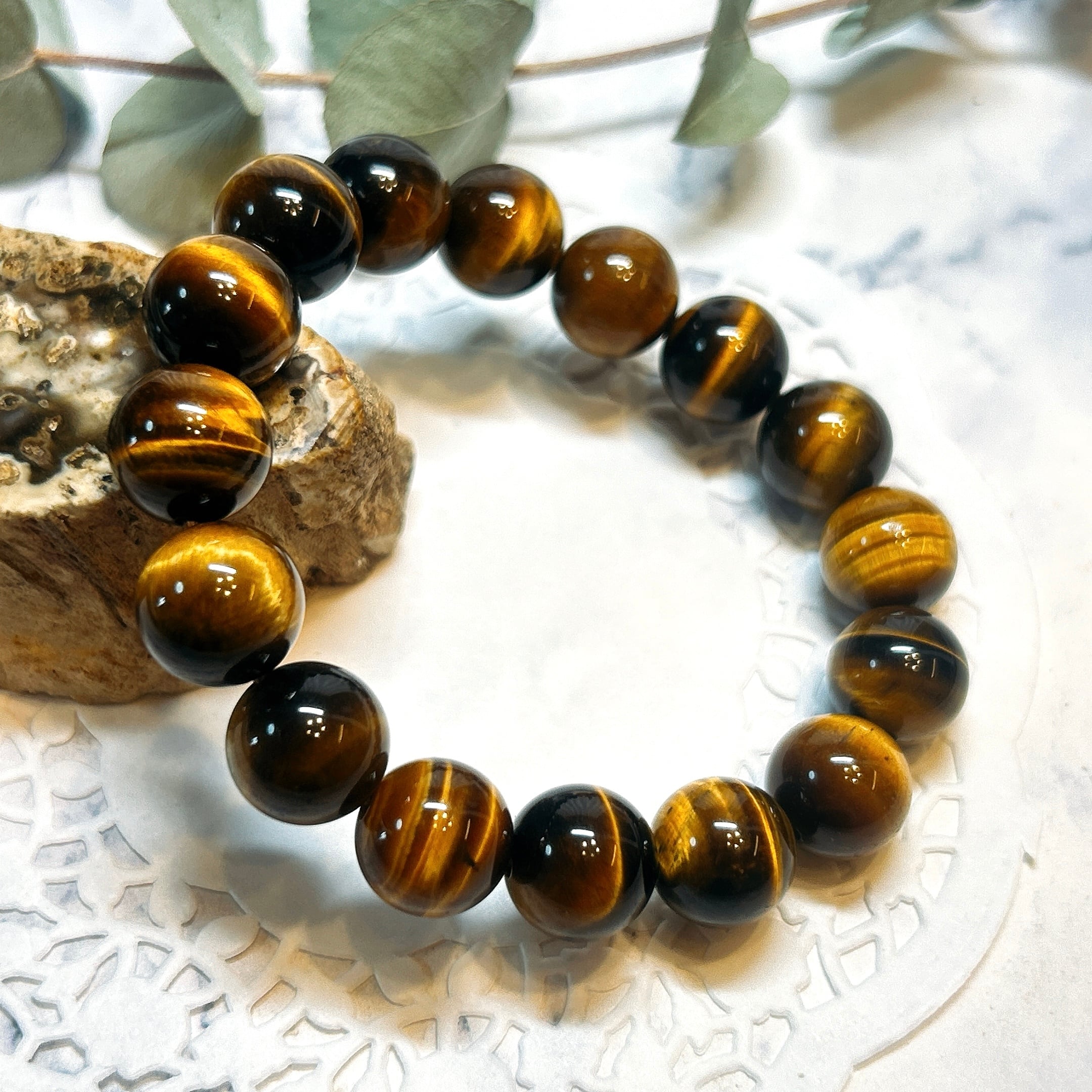 【19379】12㎜ タイガーアイ 虎目石 タイガーズアイ Tiger's Eye 天然石 bracelet
