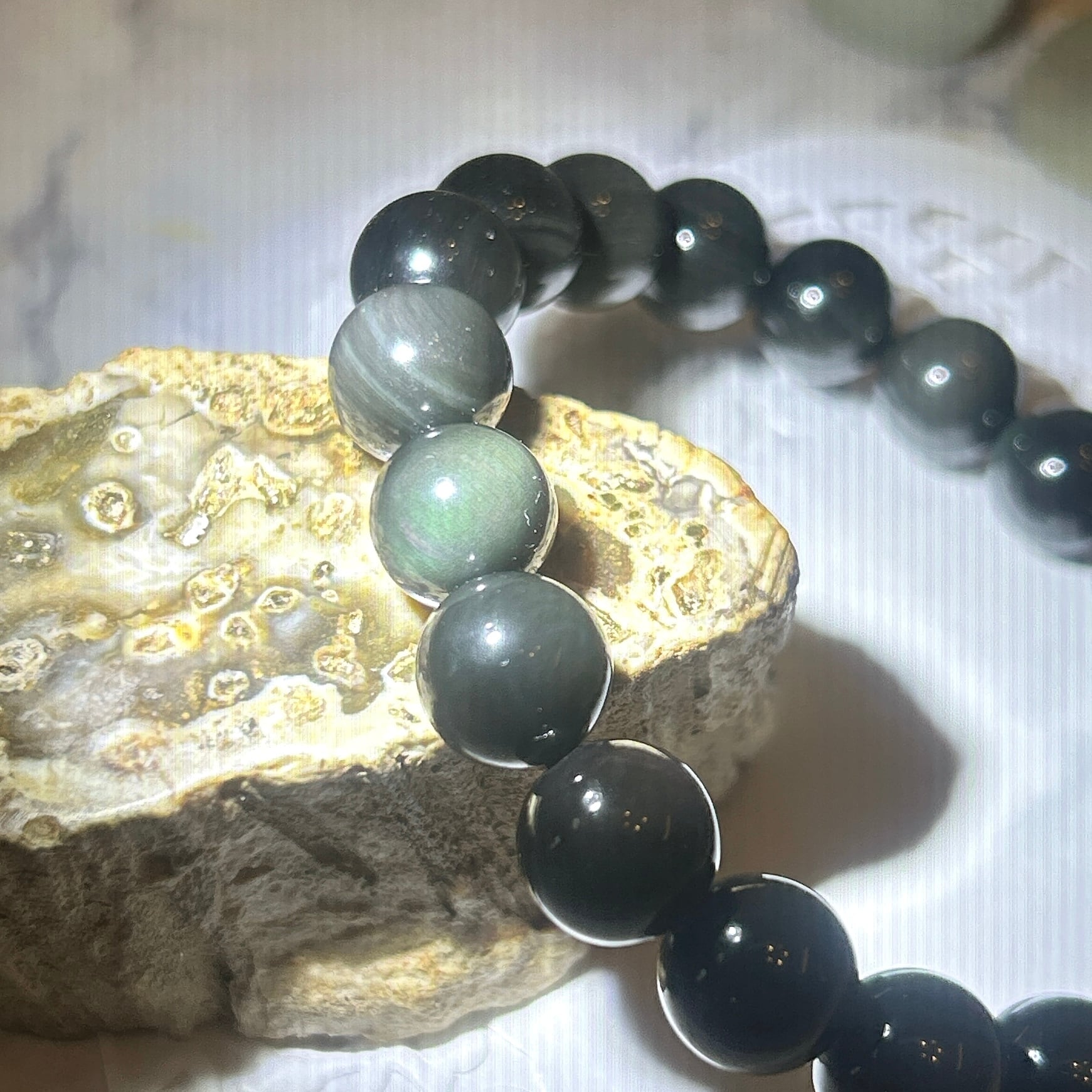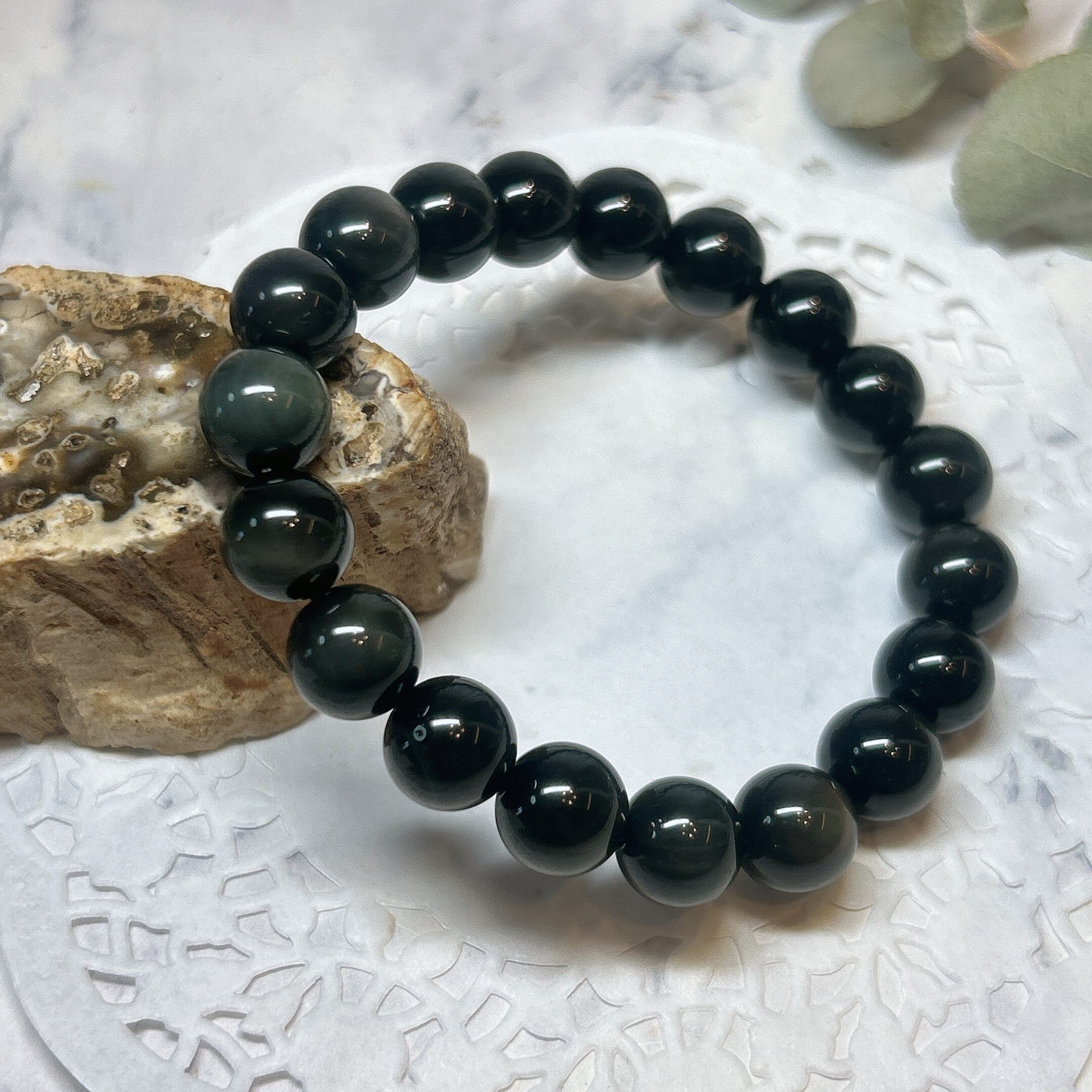 【19390】レインボーオブシディアン 10㎜ ブレスレット 黒曜石 Rainbow Obsidian