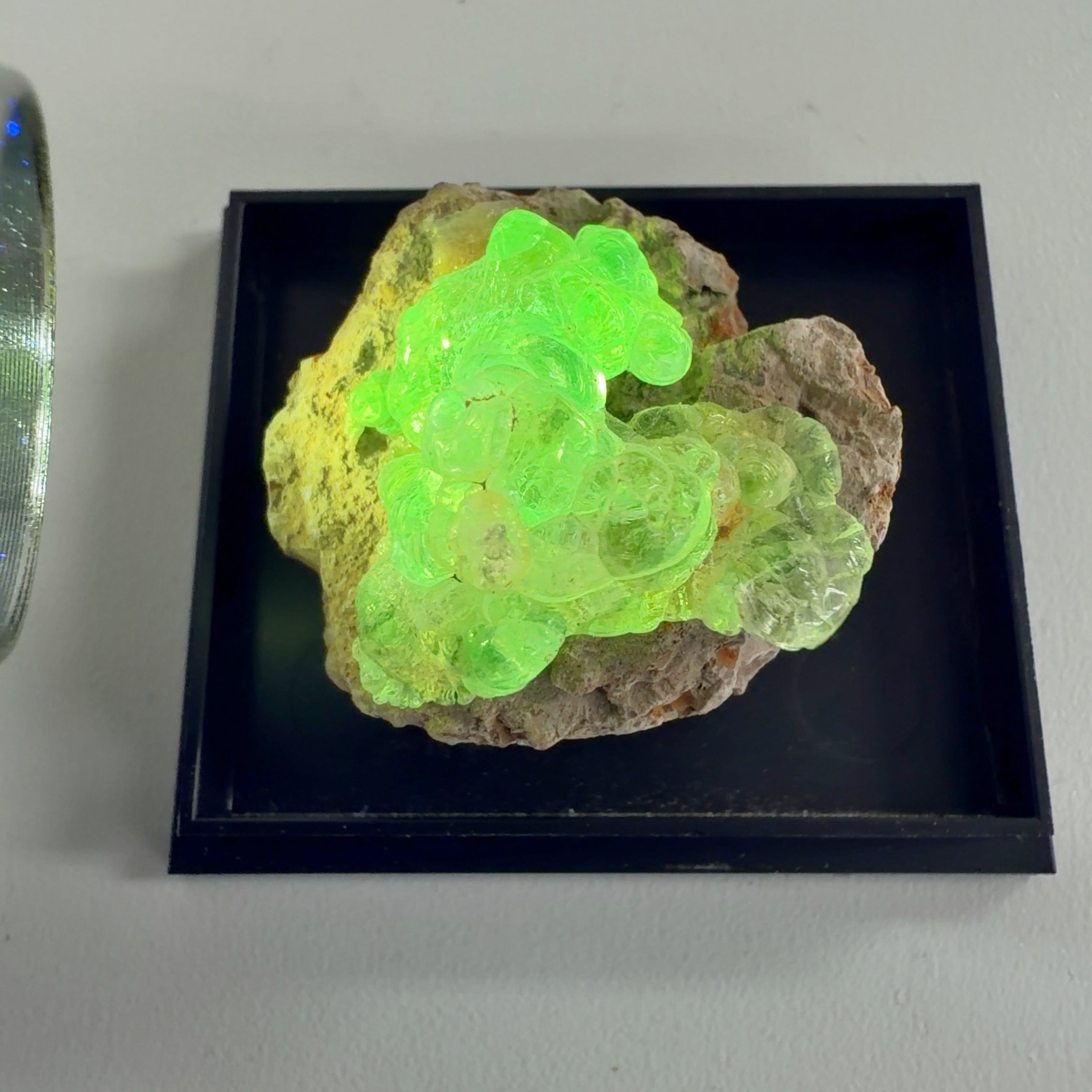 かたまってできたもので、紫外線(ブラックライト)で黄緑色の蛍光を発する。