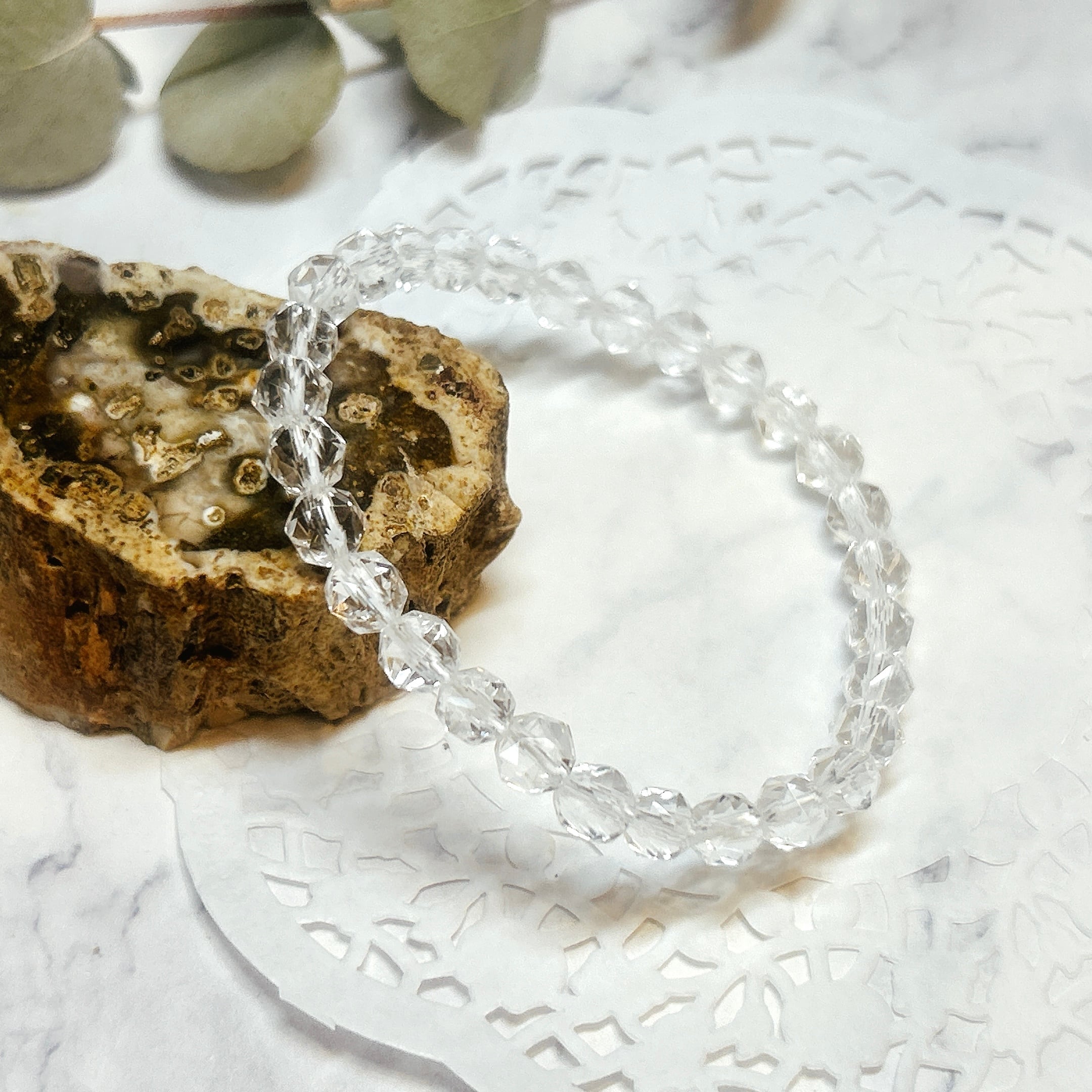 【19432】スターカット水晶 6㎜ キラキラ ブレスレット 天然石