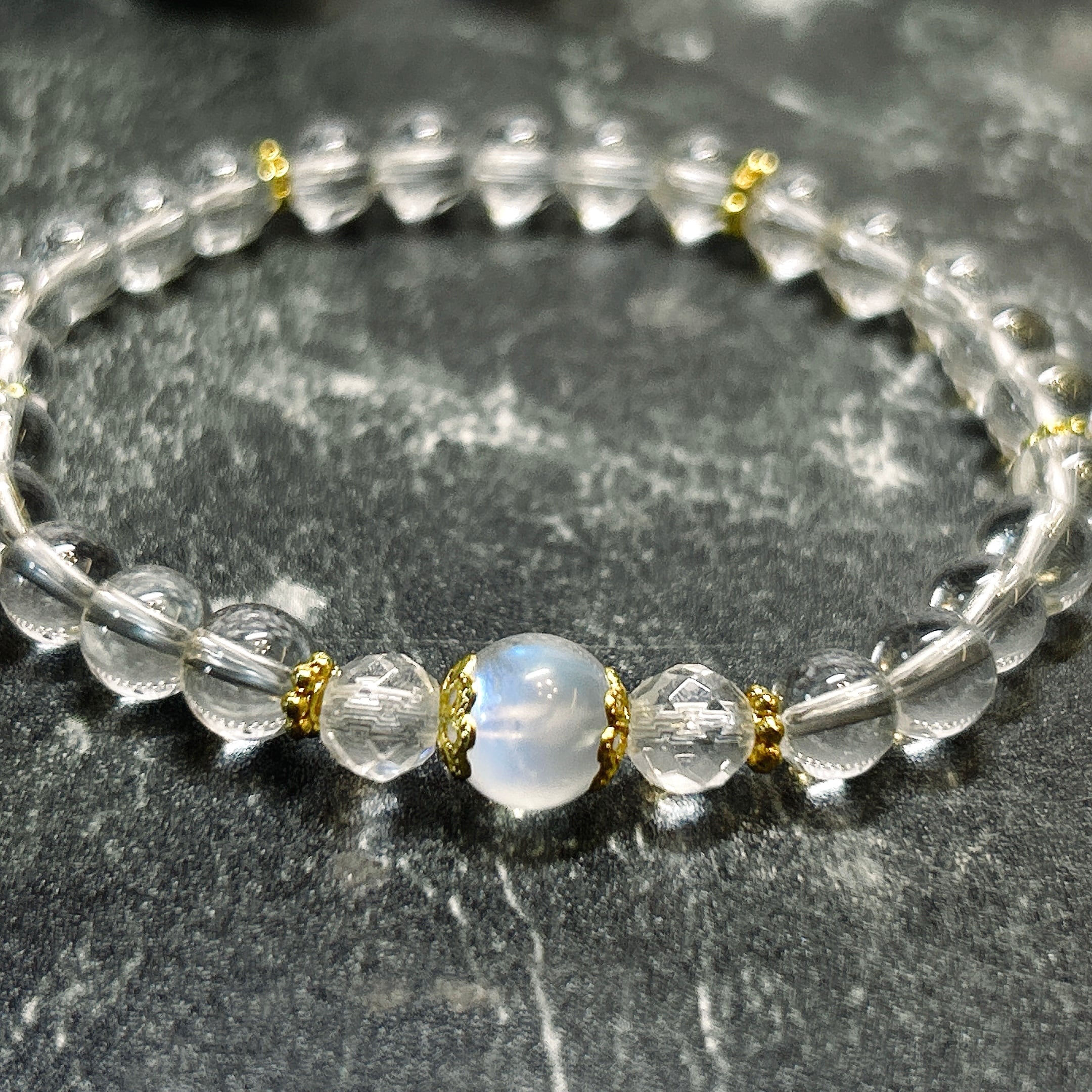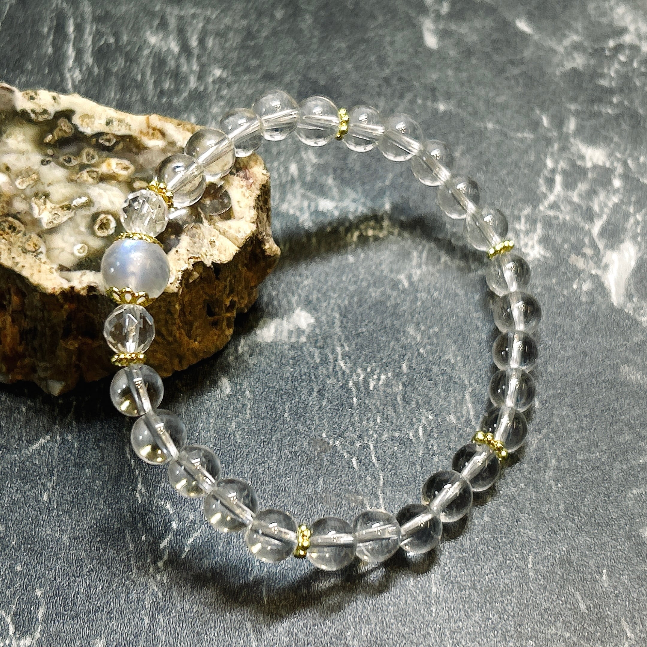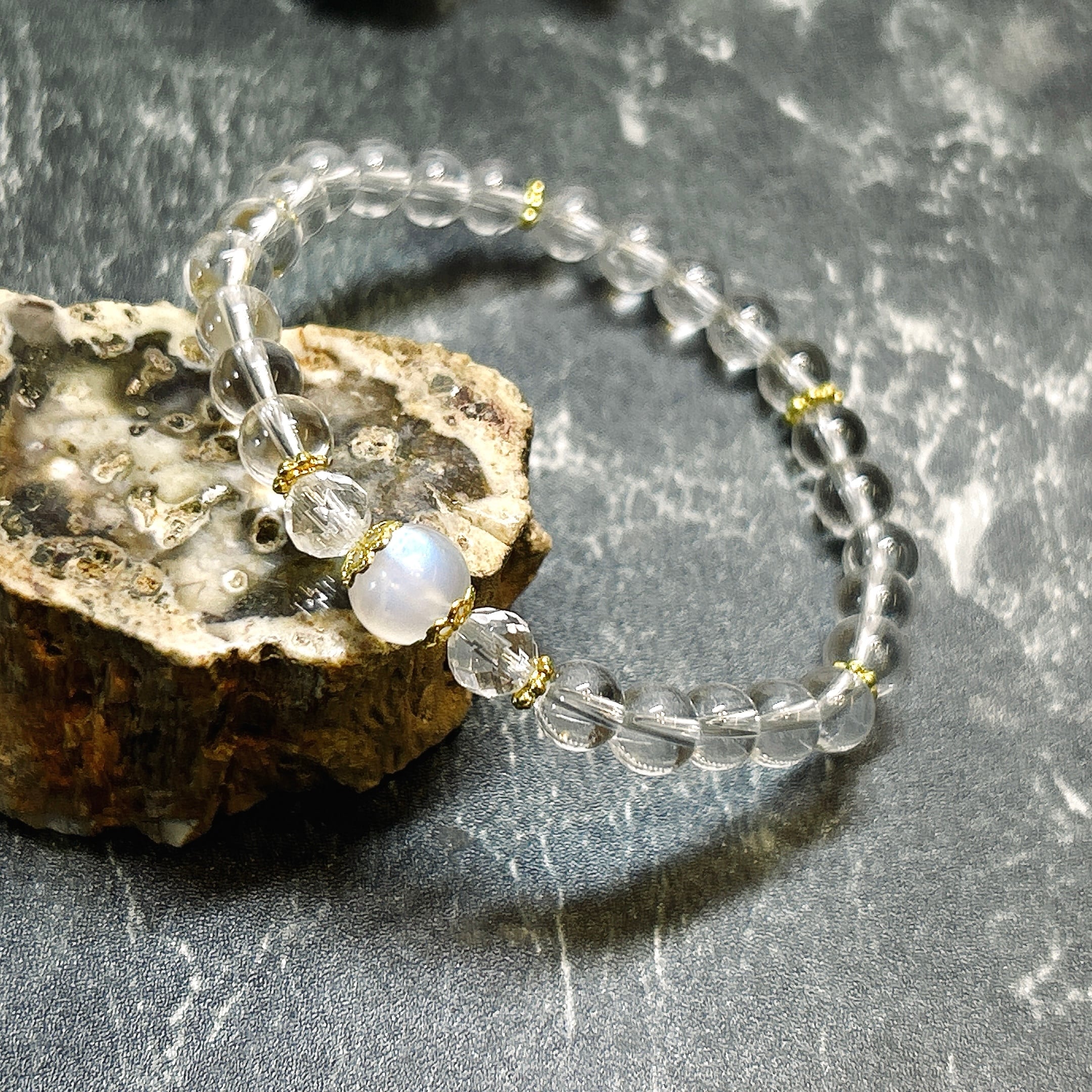 ムーンストーンと水晶のブレスレット。