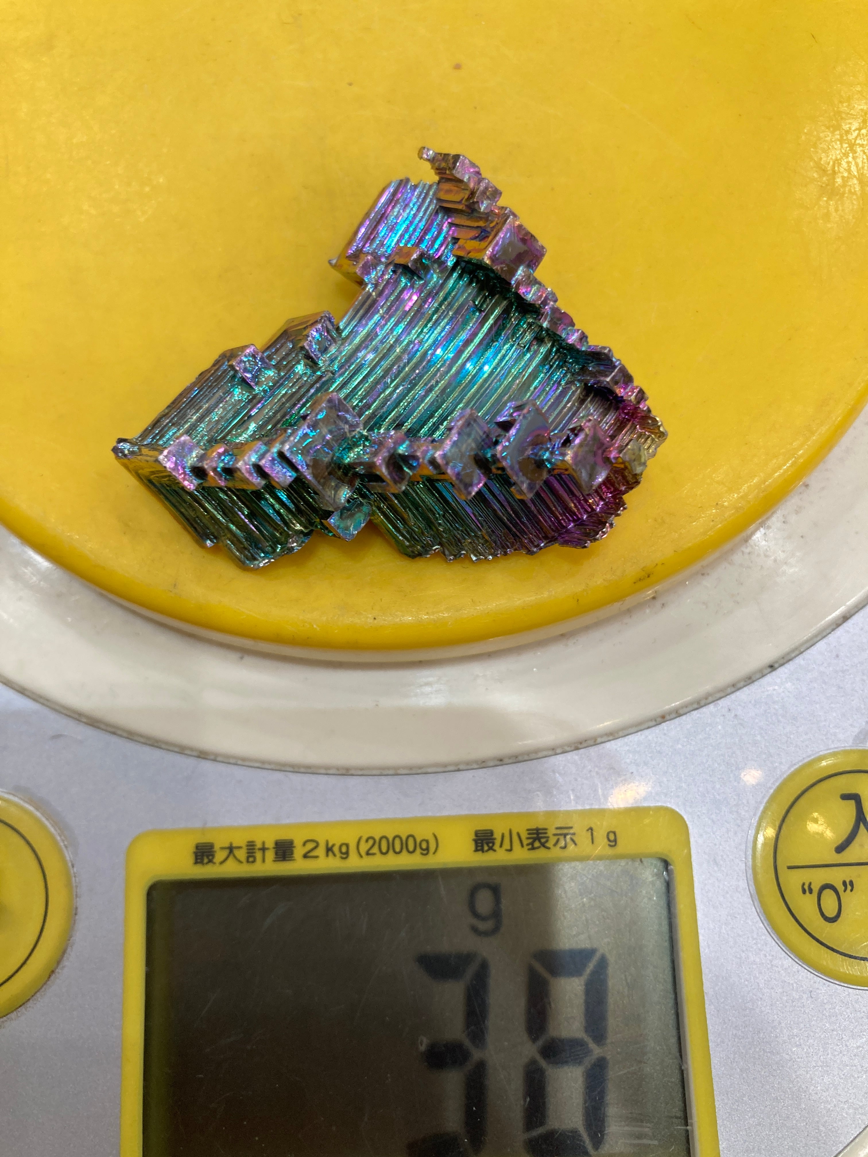 虹色はビスマス本来の色ではなく表面の酸化膜に光が反射する色です。