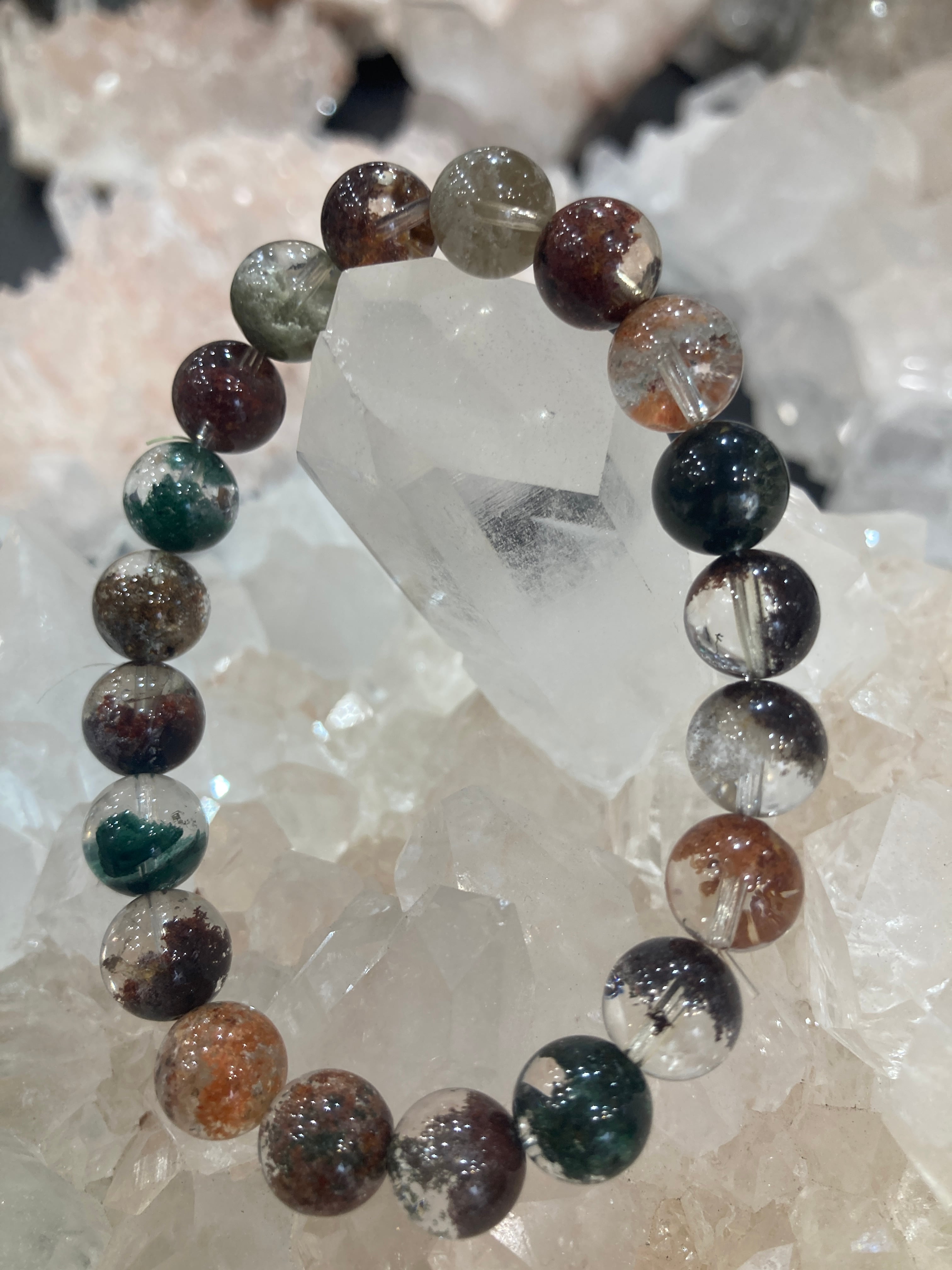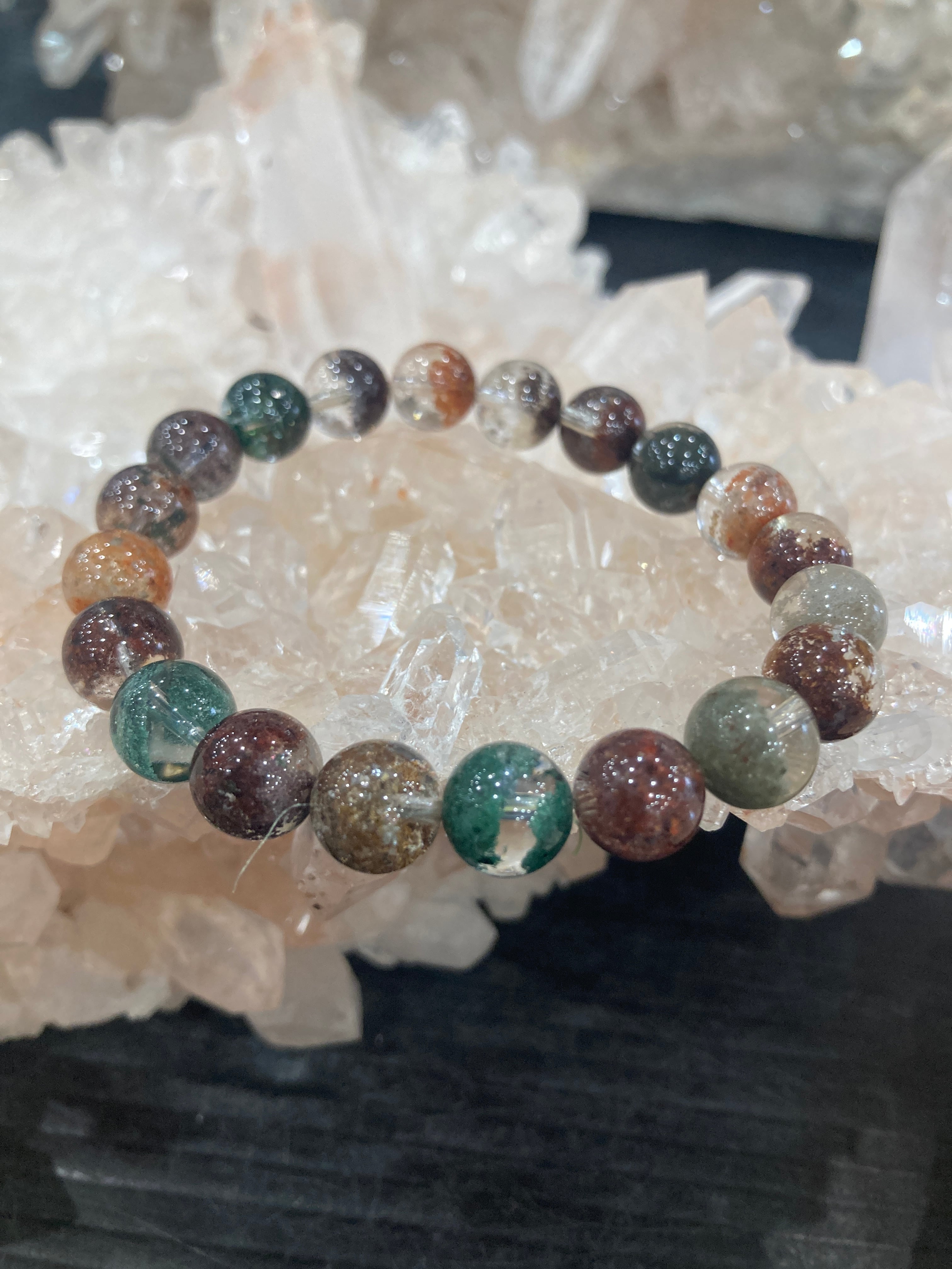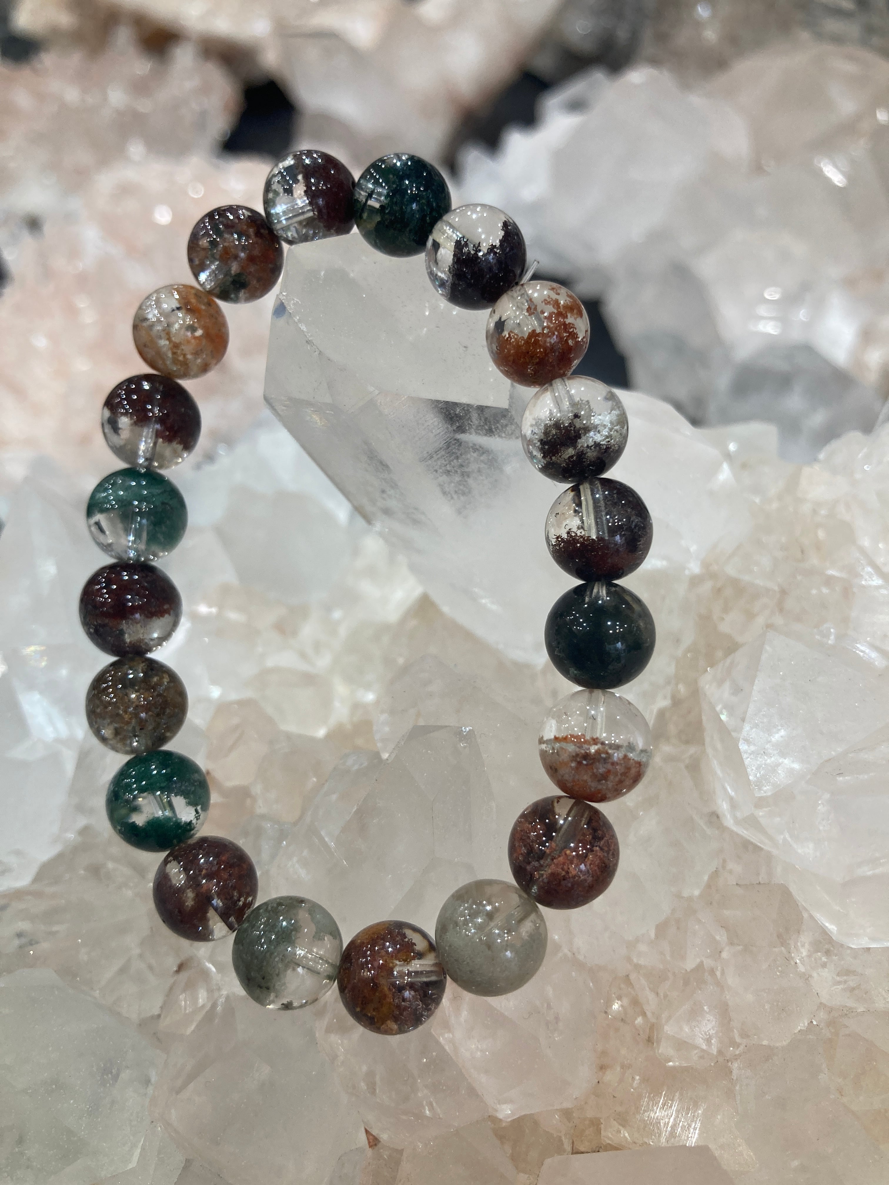【E34309】モネガーデン水晶5A 9 ㎜ 緑泥石 ブレスレット*bracelet