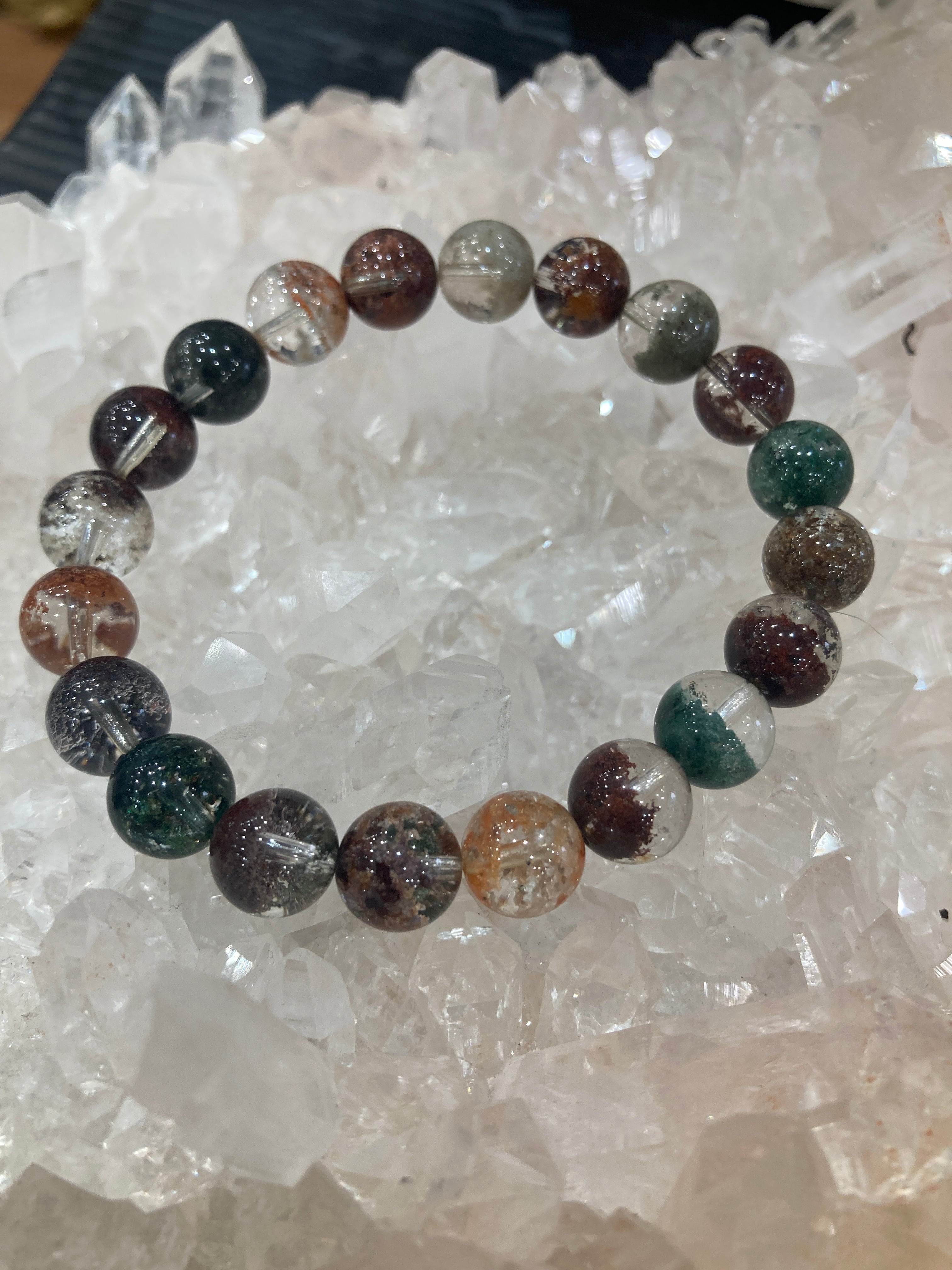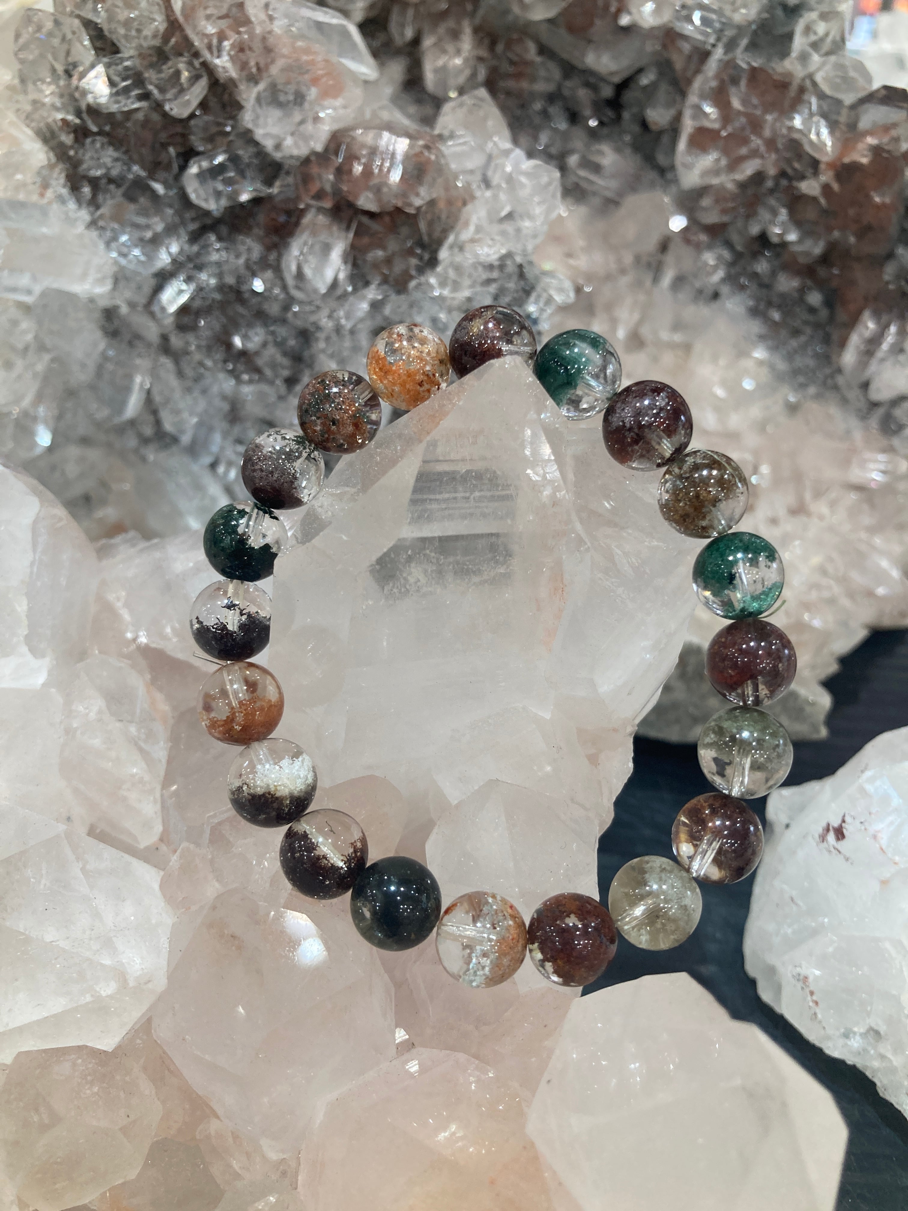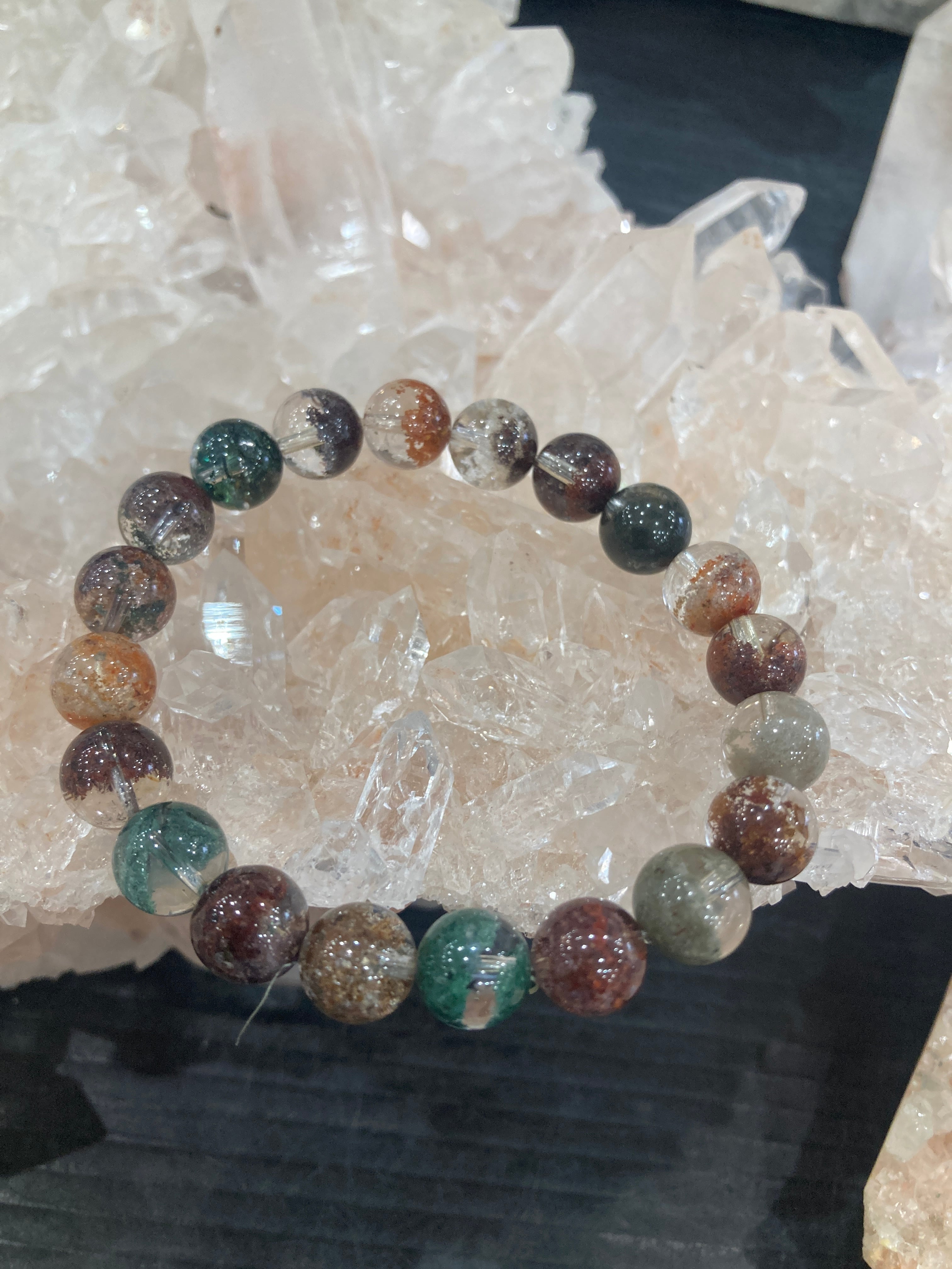 【E34309】モネガーデン水晶5A 9 ㎜ 緑泥石 ブレスレット*bracelet
