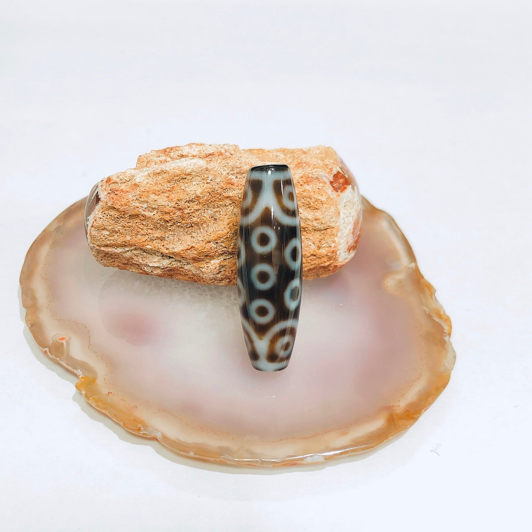 ※丸い傷のようなものは、「馬蹄痕」と呼ばれ、この痕がある天珠は縁起が良いとされ、重宝されています。