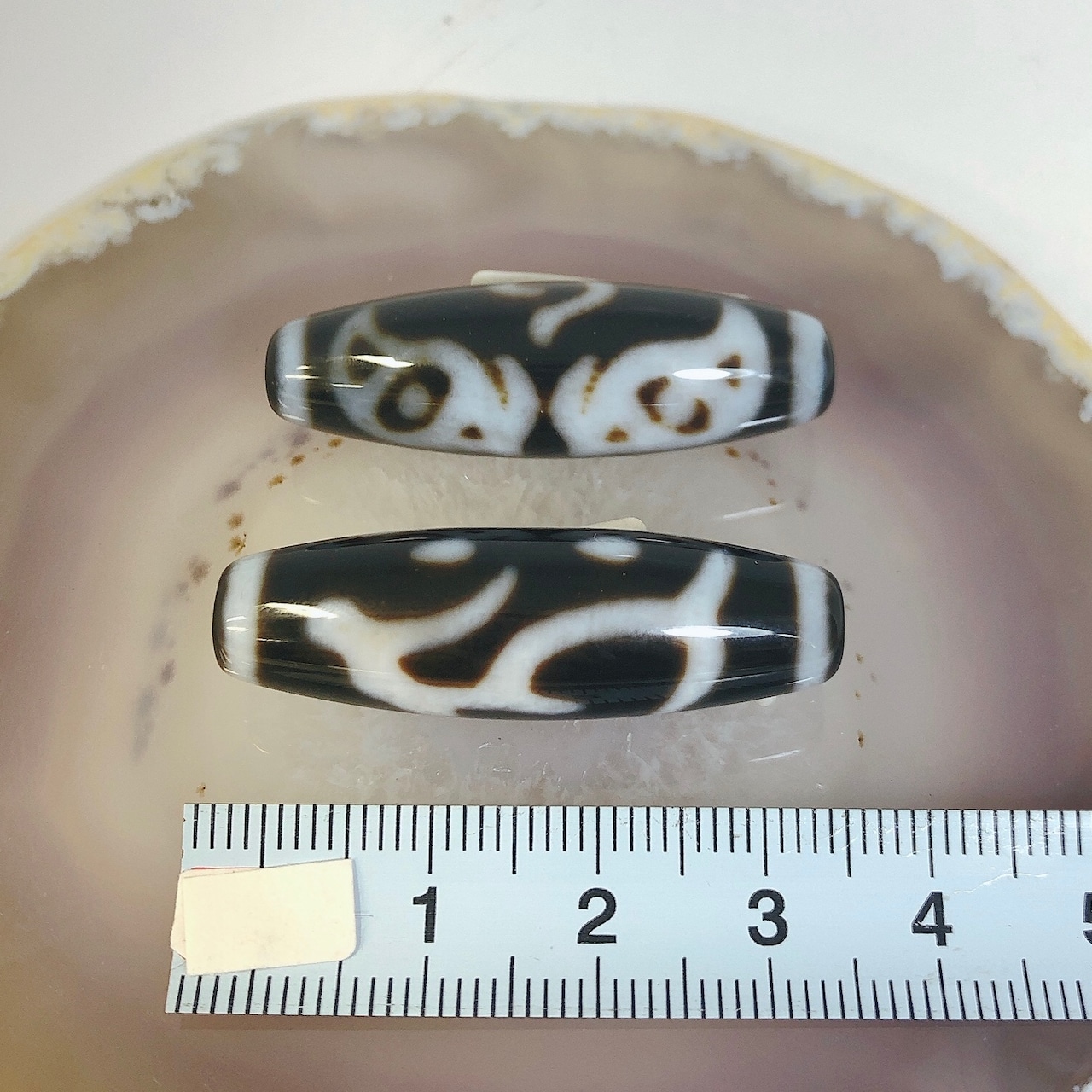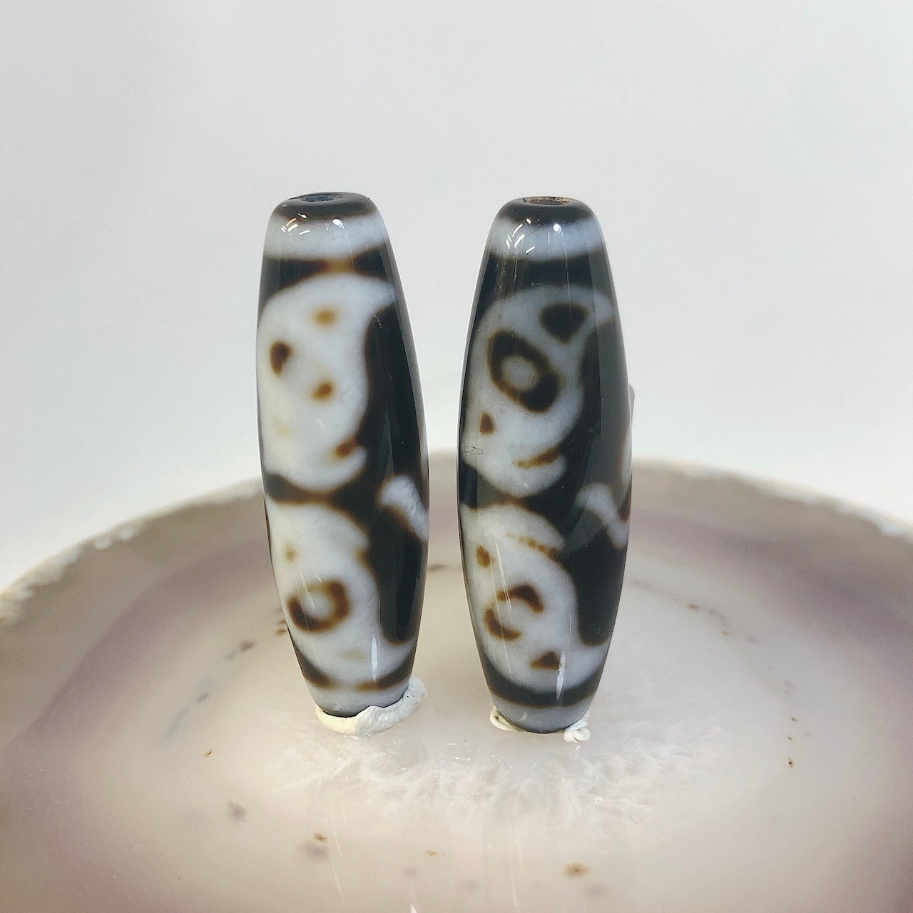瑪瑙などを円筒に加工し、染料を浸透させて目の模様に焼き付けたもの。