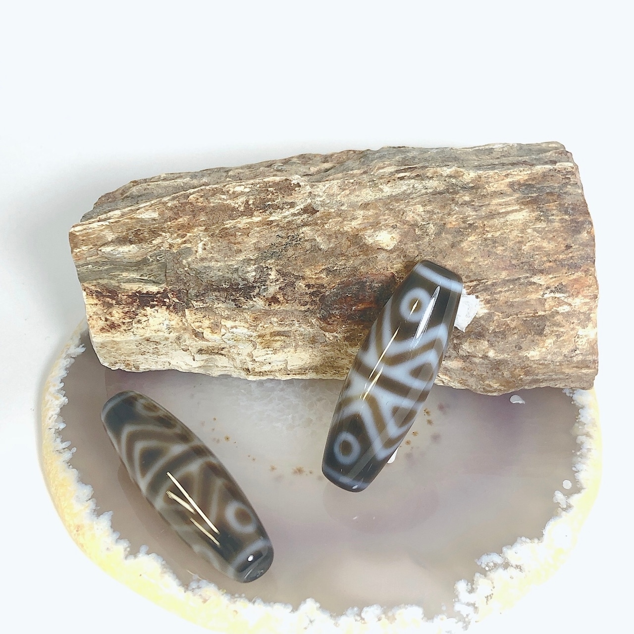 ※丸い傷のようなものは、「馬蹄痕」と呼ばれ、この痕がある天珠は縁起が良いとされ、重宝されています。