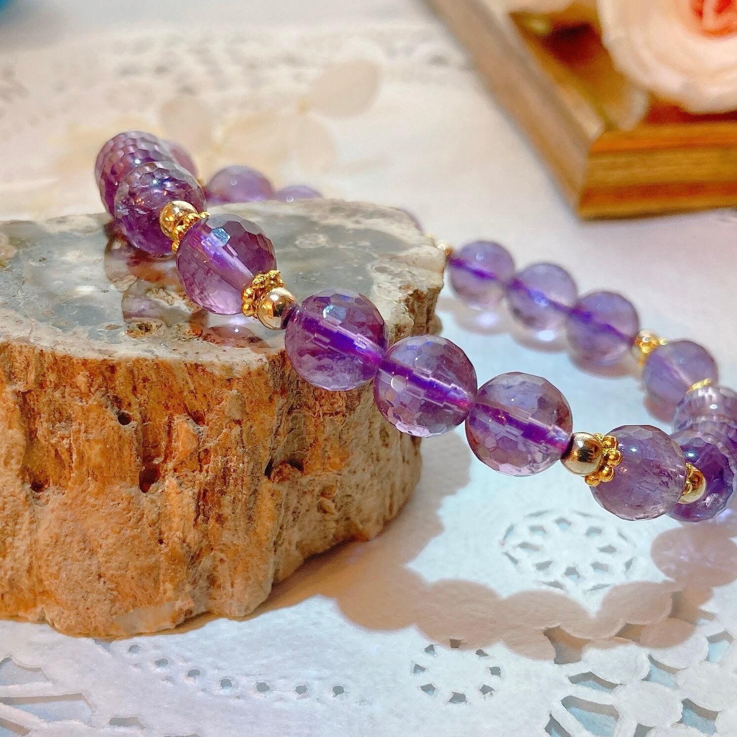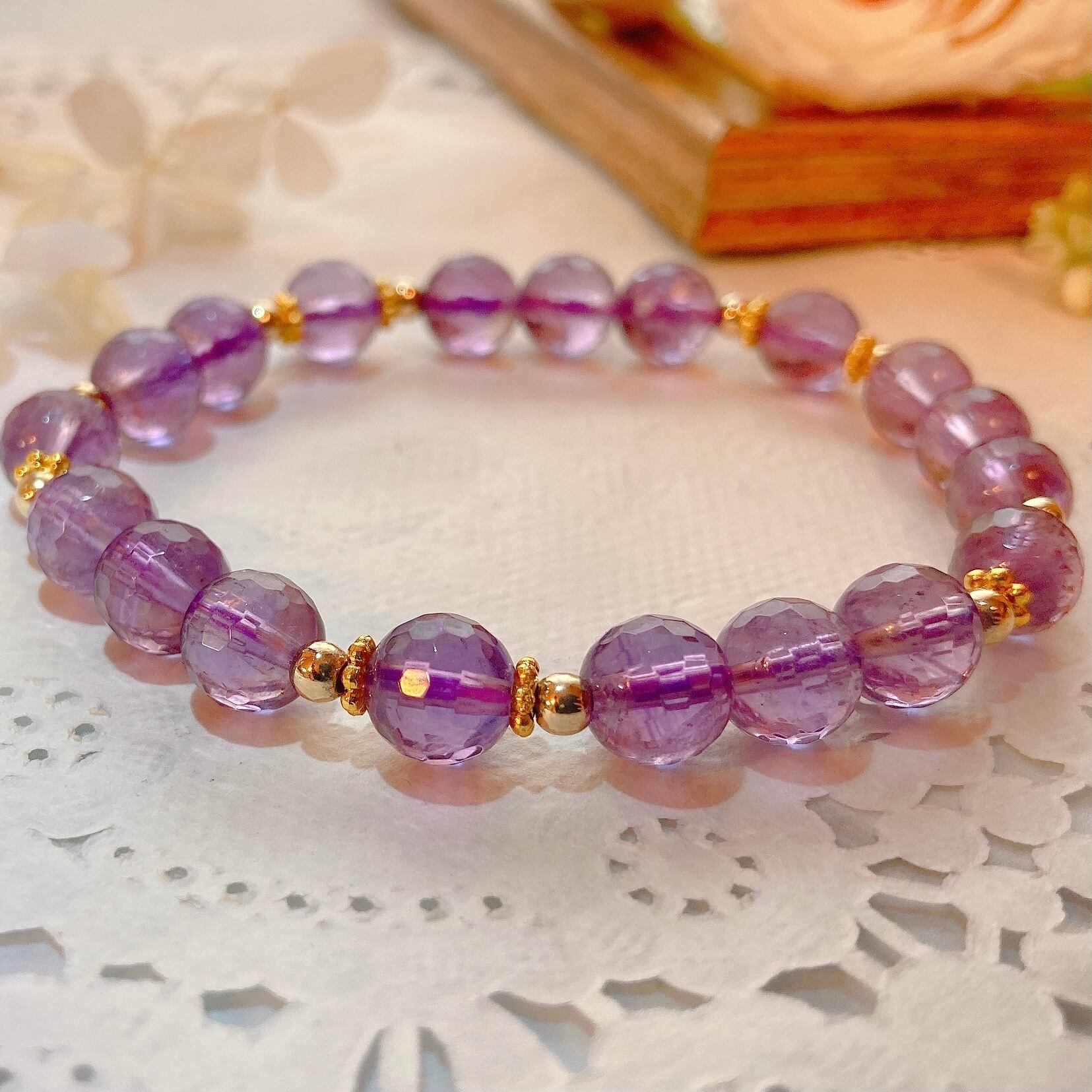 【E816】アメシスト*カット*8㎜*ブレスレット*amethyst*bracelet*天然石*天然石アクセサリー*パワーストーン*デザインブレスレット*