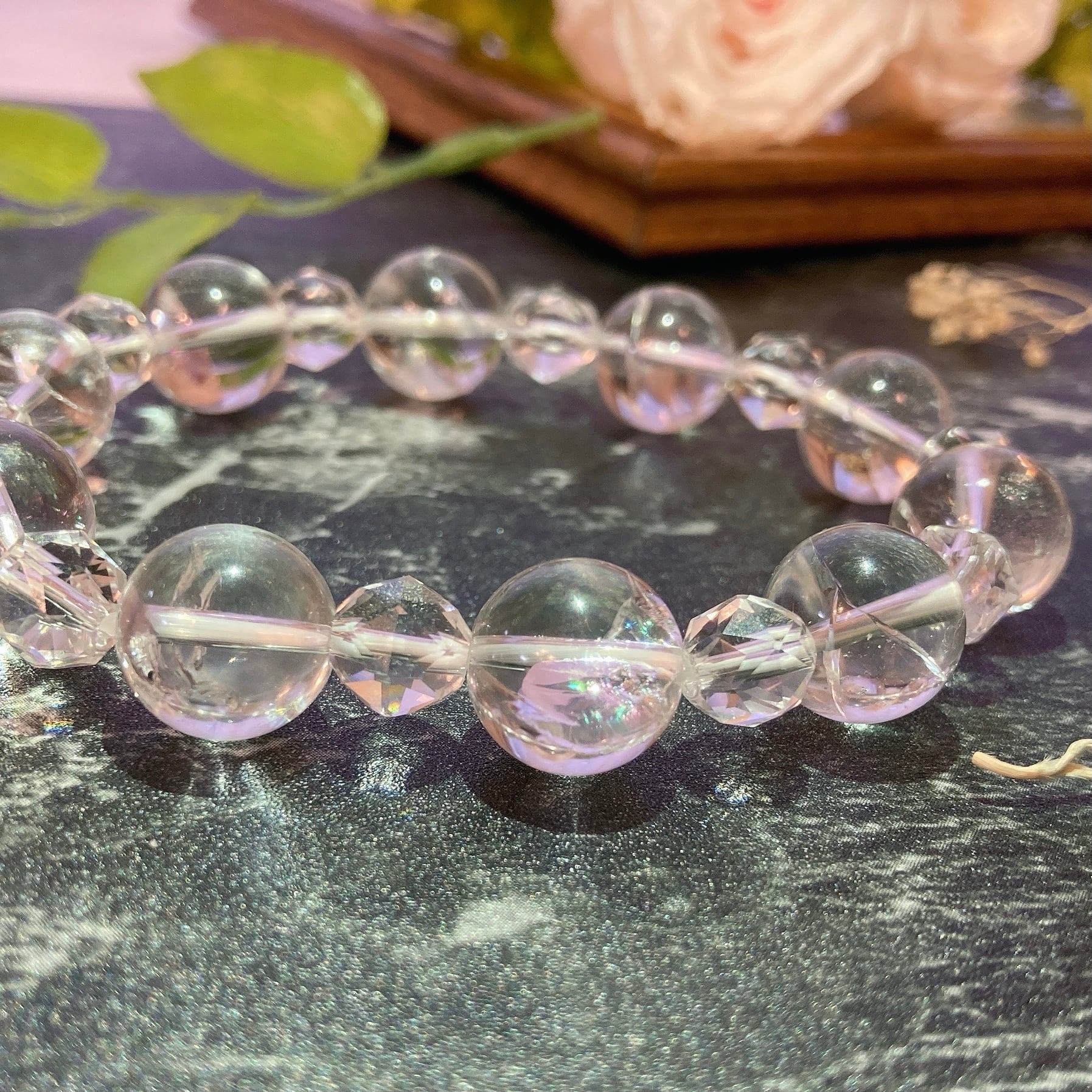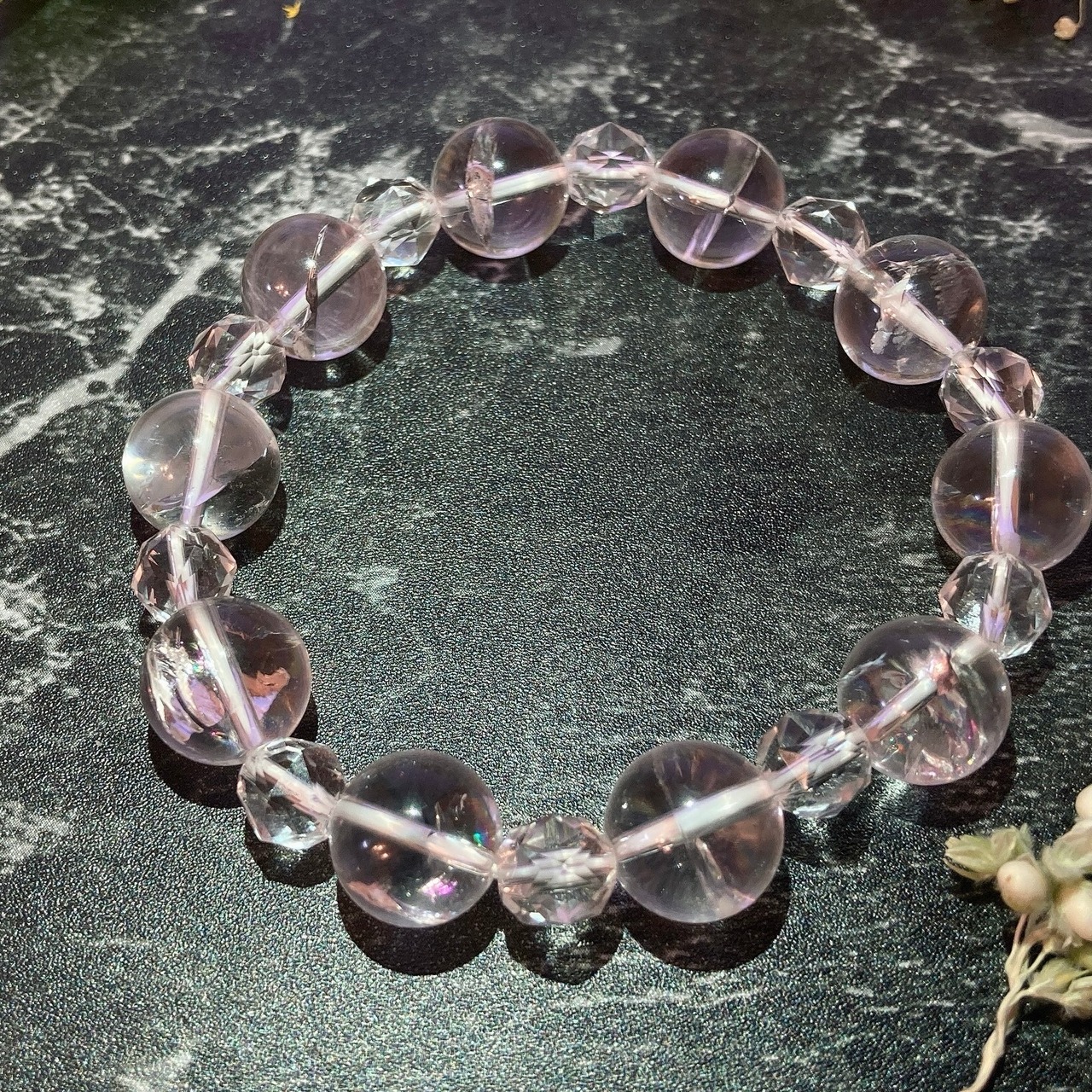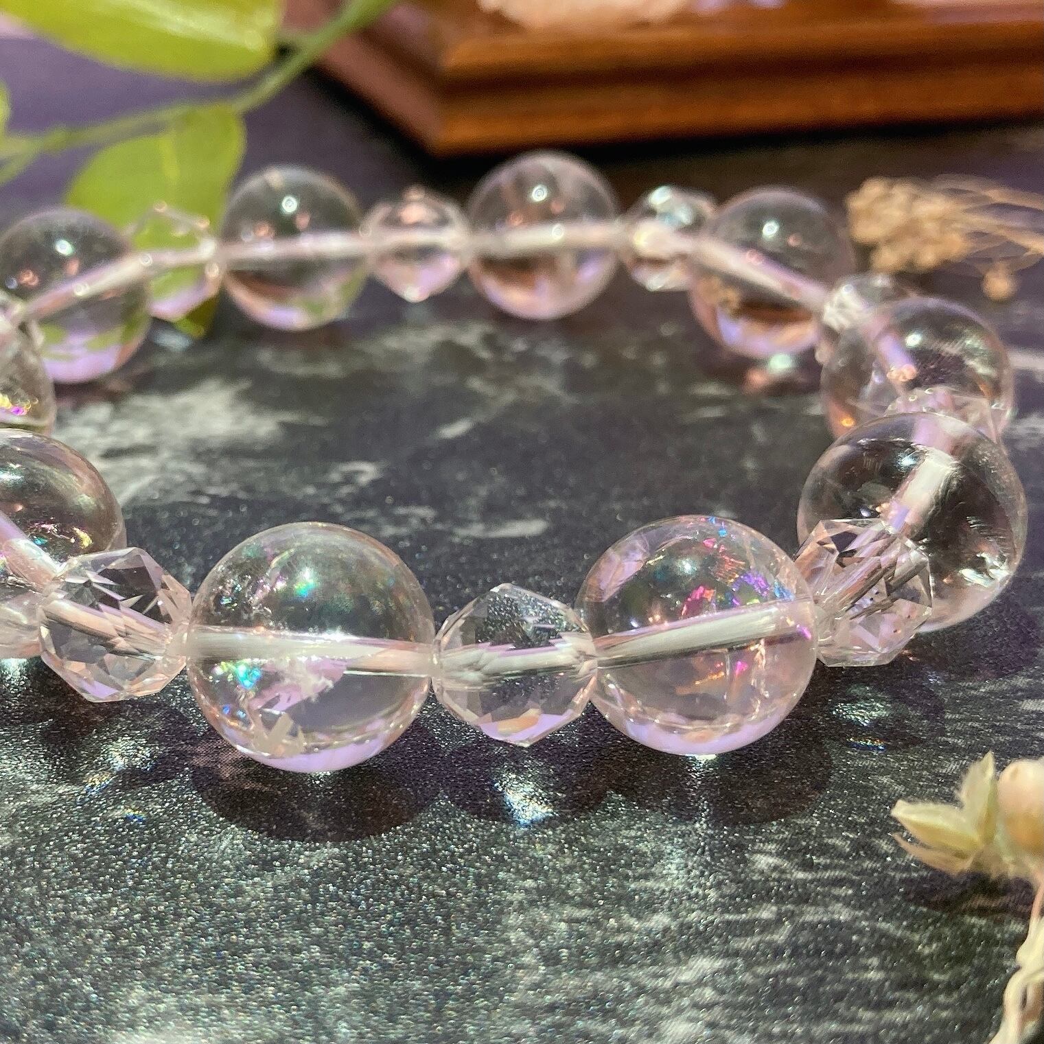 【E881】虹入り!アイリスクォーツ*12㎜*スターカット水晶*ブレスレット*IrisQuartz*Quartz*Crystal*rainbow*bracelet*天然石*天然石アクセサリー*パワーストーン*デザインブレスレット*