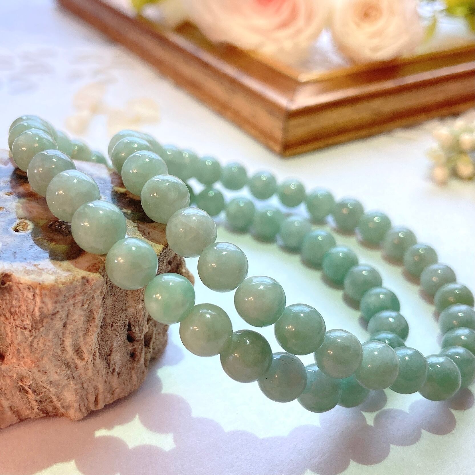 色が濃いめ、グリーンしっかりの翡翠ブレスレット