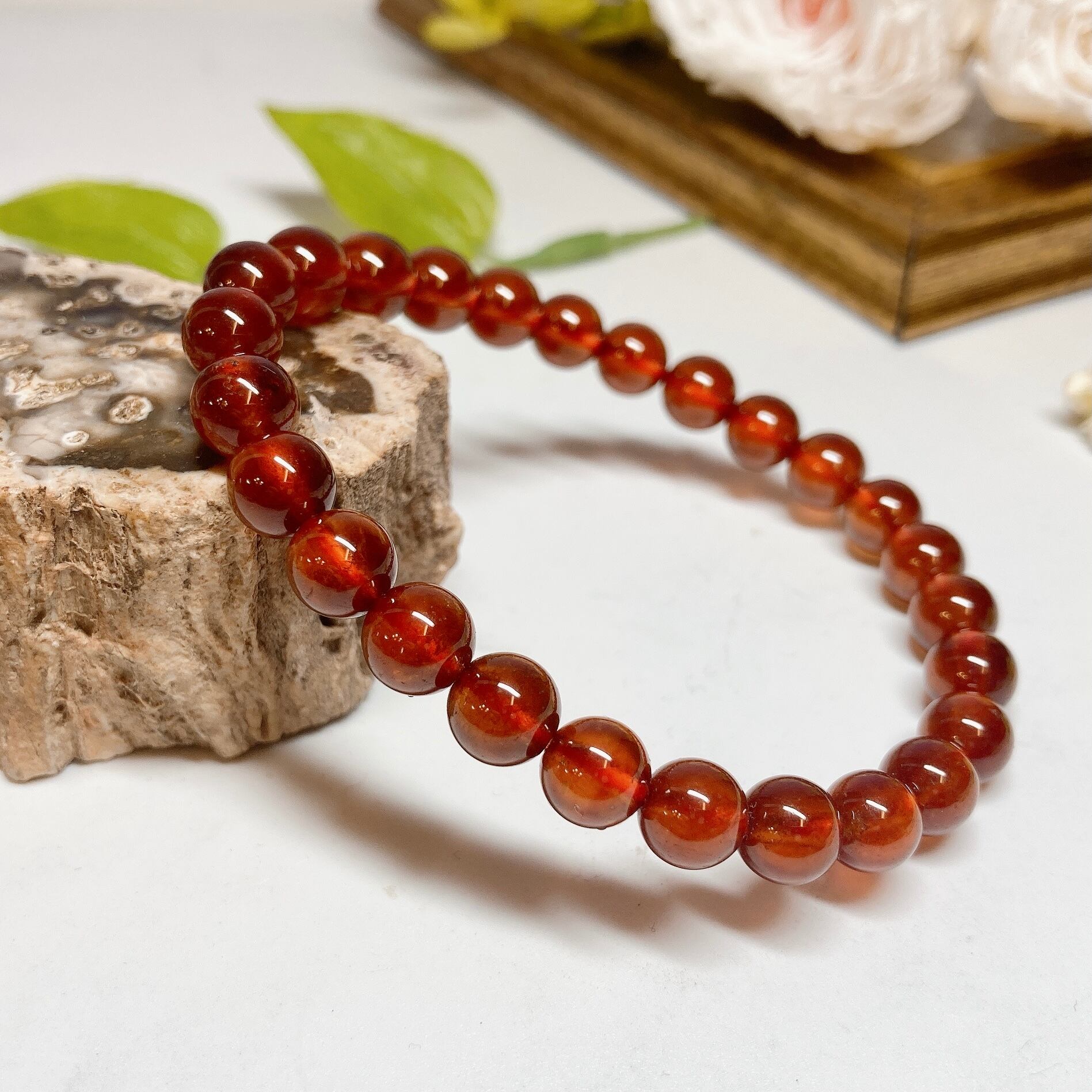 【E3635】オレンジガーネット*A品質*6-7㎜*ブレスレット*Garnet*bracelet*天然石*天然石アクセサリー*パワーストーン*デザインブレスレット*