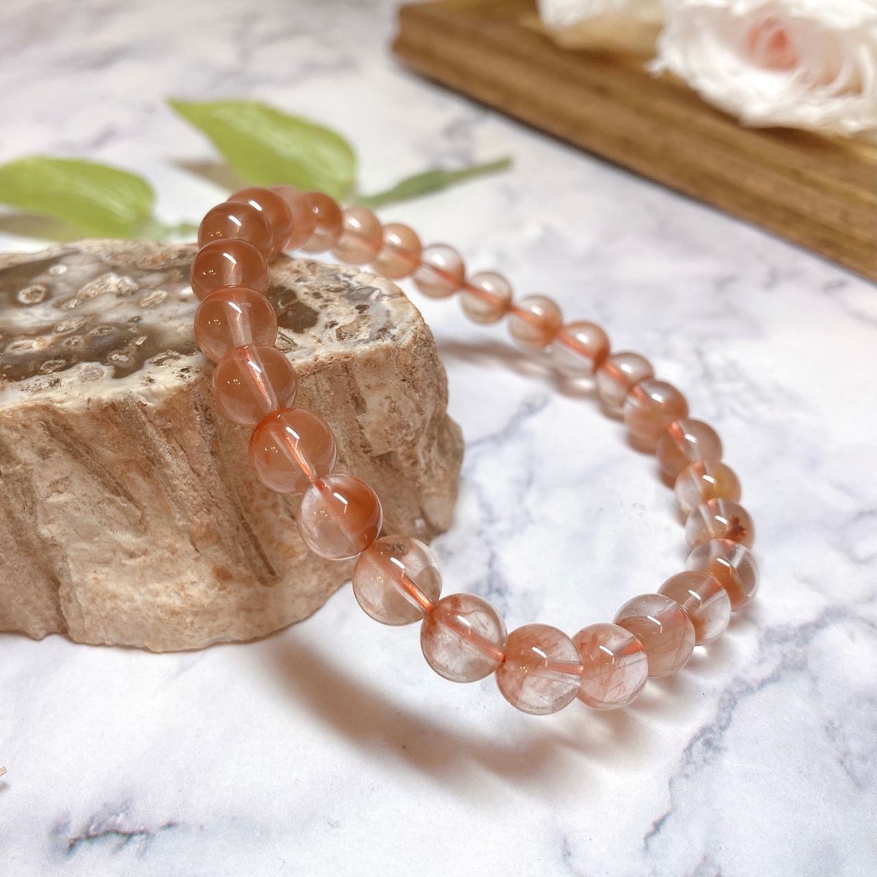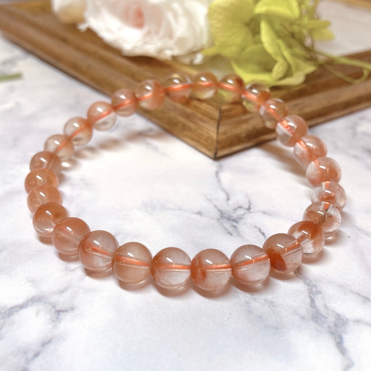 昔はホワイトラビットヘアールチルとして、白色の角閃石入り水晶だけがブレスレットとして出回ってましたが、最近ではこのようにイエローやオレンジなどのカラーバリエーションも豊富になってきました。