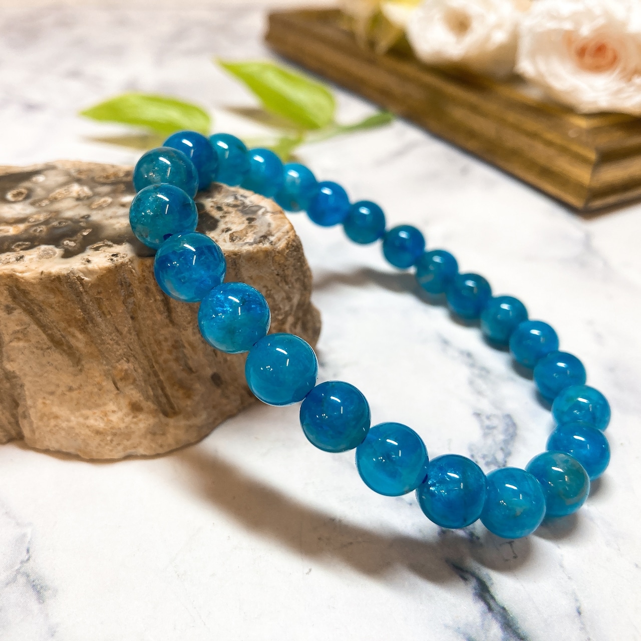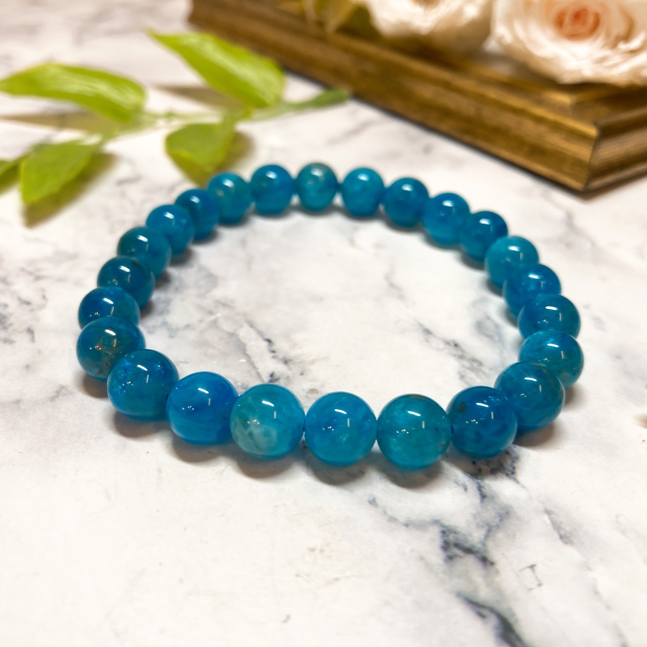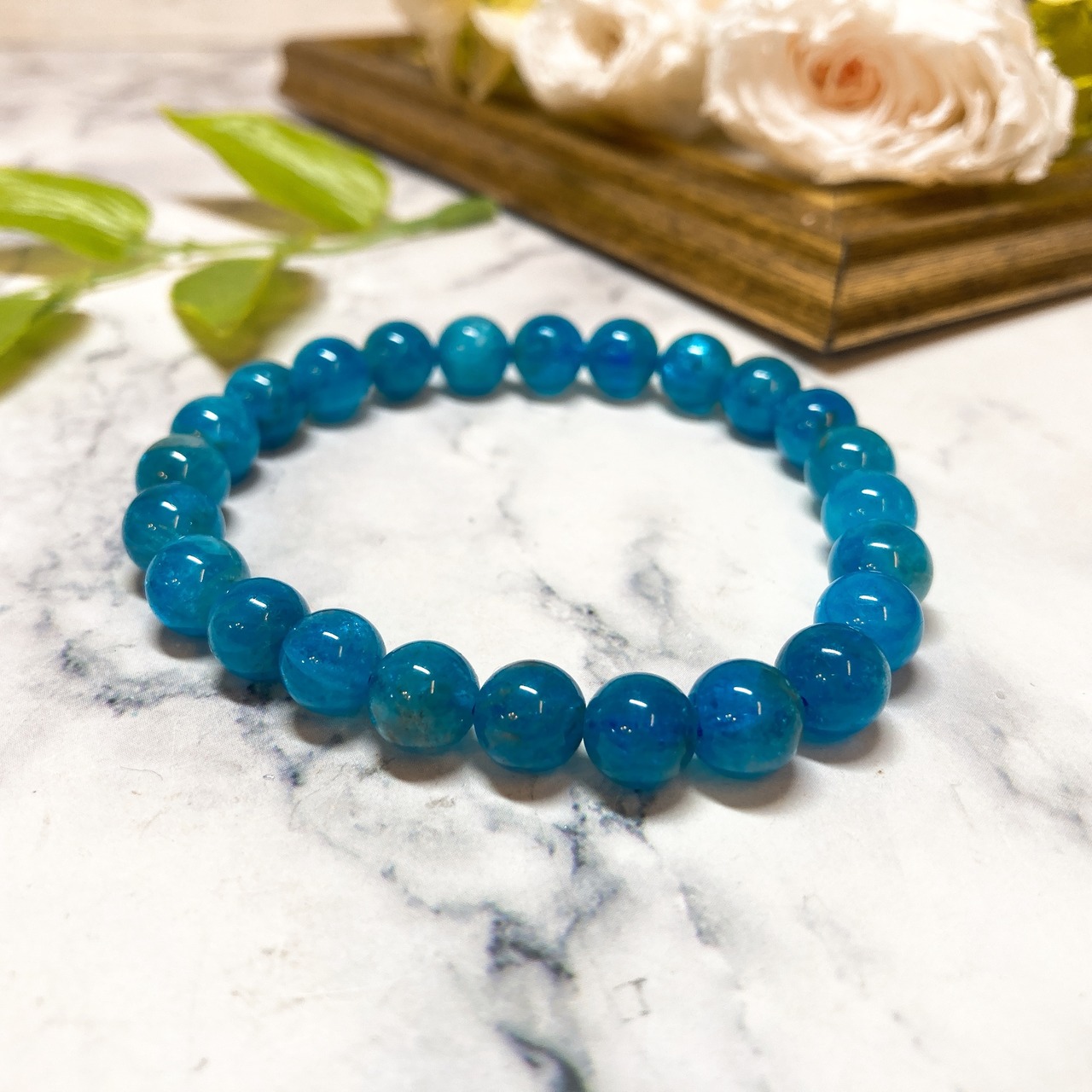【E4448】アパタイト*8㎜*ブルー*ブレスレット*リフレッシュ*Apatite*bracelet
