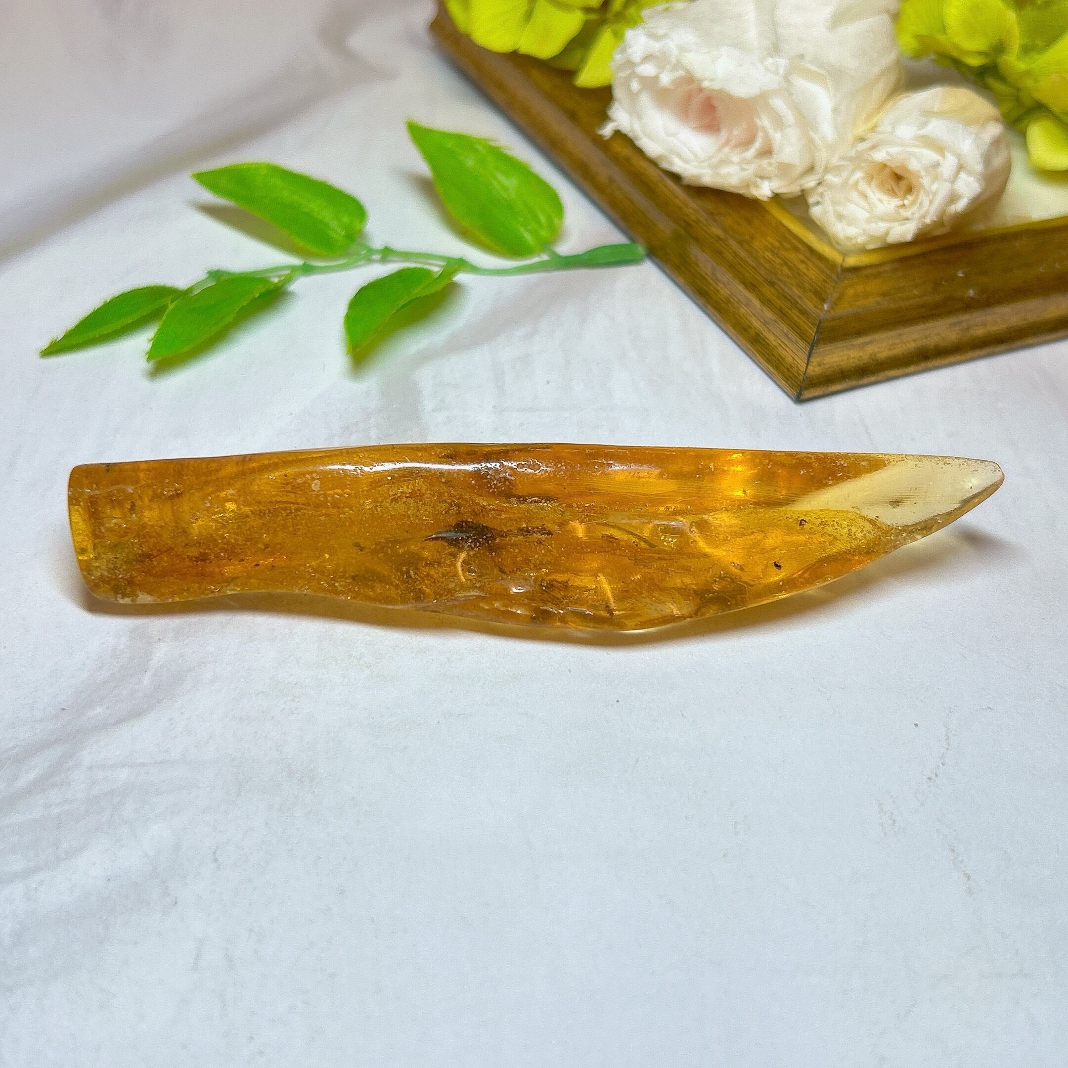 磨くと透明感、艶が出て中の虫がよく観察できます。