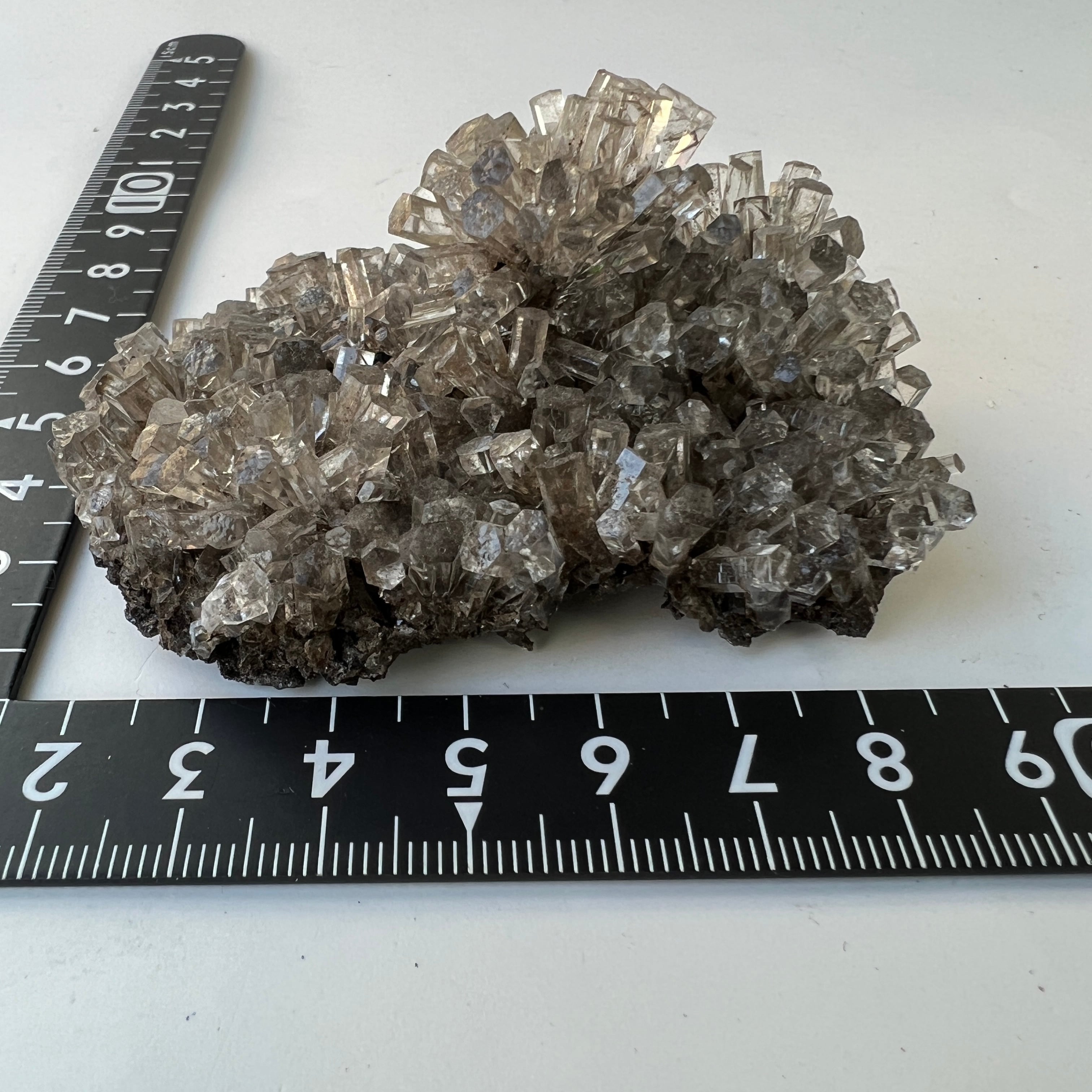 母岩が薄く、 無色透明の光沢がある美結晶が密集している良品です。