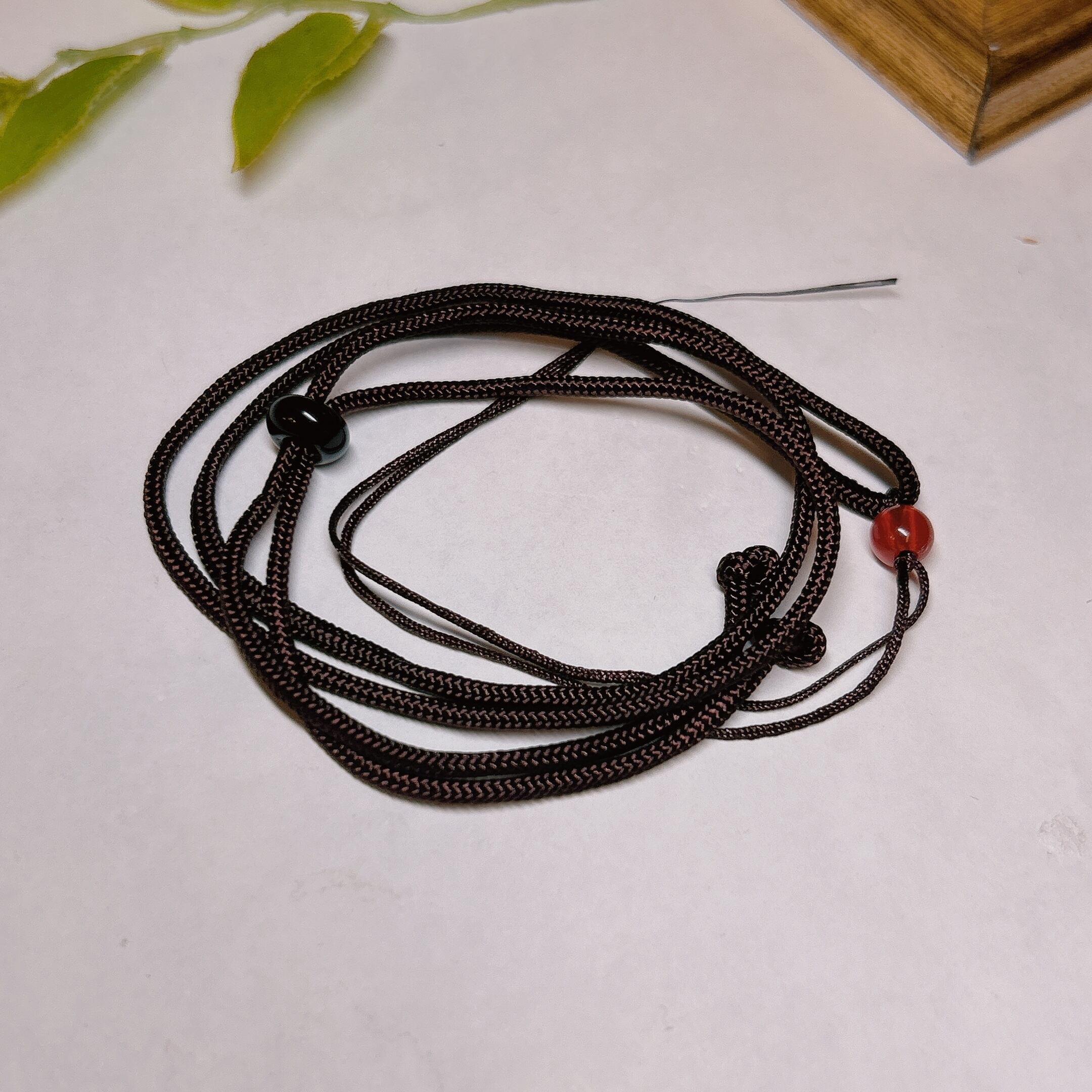 ネックレス用の紐付き。こちらは結ばれていない状態です。弊社ではこちらを結ぶ加工は行っておりません。