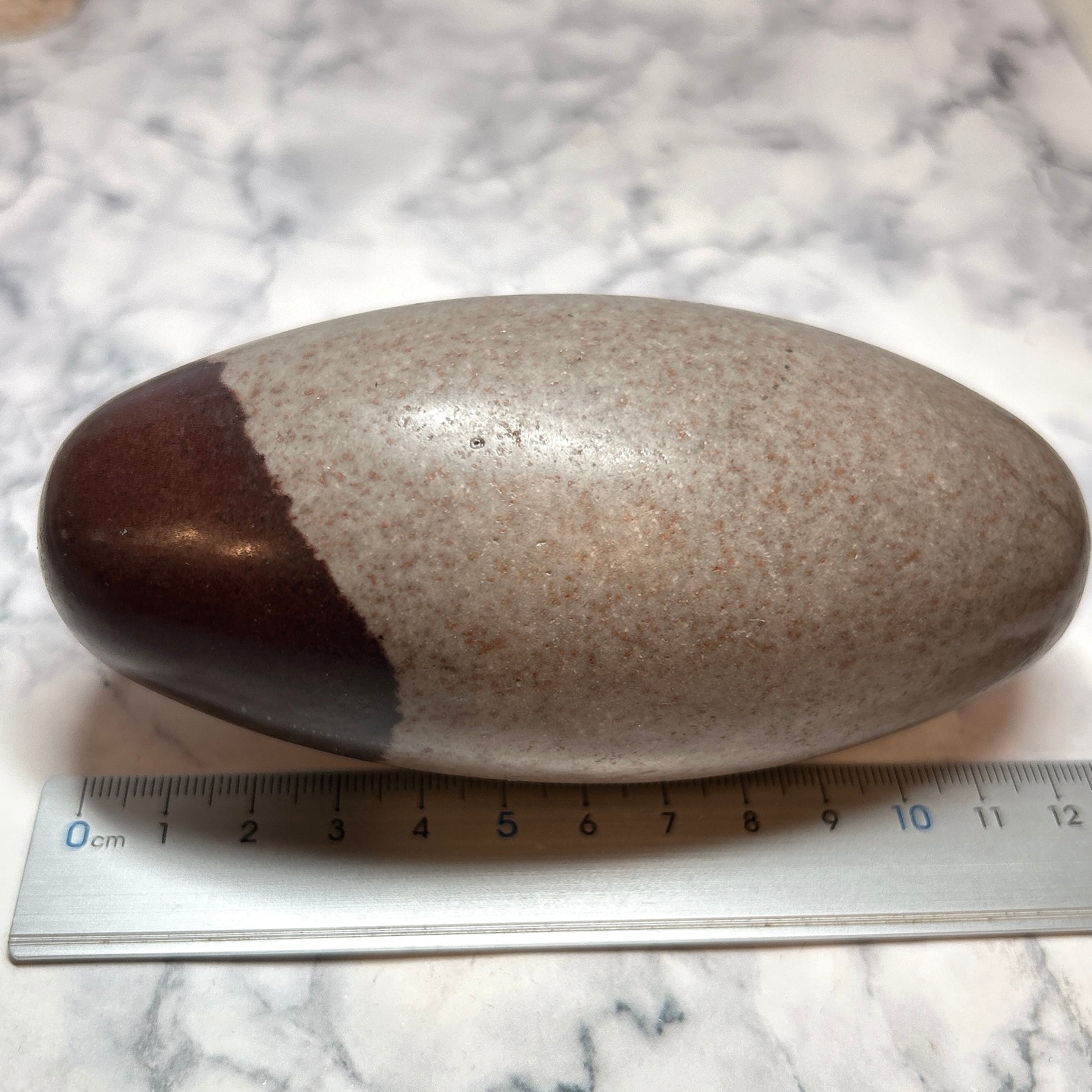インドの七大聖地の一つのナルマダ川で採集されているもので、この川の両岸にあるヒンズー教寺院に生殖(子孫繁栄)の象徴として納められています。