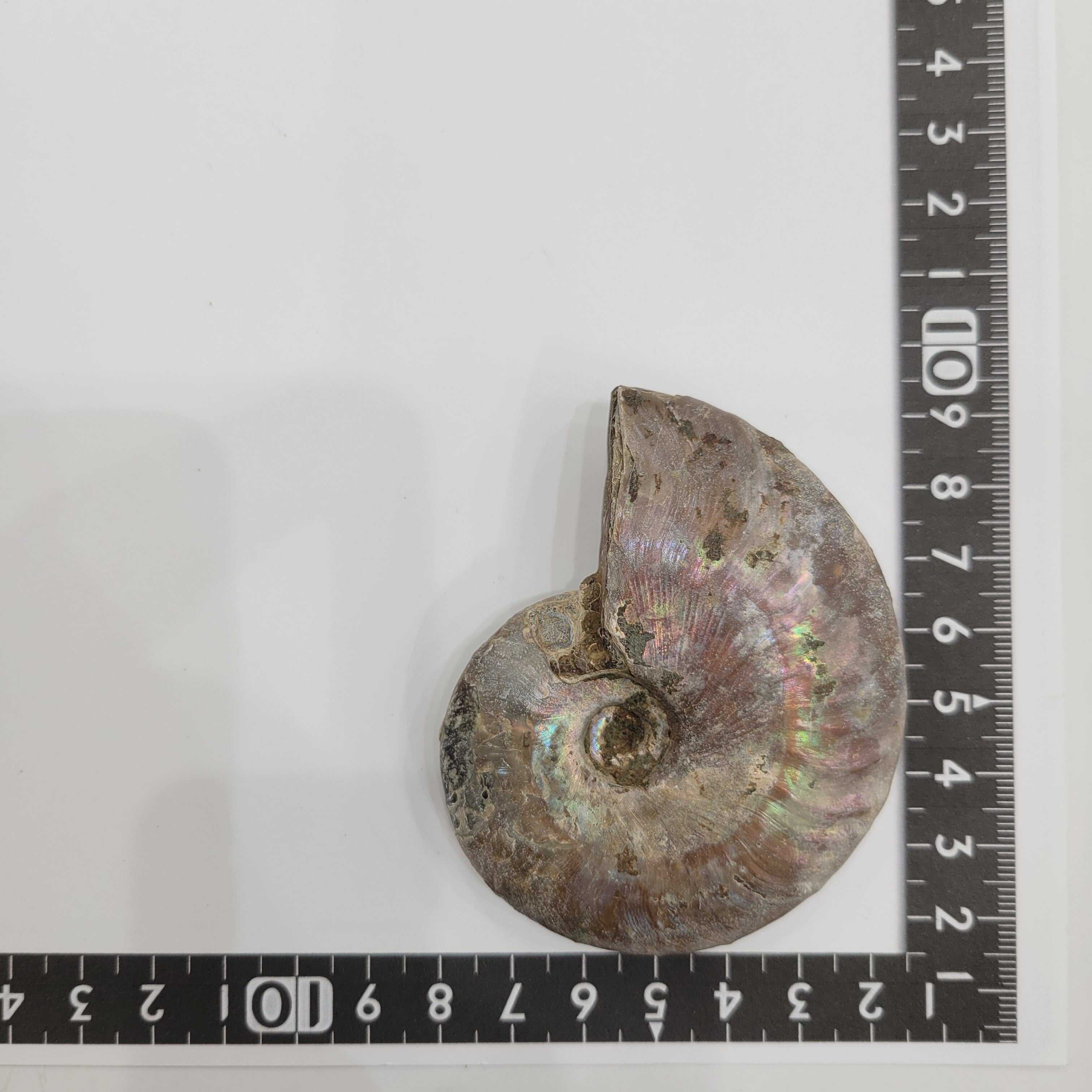 表面の真珠層が光輝く美しいアンモナイト。