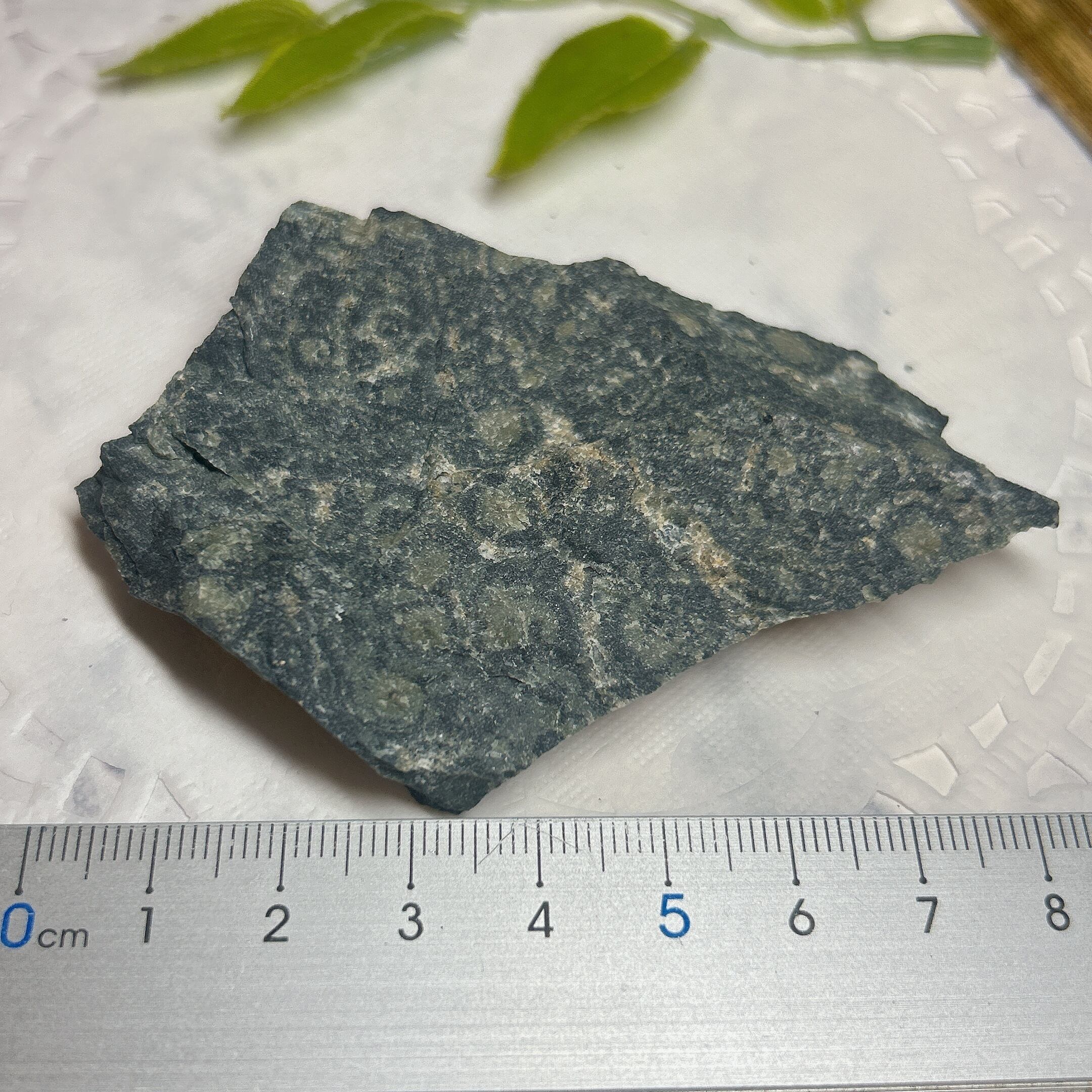 球状の模様は角閃石の針状結晶の集合。