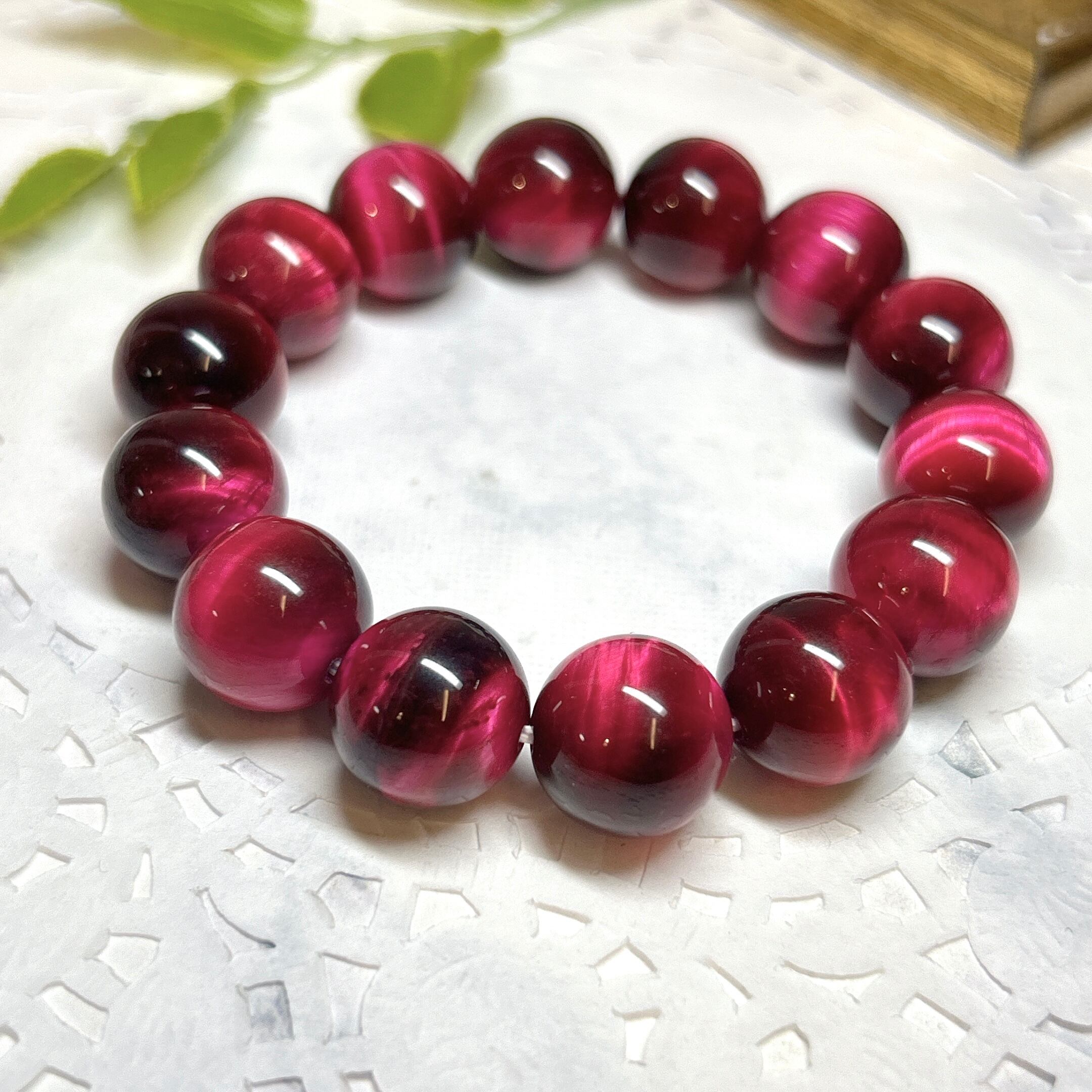 鮮やかなピンクが華やかなピンクタイガーアイブレスレット(着色)